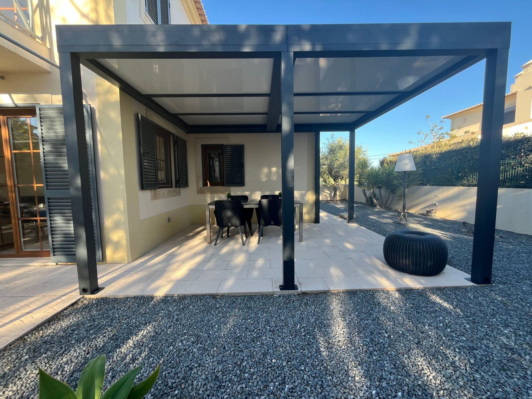 Outside, the magnificent terrace with a new garden, stylish garden furniture, sun loungers, a dining area and an 8m x 4m private pool invite you to relax. An outdoor shower and a 2.8m-long relaxation island offer additional comfort. The highlight from April 2024: a new patio cover that offers perfect sun protection and invites you to relax. A covered carport completes the comfort.