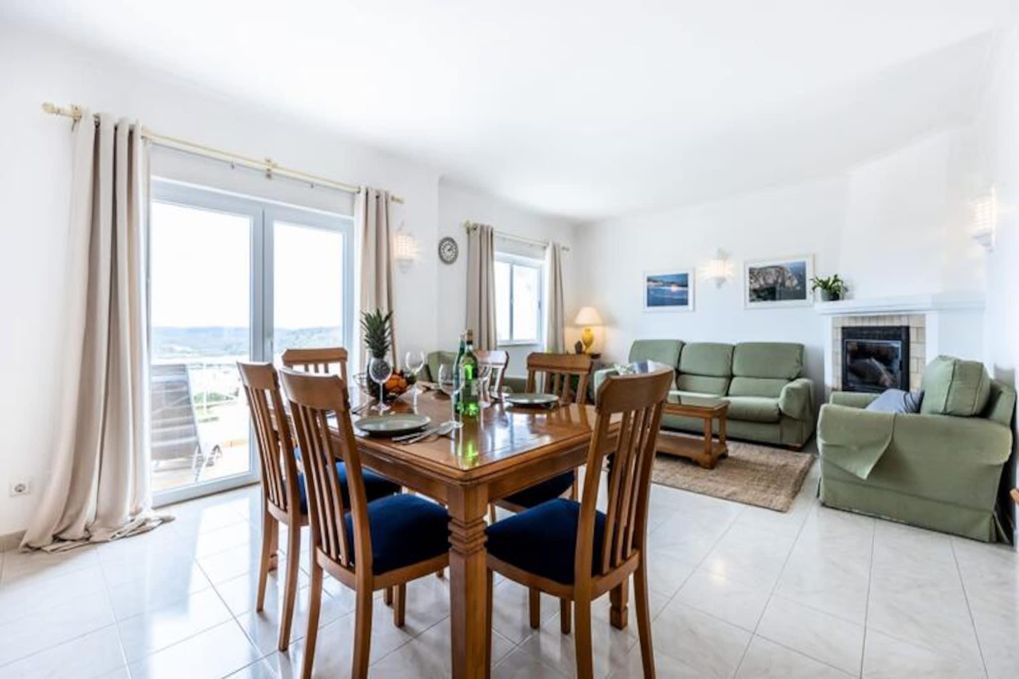 Denne to-etagers feriebolig i Budens ligger på en malerisk bakke med en fantastisk udsigt over Costa Vicentina Naturpark og Atlanterhavet og tilbyder en fredfyldt oase for naturelskere, golfspillere og strandentusiaster. Kun 5 minutters gang fra landsbyens centrum finder du charmerende caféer, restauranter og et praktisk supermarked, alt inden for rækkevidde af dette idylliske fristed. Den øverste etage af huset byder dig velkommen med en rummelig stue, hvor franske døre åbner ud til en altan, der er perfekt til at spise udendørs, mens du nyder den betagende udsigt mod sydøst. Det moderne køkken er fuldt udstyret med alt, hvad du har brug for, herunder køleskab med fryser, elektrisk ovn, komfur, opvaskemaskine og vaskemaskine. Et gæstetoilet og et opbevaringsskab er bekvemt placeret nær indgangen. På underetagen tilbyder to hyggelige soveværelser afslappende indkvartering. Master-suiten har to enkeltsenge, der kan sættes sammen, eget badeværelse, indbyggede garderobeskabe og direkte adgang til en privat terrasse. Det andet soveværelse har også udgang til terrassen og rummelig opbevaringsplads. Terrassen, der er omgivet af frodig grønne planter, tilbyder et roligt område med et stenbord og bænke, omgivet af blomstrende træer. Boligens anlagte haver fører til en fælles swimmingpool, der er opvarmet det meste af året, og snoede stier, der forstærker stedets charme. For golfentusiaster ligger Santo António golfbane kun få minutter væk, mens de uberørte strande i Salema og Boca do Rio ligger mindre end 5 minutters kørsel derfra. Costa Vicentina Naturpark tilbyder uendelige muligheder for udendørs eventyr, fra vandreture og mountainbiking til ridning. I nærheden ligger de maleriske landsbyer Burgau og Praia da Luz kun 10 minutters kørsel derfra, og den livlige by Lagos ligger kun 15 minutter væk. Uanset om du søger afslapning eller eventyr, er dette feriehus det perfekte udgangspunkt for at udforske skønheden i Portugals Algarve-region. Med sin fantastiske udsigt, moderne faciliteter og førsteklasses beliggenhed er det et ideelt valg til din næste ferie.