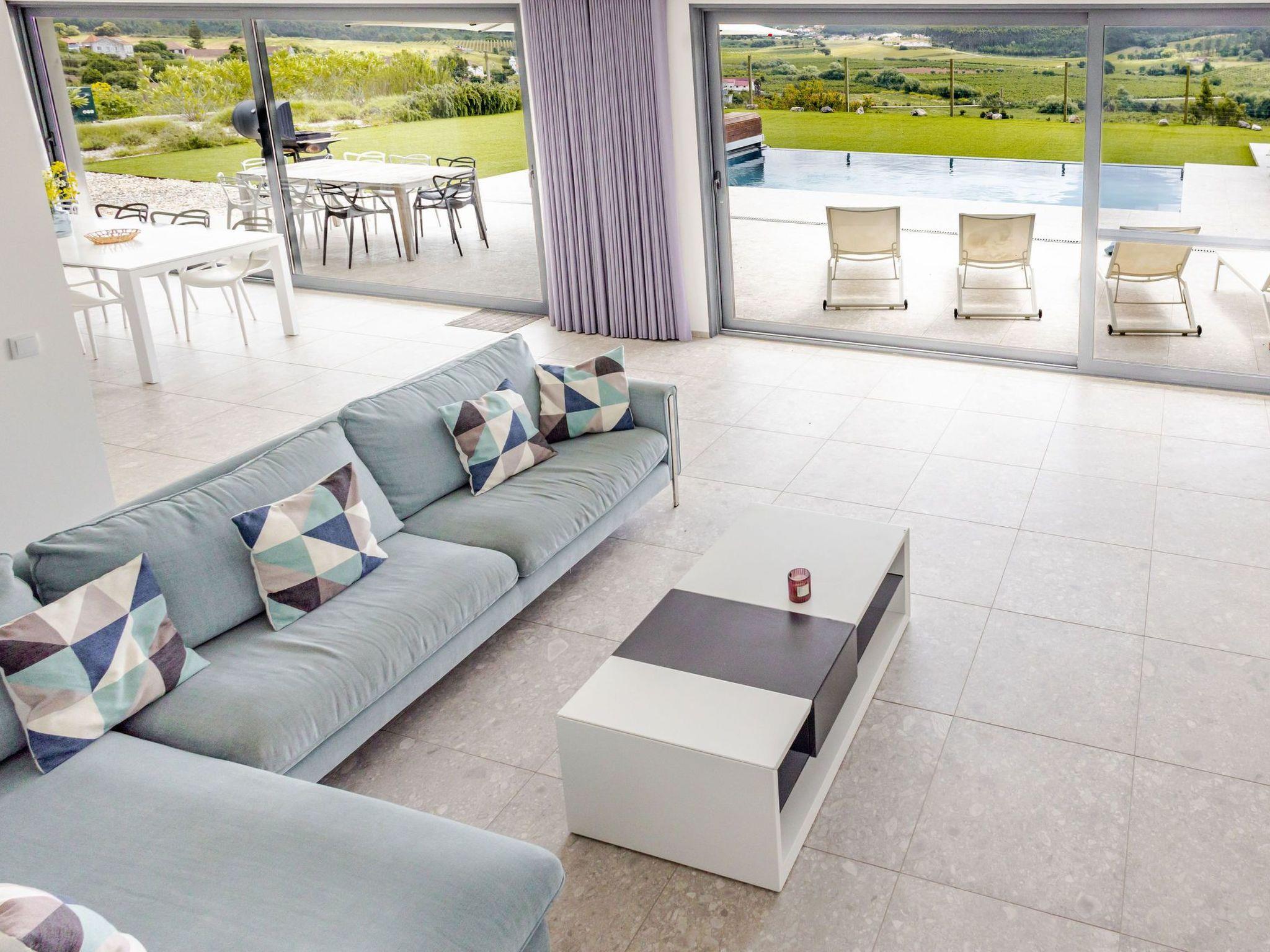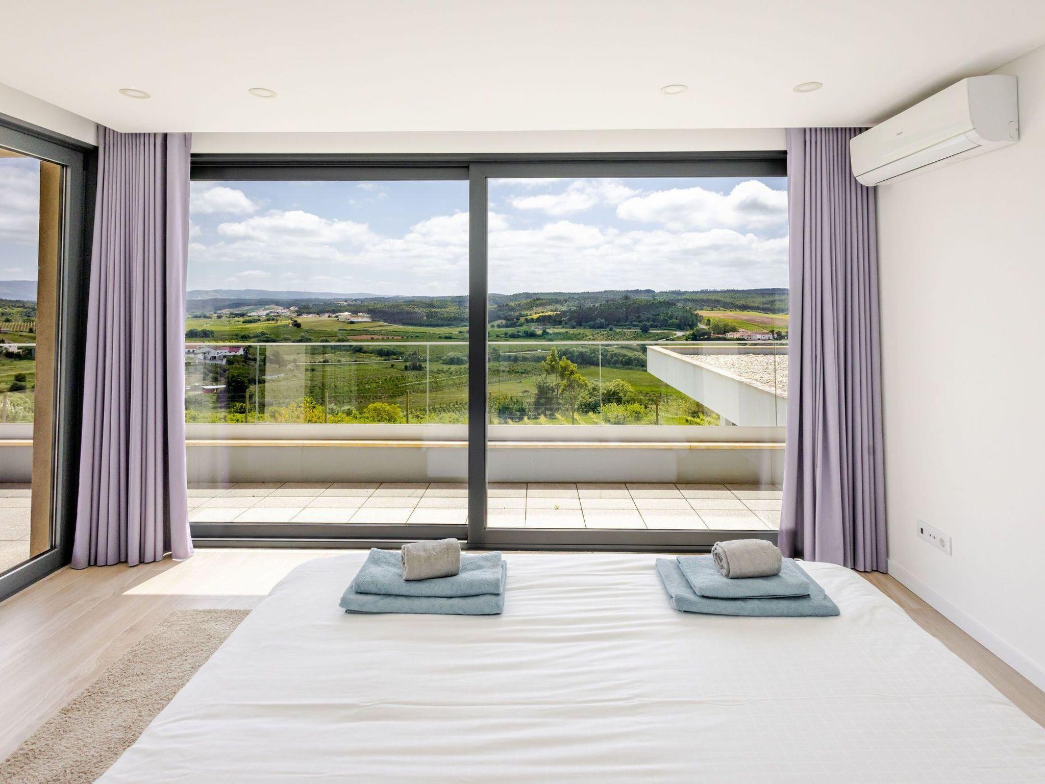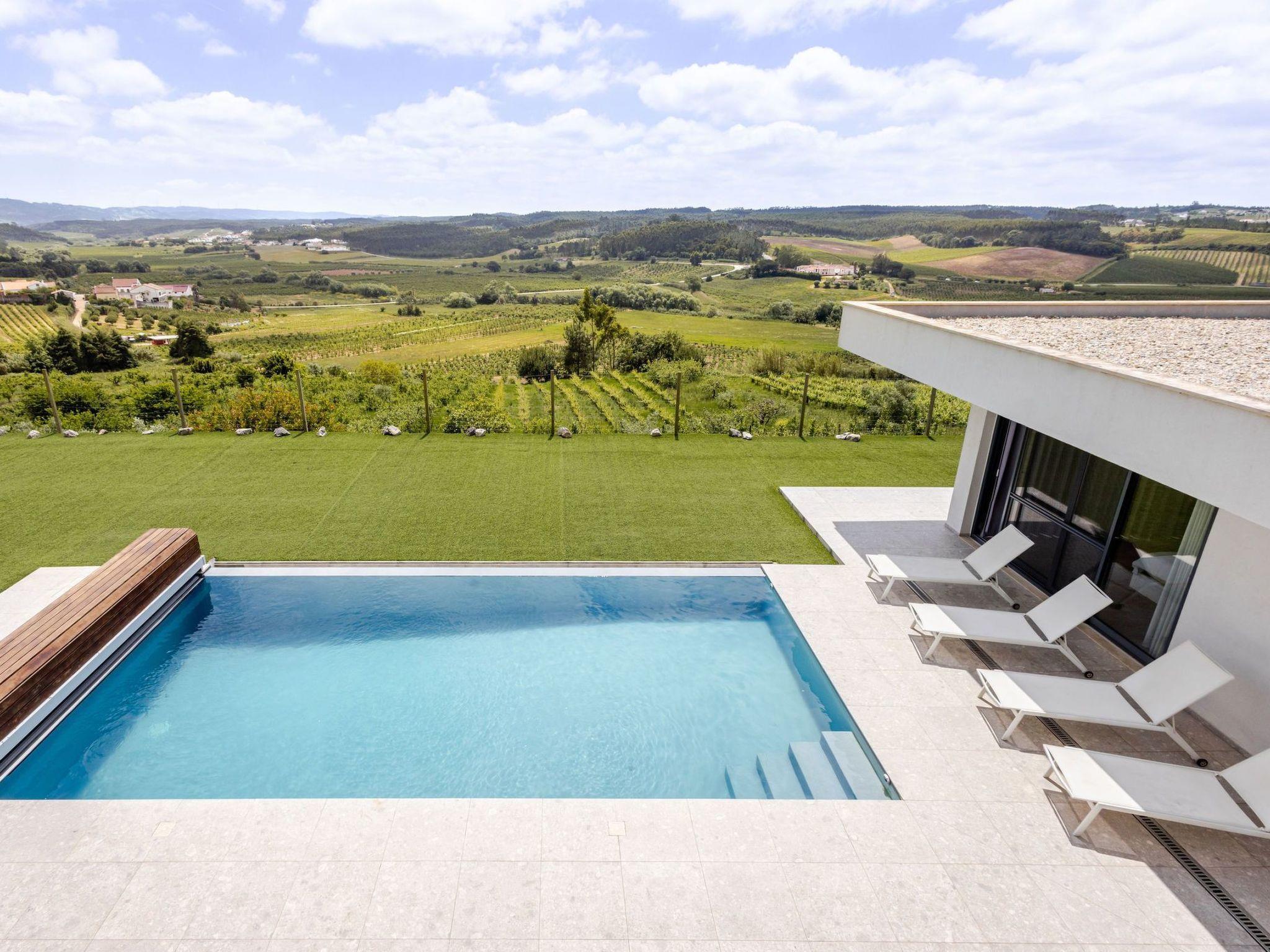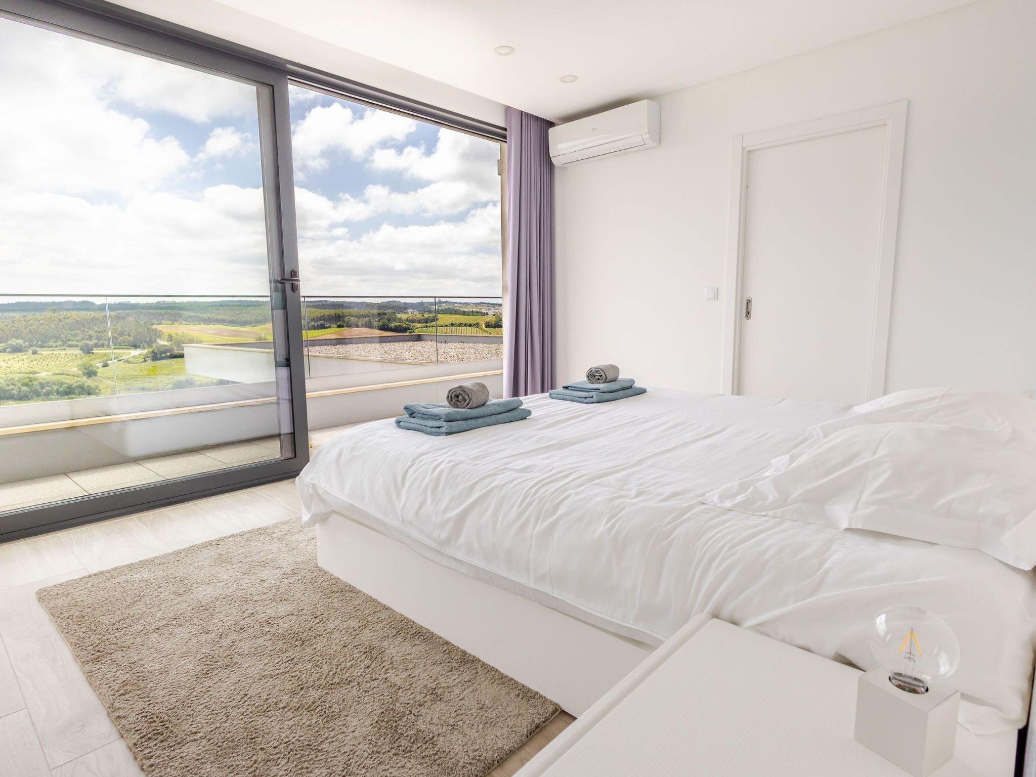 The luxurious villa is in Adão Lobo (Silver Coast), about 50 minutes from Lisbon airport, located on a quiet hill (5 min drive from the centre of Cadaval). Everything is brand new, equipped with a modern open kitchen, dining area, living room, 4 bedrooms and 4 bathrooms with a total of 8 beds, air conditioning, modern furniture, ..., everything you need. There is a private heated pool from May to September with built-in solar shutter. In October, March and April, the pool can be heated. The other months, confusion of the pool is not possible. (Small children must be watched very carefully by the pool) In the region there are several beautiful sights, beautiful nature, surfing paradises, beaches, nice restaurants, ...
