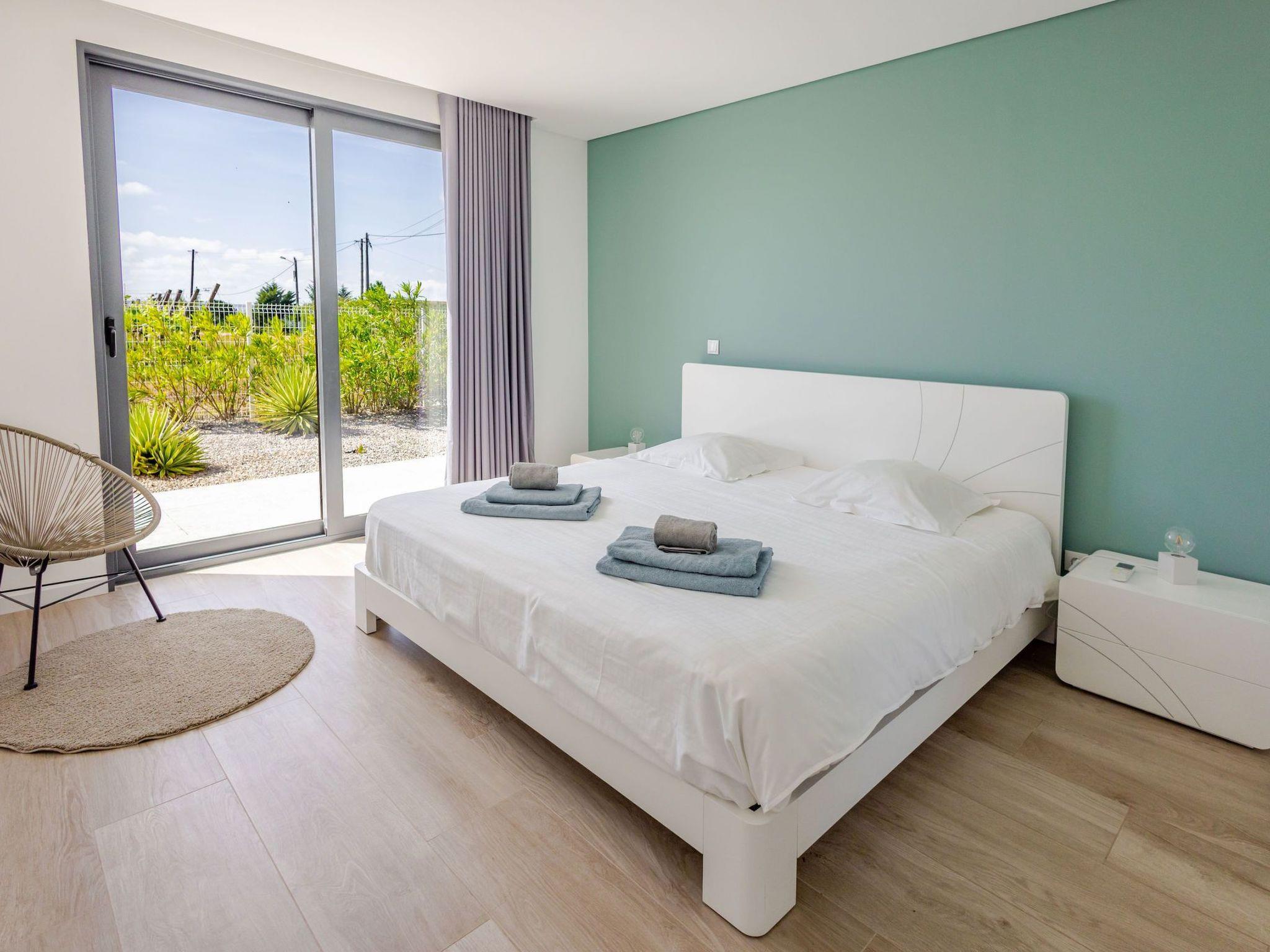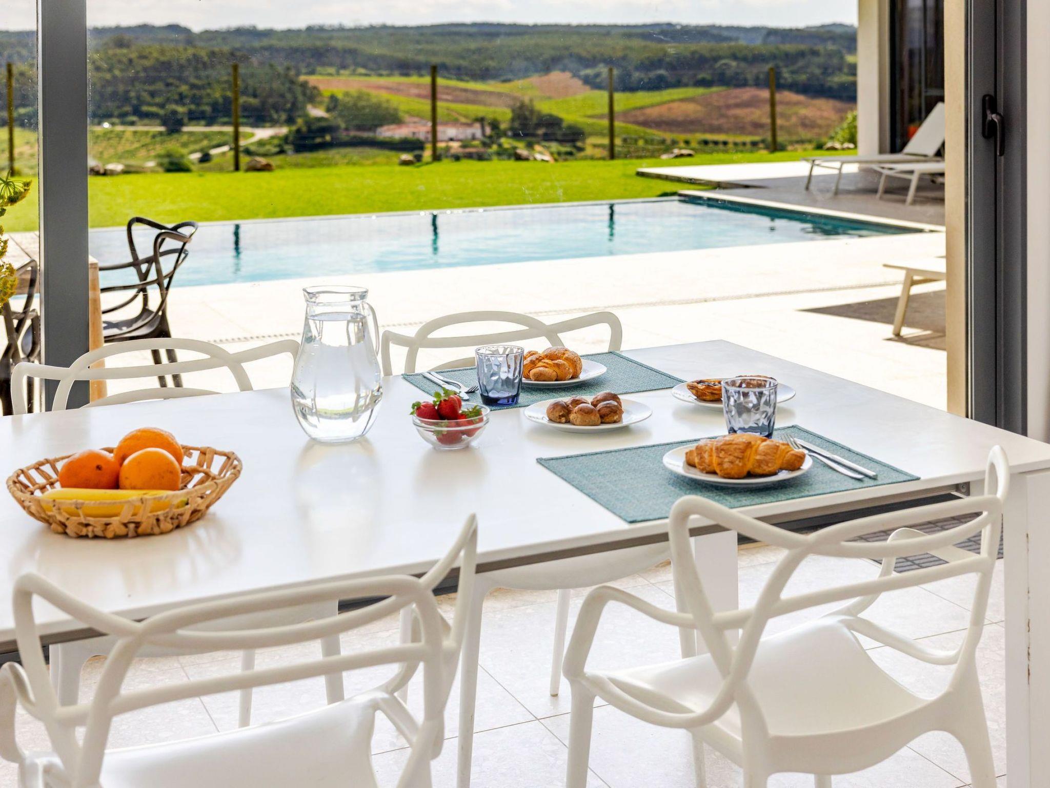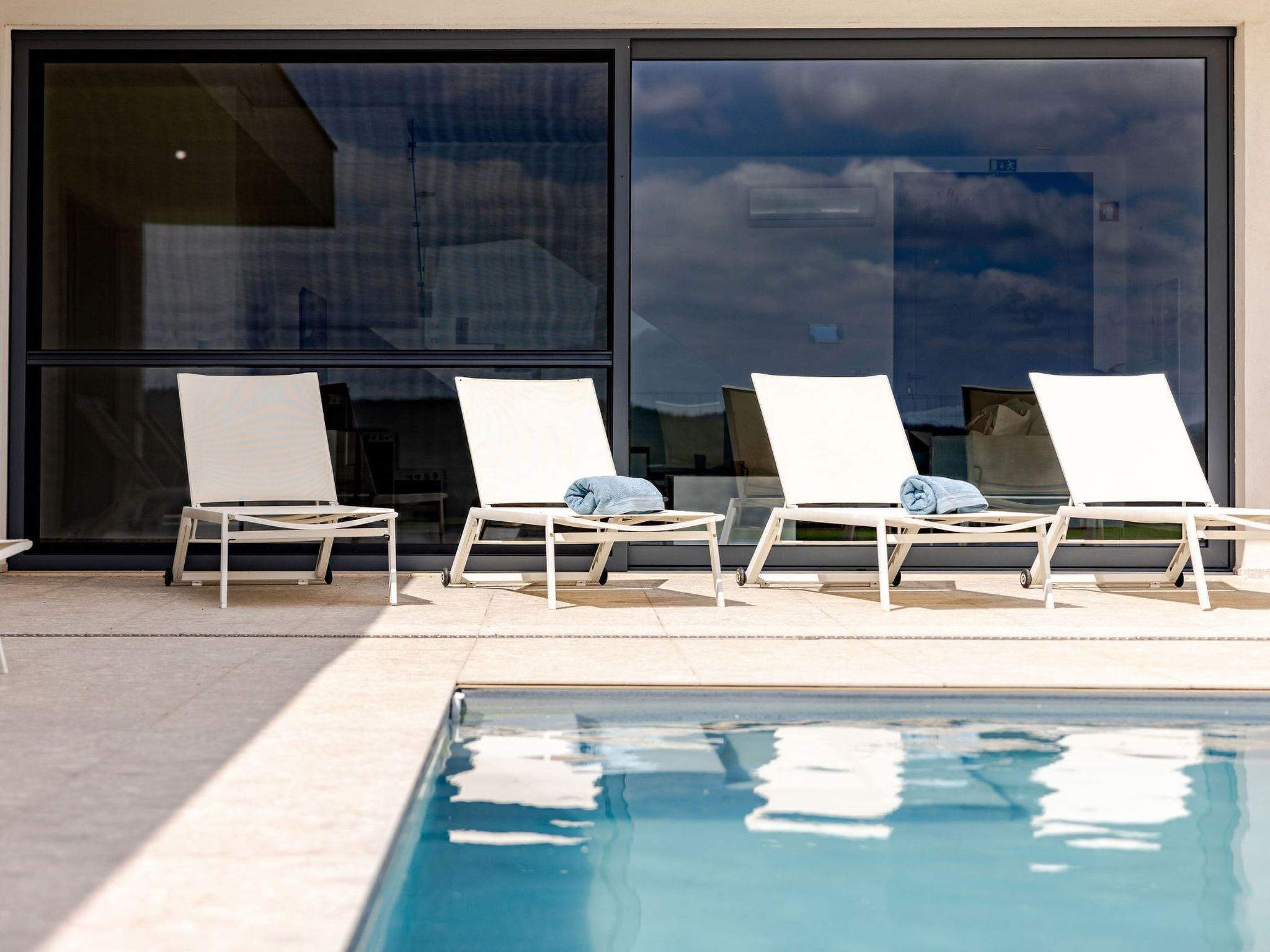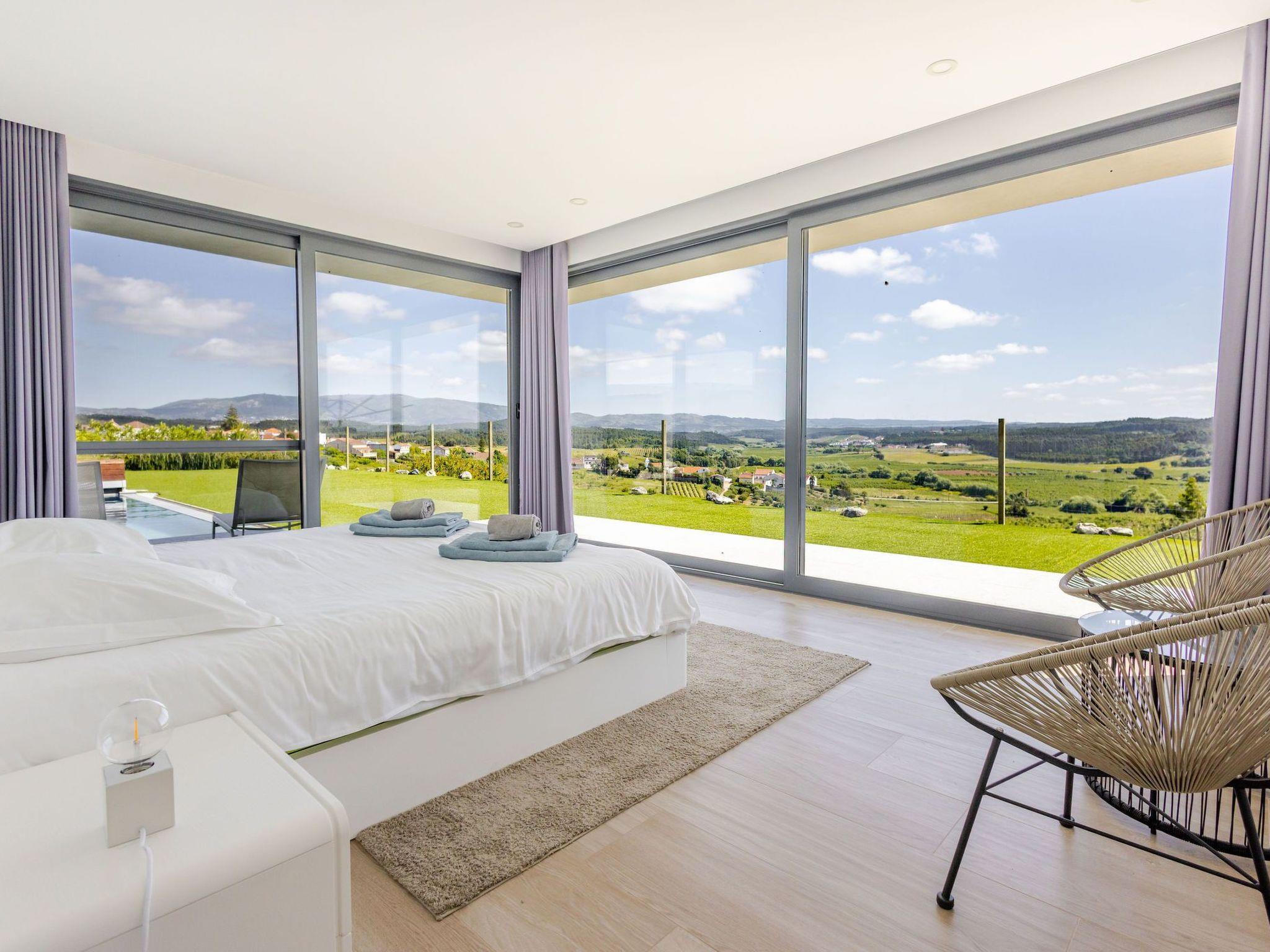 The luxurious villa is in Adão Lobo (Silver Coast), about 50 minutes from Lisbon airport, located on a quiet hill (5 min drive from the centre of Cadaval). Everything is brand new, equipped with a modern open kitchen, dining area, living room, 4 bedrooms and 4 bathrooms with a total of 8 beds, air conditioning, modern furniture, ..., everything you need. There is a private heated pool from May to September with built-in solar shutter. In October, March and April, the pool can be heated. The other months, confusion of the pool is not possible. (Small children must be watched very carefully by the pool) In the region there are several beautiful sights, beautiful nature, surfing paradises, beaches, nice restaurants, ...