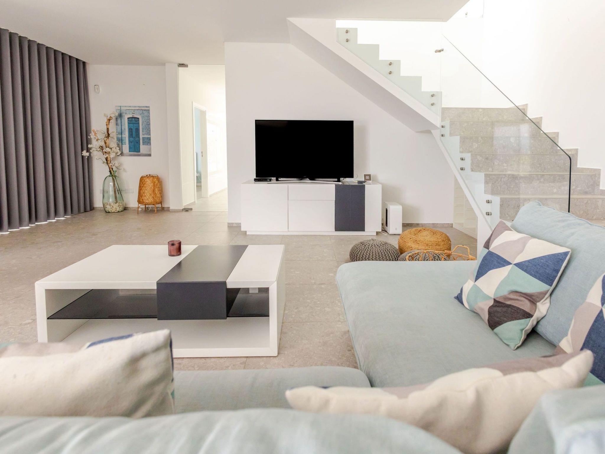 3 bedrooms with each bed of 2-2: total thus for 6 persons --> if you book extra persons (7 or 8) you will have 4 bedrooms at your disposal. 3 bathrooms + 1 bathroom by the pool fully equipped kitchen incl microwave/oven/dishwasher coffeemaker (Nescafe Dolce Gusto)/toaster/fridge/freezer washing machine/ vacuum cleaner/ironing board/iron sofa dining table + 8 chairs each room has blackout curtains covered car parking space next to the house with automatic gate Flat screen TV SONOS sound system Cable available Free WIFI available Airco