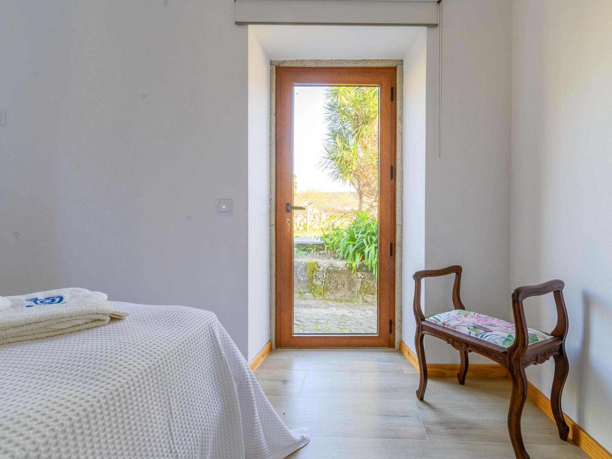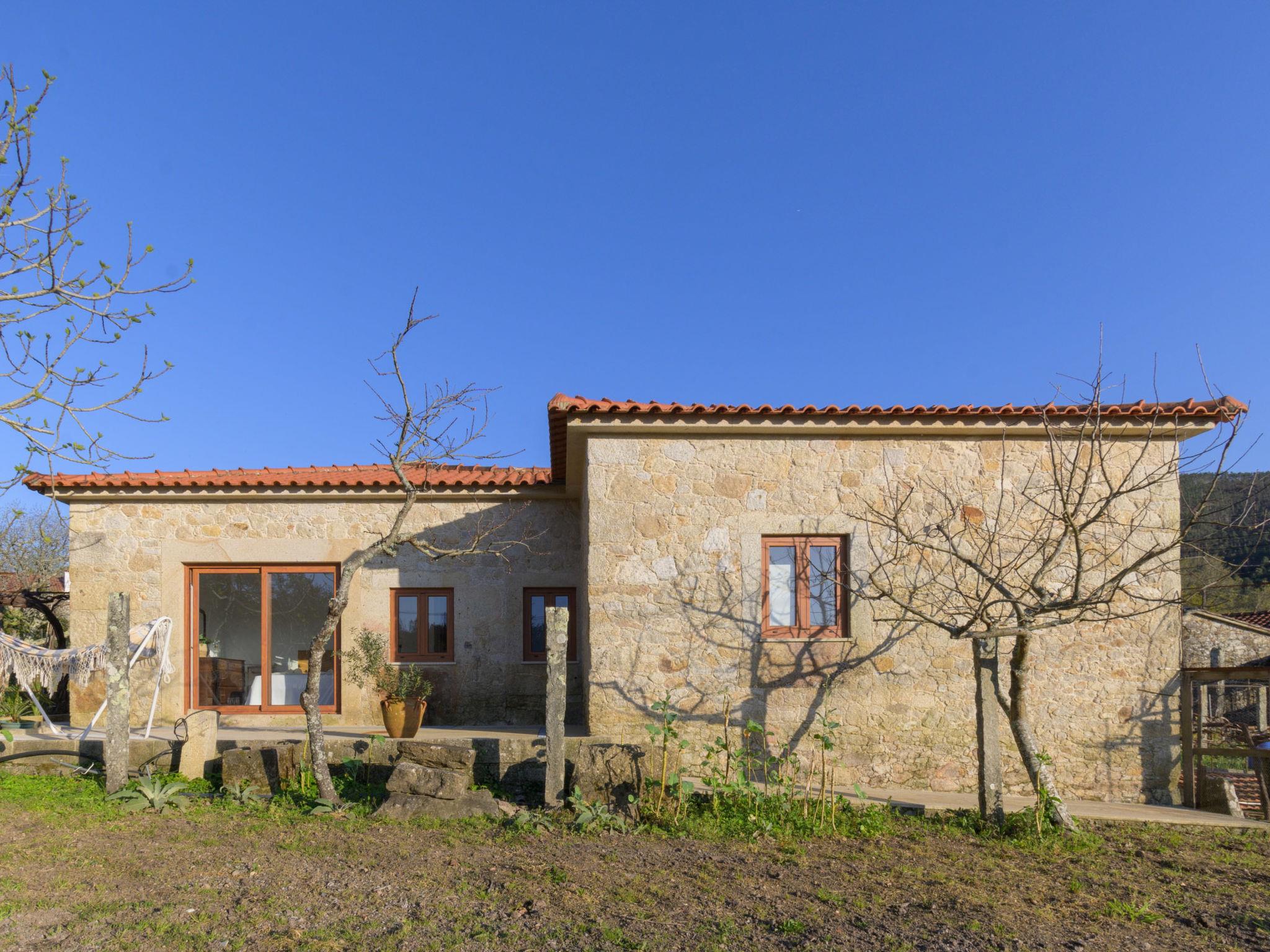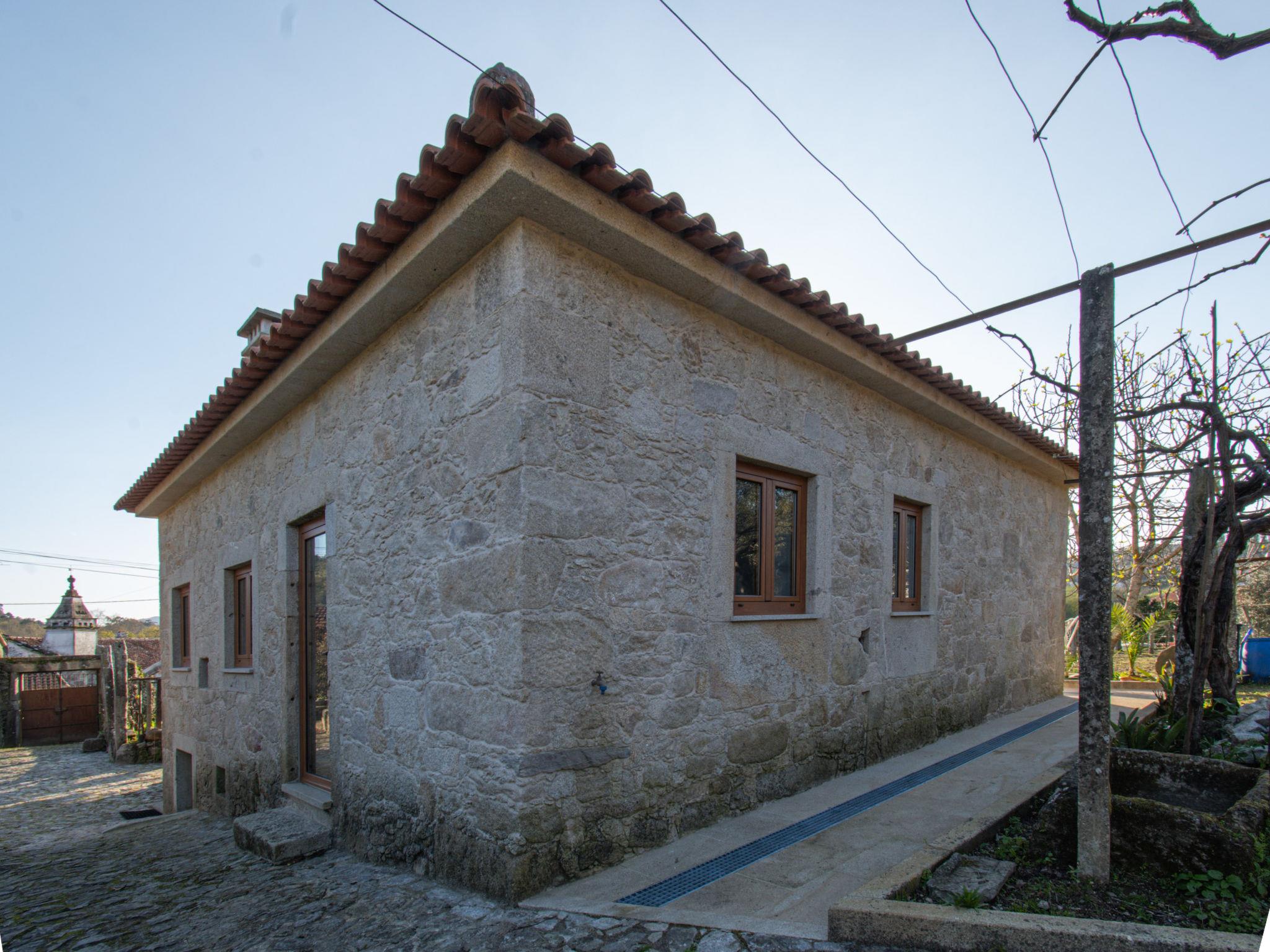 Vilar de Mouros: Very beautiful, cosy cottage "Pedra", renovated in 2024, surrounded by trees and fields. Outside the resort, 1 km from the centre of Vilar de Mouros, in the countryside. Private: natural state property. In the house: WiFi. Parking at the house on the premises. Grocery, supermarket 800 m, shopping centre 7.5 km, restaurant 900 m, bar 600 m, bakery 800 m, café 850 m, pedestrian zone 100 m, bus stop 7.5 km, sandy beach "Azenhas de Vilar de Mouros Fluvi" 1.5 km. Nearby attractions: Cascata do Pincho, Montaria 16.8 km, Miradouro do Cervo, Lovelhe 13.3 km, Muralhas e Praia do Camarido 9 km, Fortaleza de Valença 26.6 km, Caminha 7.7 km, Torre do Relógio e Porta Medieval 7.7 km. Well-known lakes can easily be reached: Rio Coura 1.5 km. Hiking paths: Passeio Marítimo da Guarda por N13 13.2 km. Please note: car recommended. Suitable for families. Loading and unloading of baggage is possible at the holiday house. excellent for surfing, windsurfing, bodyboarding. About 25 km from the city of Viana do Castelo (you can get from Caminha to Viana do Castelo by train).