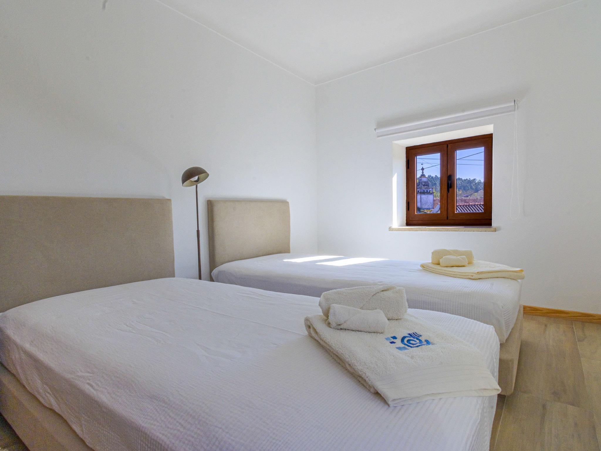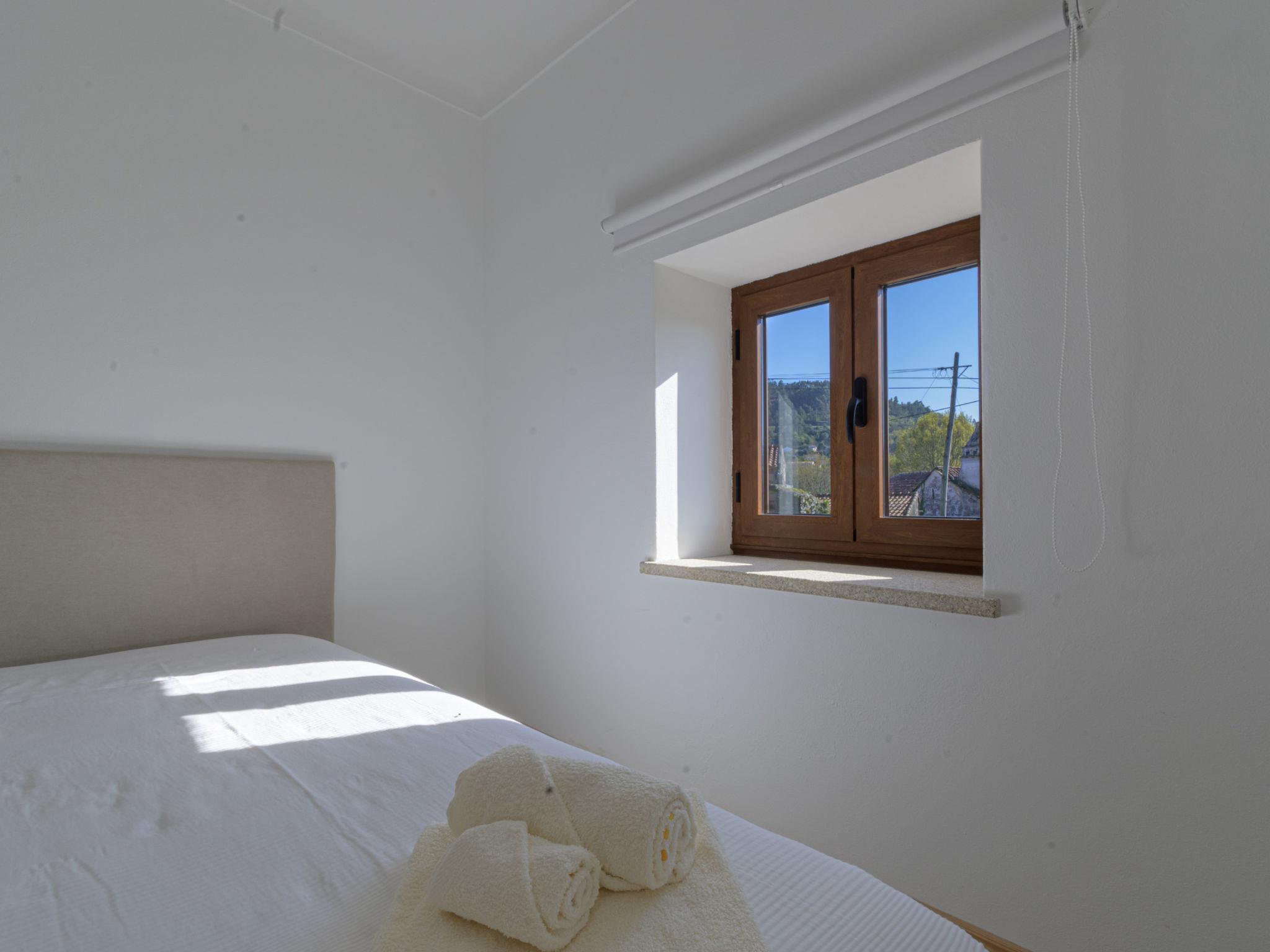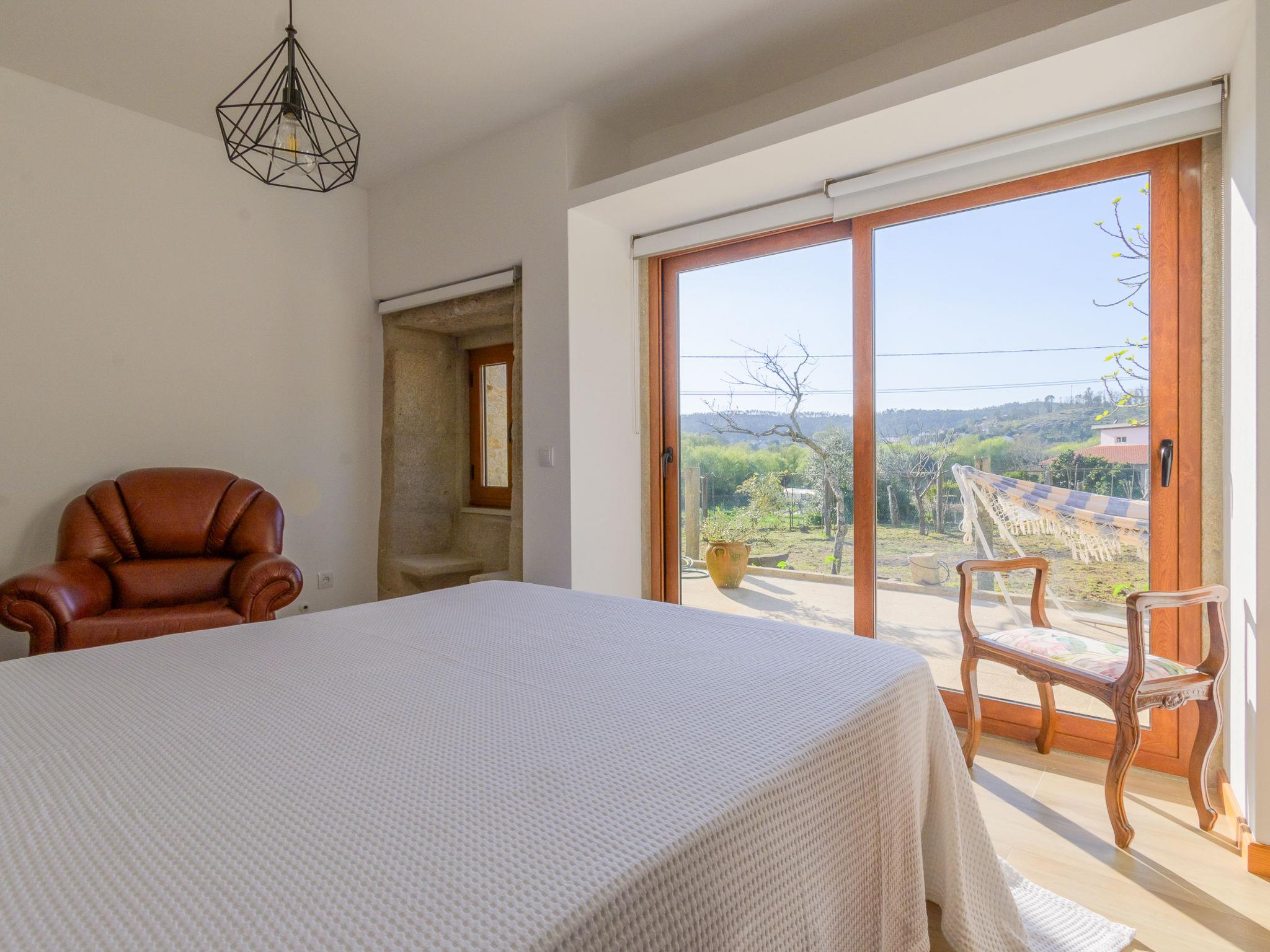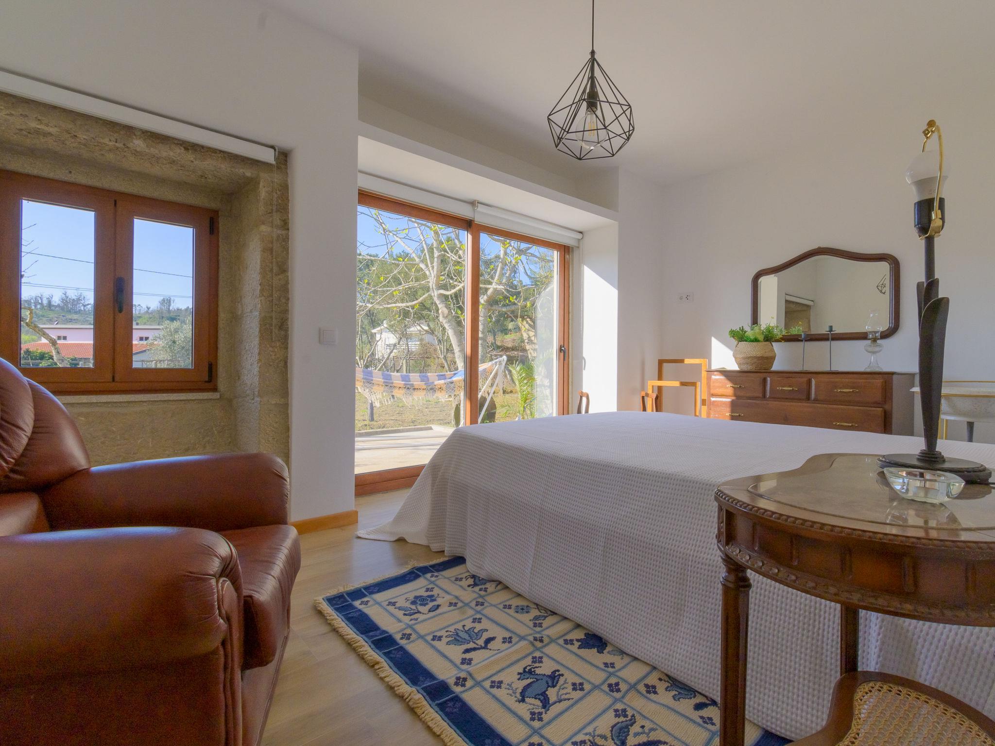 Vilar de Mouros: Very beautiful, cosy cottage "Pedra", renovated in 2024, surrounded by trees and fields. Outside the resort, 1 km from the centre of Vilar de Mouros, in the countryside. Private: natural state property. In the house: WiFi. Parking at the house on the premises. Grocery, supermarket 800 m, shopping centre 7.5 km, restaurant 900 m, bar 600 m, bakery 800 m, café 850 m, pedestrian zone 100 m, bus stop 7.5 km, sandy beach "Azenhas de Vilar de Mouros Fluvi" 1.5 km. Nearby attractions: Cascata do Pincho, Montaria 16.8 km, Miradouro do Cervo, Lovelhe 13.3 km, Muralhas e Praia do Camarido 9 km, Fortaleza de Valença 26.6 km, Caminha 7.7 km, Torre do Relógio e Porta Medieval 7.7 km. Well-known lakes can easily be reached: Rio Coura 1.5 km. Hiking paths: Passeio Marítimo da Guarda por N13 13.2 km. Please note: car recommended. Suitable for families. Loading and unloading of baggage is possible at the holiday house. excellent for surfing, windsurfing, bodyboarding. About 25 km from the city of Viana do Castelo (you can get from Caminha to Viana do Castelo by train).