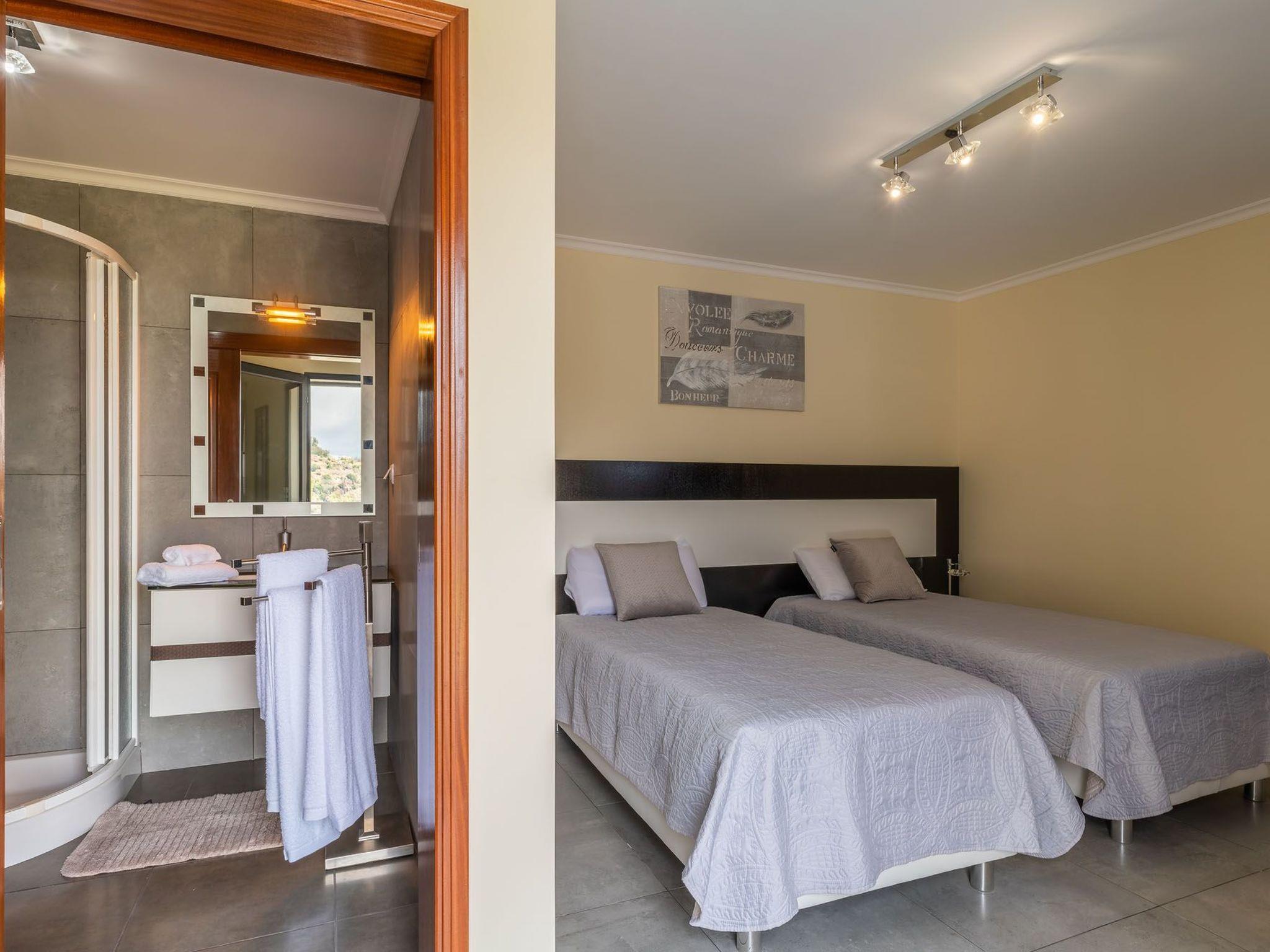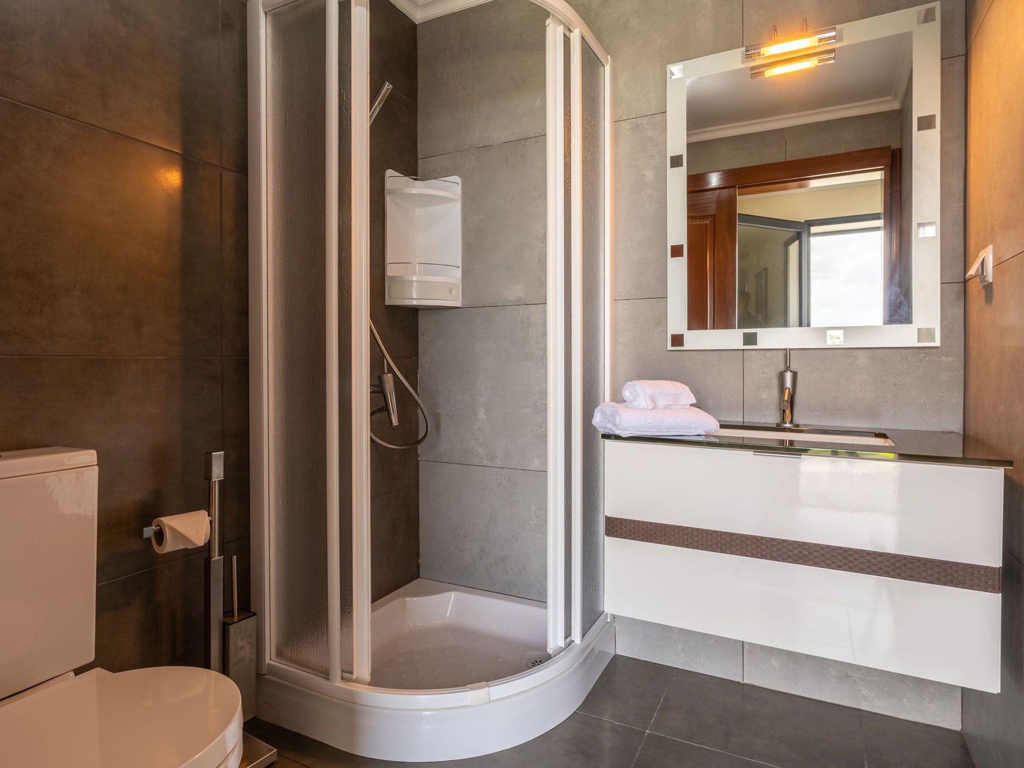 It is a single-family house on a plot of about 400 m, with a room with a double bed with its bathroom and one double room also with ensuite bathroom. It has a spacious living room with a comfortble sofa and a kitchenette, It also has a dining table for 6 people and a bathroom for common use.