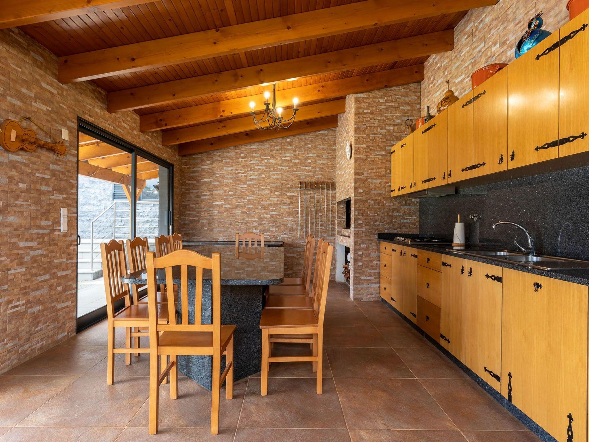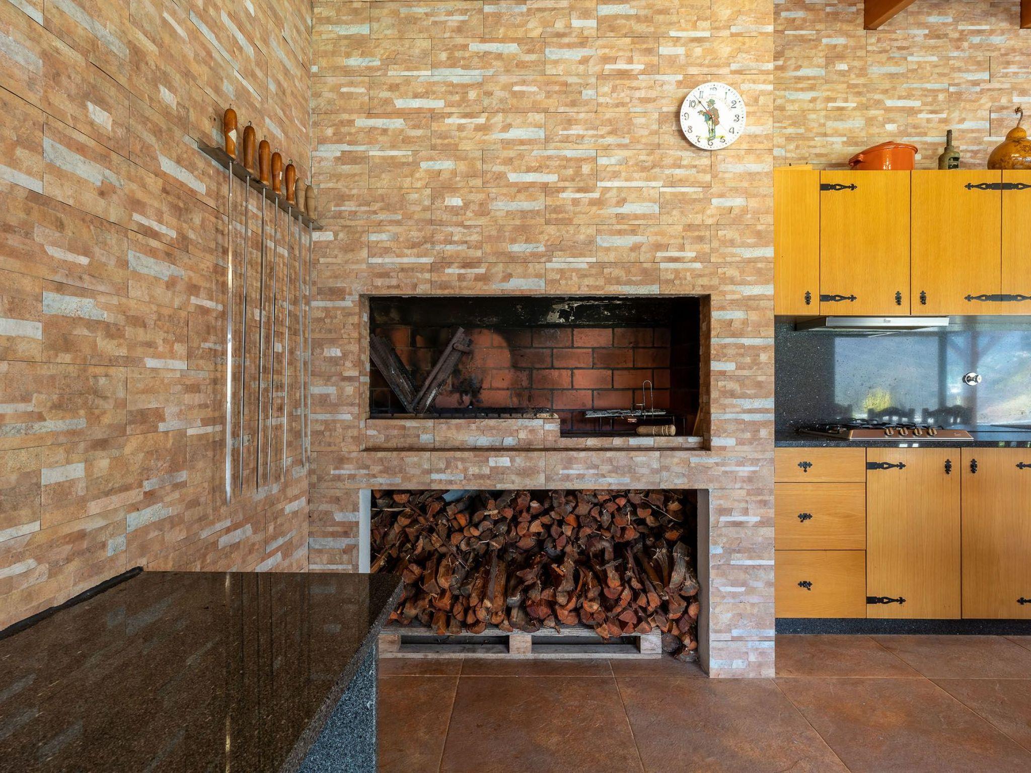 The house has a porch next to a large terrace with swimming pool and a barbecue covered with firewood available to guests.