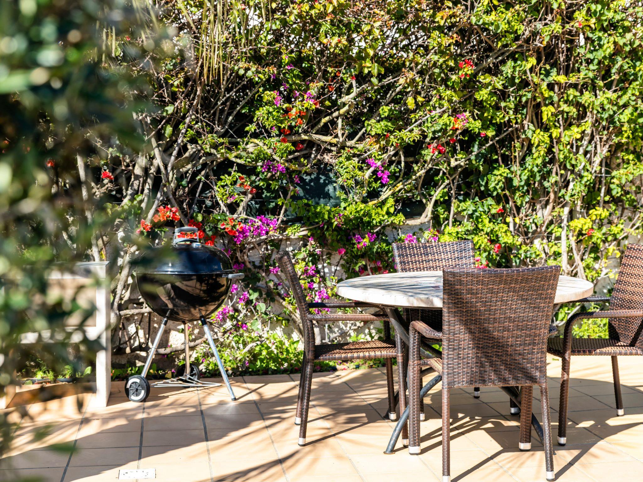 The holiday home offers 3 bedrooms and 3 ensuite bathrooms on the lower, ground floor of the property, which provides a relatively cool night's sleep even in summer (air conditioning is also available - optional, at extra cost). There are stairs leading down from the living room to this floor. There is a kids fence at the stairs from the living room to the bedrooms downstairs, so the house is suitable for small children. Two of the bedrooms have direct access to the fenced garden with a small, not too deep pool.