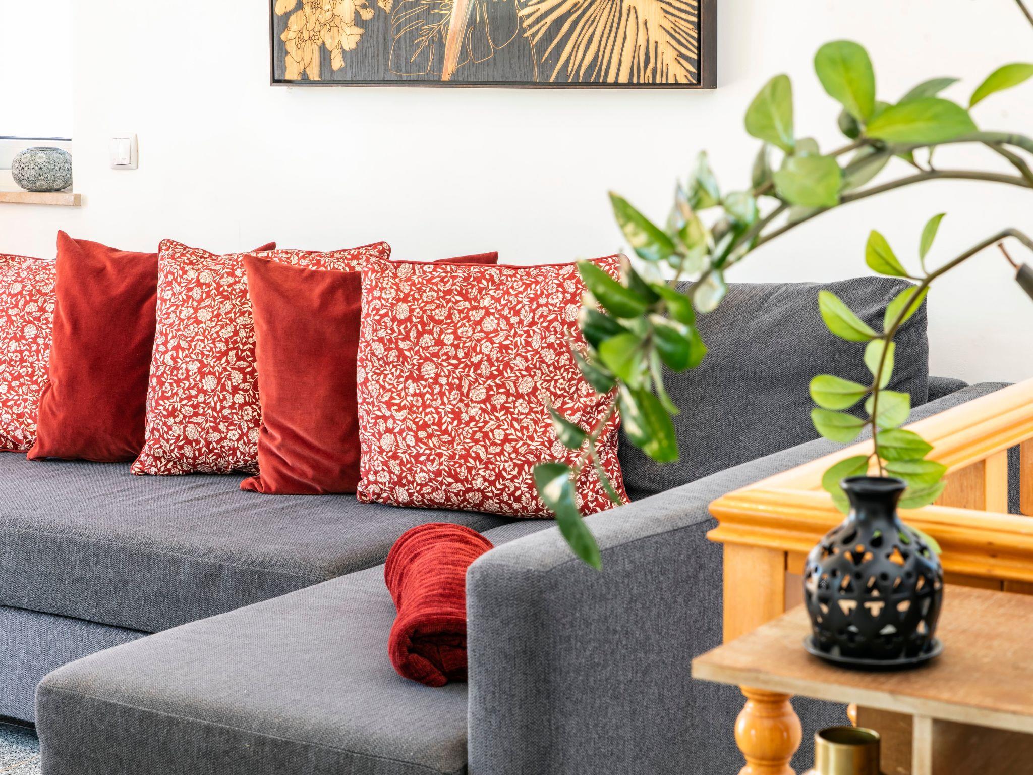 When entering this house, you actually enter on the first floor, where one can find the living room, kitchen and a guest toilet. From the living room, you can get to a balcony. The living room features comfortable furniture and has a dining area and a lounge area. WiFi, a television, a fire place and air conditioning (included in the price) is available here.