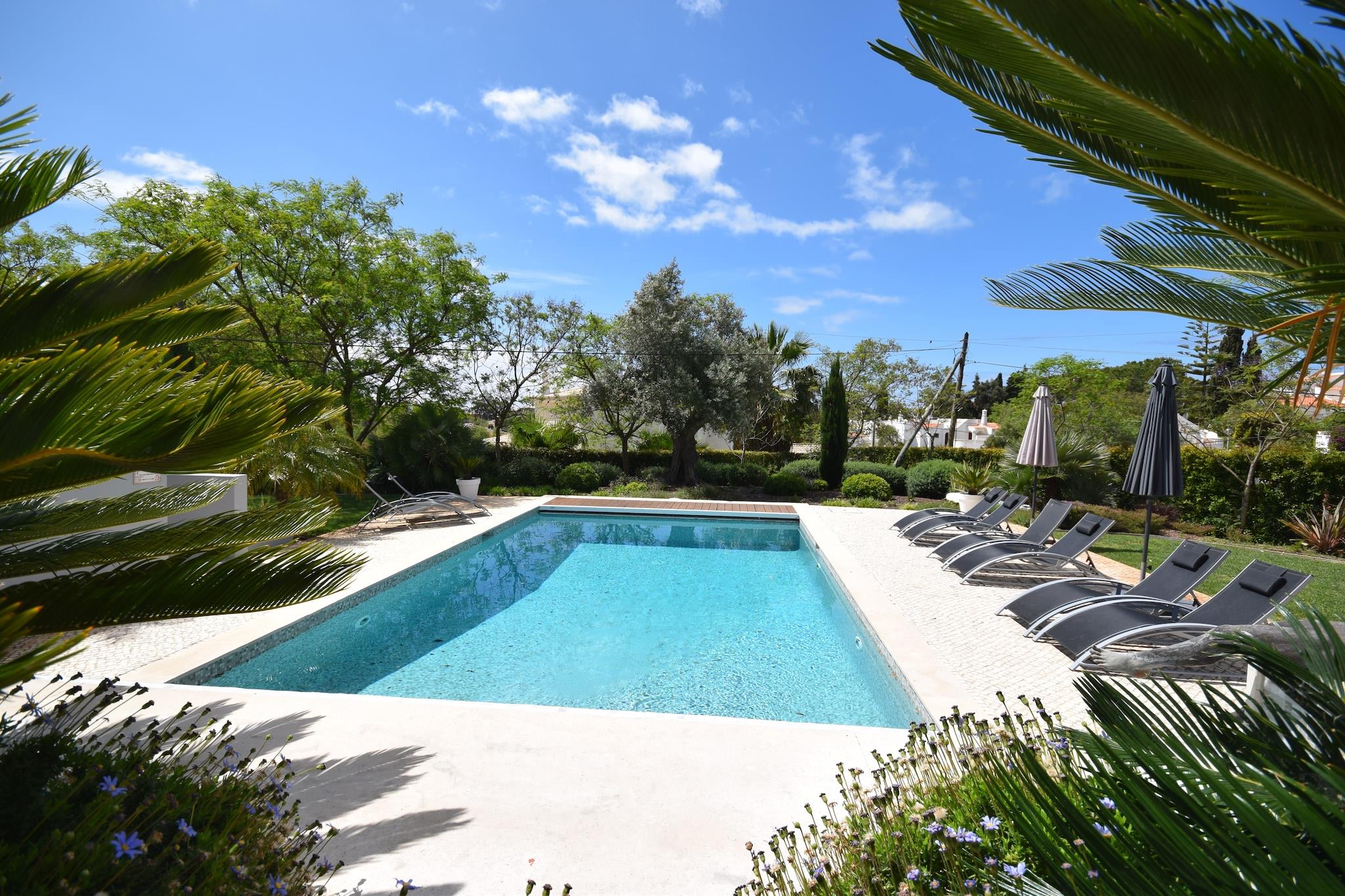 Luksus og moderne fire værelses villa beliggende kun 2 km fra centrum af Carvoeiro og golfbanen Vale do Milho. Dette hjem er fuldt udstyret og tilbyder en ubekymret ferie. Det har en stor stue med satellit-tv og dvd-afspiller, dejligt spiseplads og et moderne, luksuriøst og fuldt udstyret køkken, som har direkte adgang til udendørsområdet, hvor du finder et overdækket spiseplads med pejs. Dette område er direkte forbundet med en stor terrasse med flere siddepladser og fører dig til stranden (kan opvarmes) og smukt anlagt have. I stueetagen har du master suite med en-suite badeværelse og adgang til terrasse og have. På 1. sal finder du tre soveværelser, alle med badeværelse og toilet, hvoraf 2 har fælles adgang til en stor overdækket altan-terrasse med storslået havudsigt. Huset byder på masser af privatliv og komfort, og er ideel til familier. Alle faciliteter, herunder butikker, restauranter, barer og strande er kun få minutter (bil) væk fra Villaen. For golfspillere er der flere gode golfbaner i nærheden. Bemærk: Hvis du ønsker at bruge den opvarmede swimmingpool, er det kun muligt at gøre det om ugen. Betalingen pr. Uge er EURO 157,50.