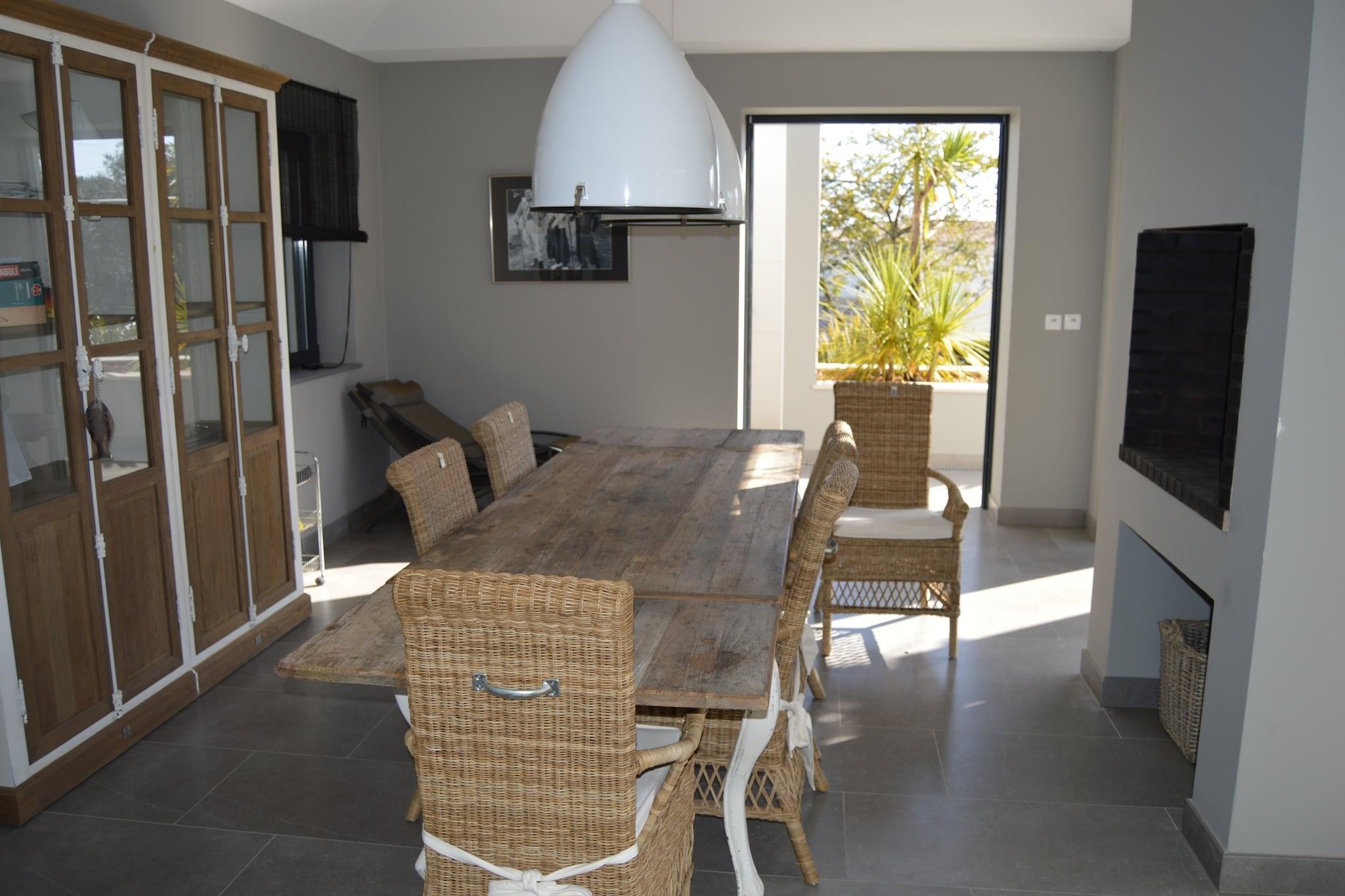 Stueetage: (entre(toilet), Stue(Fjernsyn(fladskærm, Hollandske TV-kanaler, Internationale TV-kanaler), hyggepejs, sofahjørne, DVD-afspiller, klimaanlæg), spisestue(spisebord(6 personer), klimaanlæg), åbent køkken(elkedel, brødrister, komfur(Komfur med fem kogeplader, glaskeramisk), kaffemaskine, combi-mikroovn, opvaskemaskine , køle-fryseskab, klimaanlæg, Saftpresser, Blender), Soveværelse med badeværelse(dobbeltseng(180 x 200 cm), badekar, bruser, 2x håndvask, klimaanlæg, terrasse), toilet(adgang udefra), vaskerum (tørretumbler, vaskemaskine), fællesrum(spisebord(8 personer), pejs)) På 1. etage: (Soveværelse med badeværelse(dobbeltseng(180 x 210 cm), bruser, håndvask, toilet, balkon, klimaanlæg), Soveværelse med badeværelse(dobbeltseng(180 x 210 cm), bruser, håndvask, toilet, balkon, klimaanlæg), Soveværelse med badeværelse(dobbeltseng(180 x 210 cm), badekar med bruser, håndvask, toilet, balkon, klimaanlæg), Repos) badeværelse(bruser(udendørs), toilet), terrasse(privat, overdækket, 50 m2), have(privat, indhegnet, oplyst), havemøbler(8 personer), grill(trækul), parkering, liggestole, Parasol, swimmingpool(privat, opvarmes, termotæppe til swimmingpool, 10 x 5 m.), barneseng, barnestol