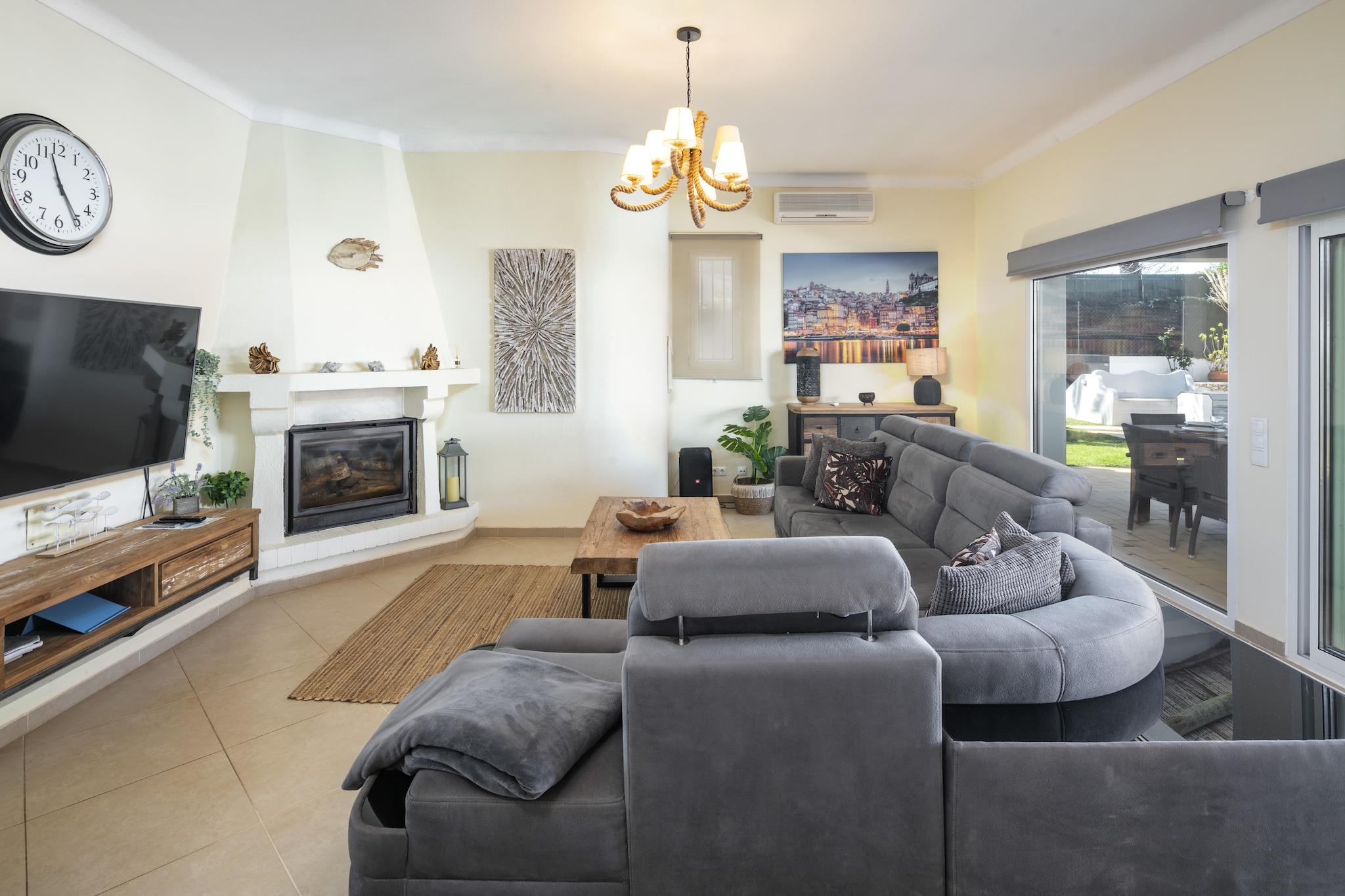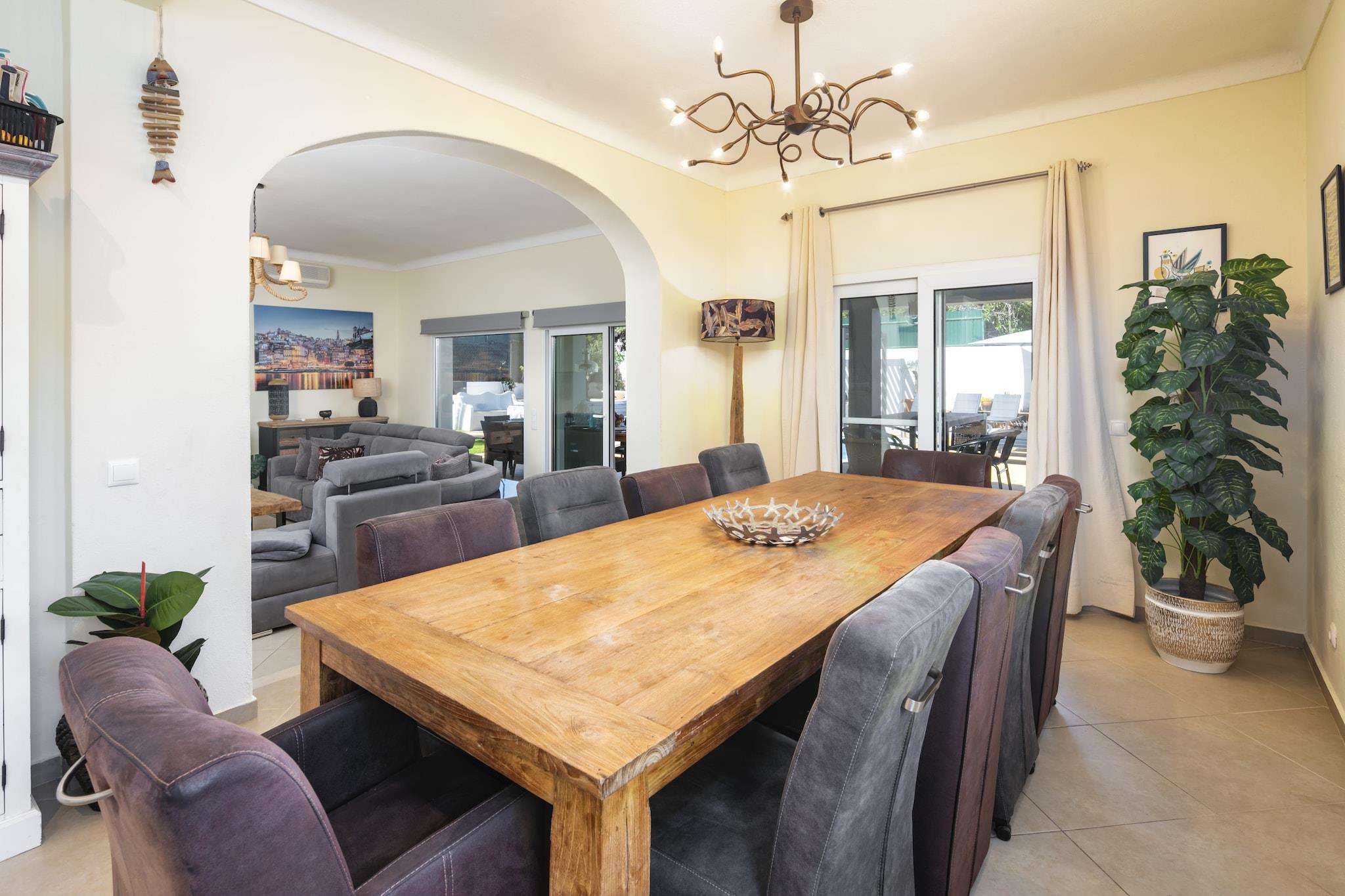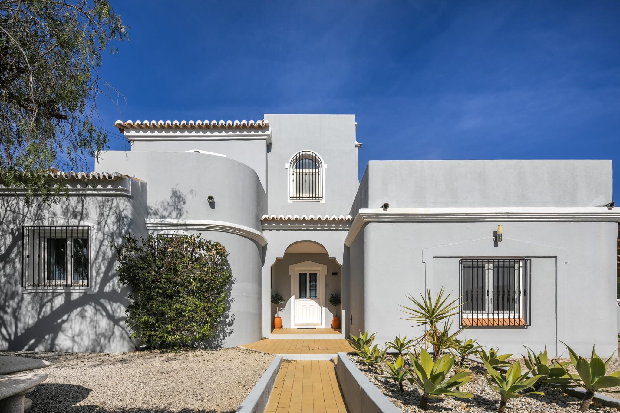 Oplev et ideelt familieferiested i denne fantastiske 5-værelses villa beliggende i den smukke kystby Carvoeiro, Algarve. Rummelig og gennemtænkt designet, denne bolig er perfekt til familier, par og venner, der søger en mindeværdig ferieoplevelse i Portugal. Med imponerende 240 kvadratmeter boligareal på en generøs 1.100 kvadratmeter grund, kan denne villa komfortabelt rumme op til 10 gæster. Træd udenfor for at nyde spektakulære udendørsrum, herunder en privat opvarmet saltvandspool (8m x 4m), en solterrasse og flere lounging-områder, ideelle til at slikke solen. Familier vil elske grillpladsen, havemøblerne og den indhegnede grund, der giver et trygt miljø for børn. Indendørs er komfort nøglen med centralvarme, aircondition og gulvvarme til nydelse året rundt. Underholdningsmulighederne omfatter et smart-tv med flere kanaler, et stereoanlæg og et bordtennisbord til familiehygge. Villaen ligger blot 1,3 km fra de fantastiske strande Praia do Carvoeiro og Praia do Paraíso og tilbyder nem adgang til kystattraktioner. Nærliggende faciliteter, herunder supermarkeder, restauranter og golfbaner, forbedrer din oplevelse. Yderligere funktioner omfatter gratis WiFi, strandudstyr, udendørs bruser og en pejs til hyggelige aftener. Med privat parkering til 3 køretøjer og en fremragende beliggenhed lover denne villa en uforglemmelig ferie i Algarve. Bemærk venligst: Husdyr er ikke tilladt, og ejendommen er ikke egnet til ungdomsgrupper. Rygning indenfor er forbudt.