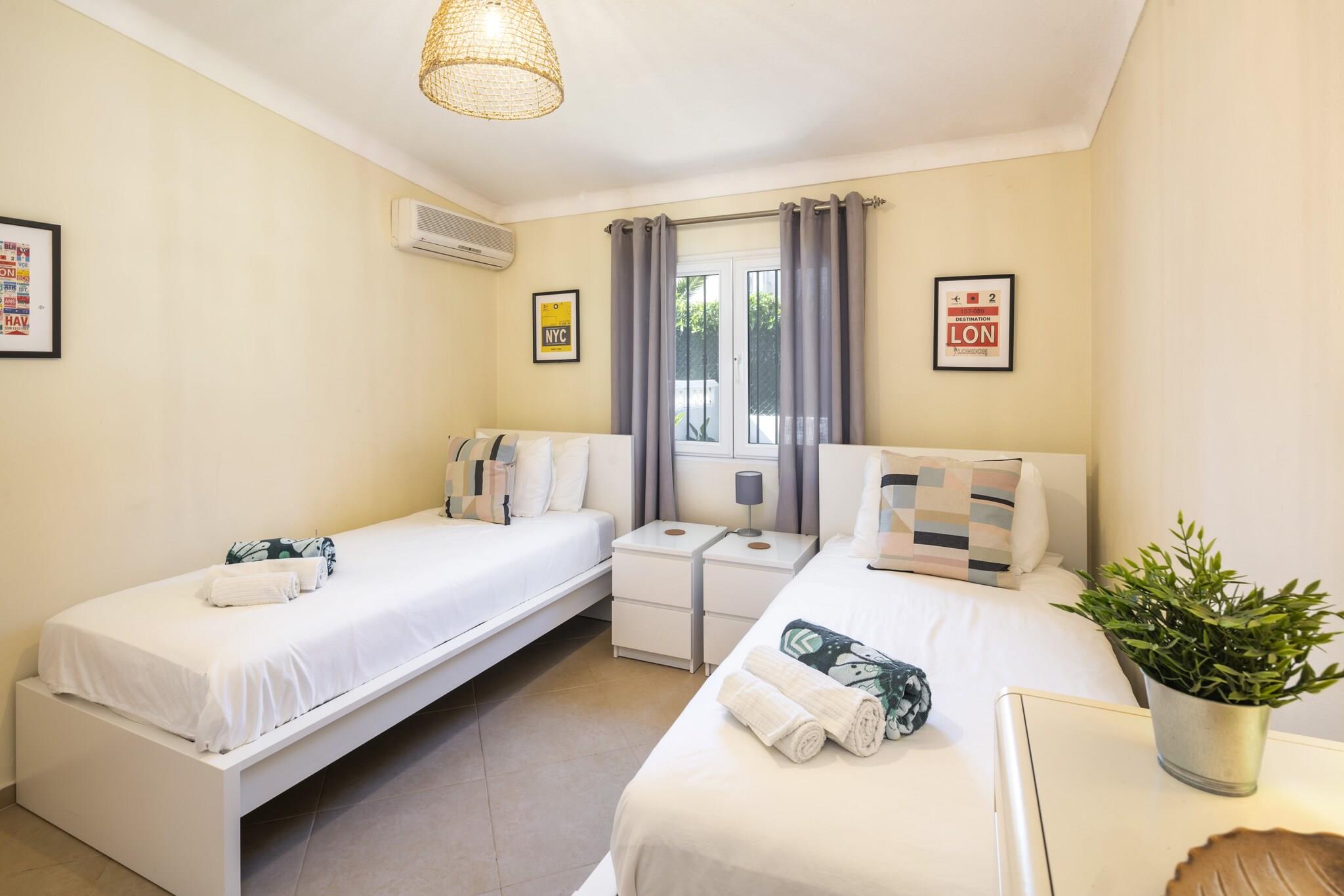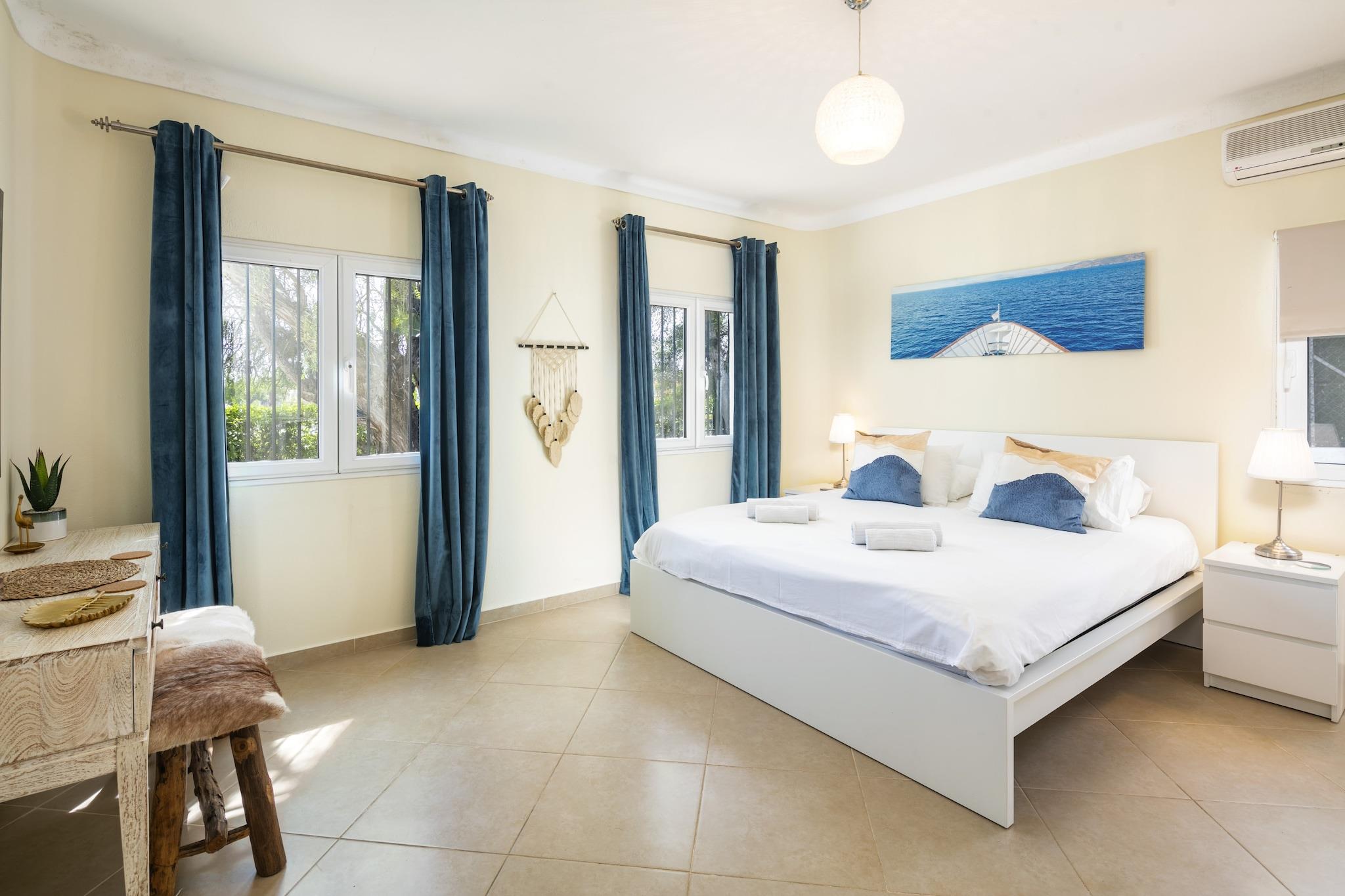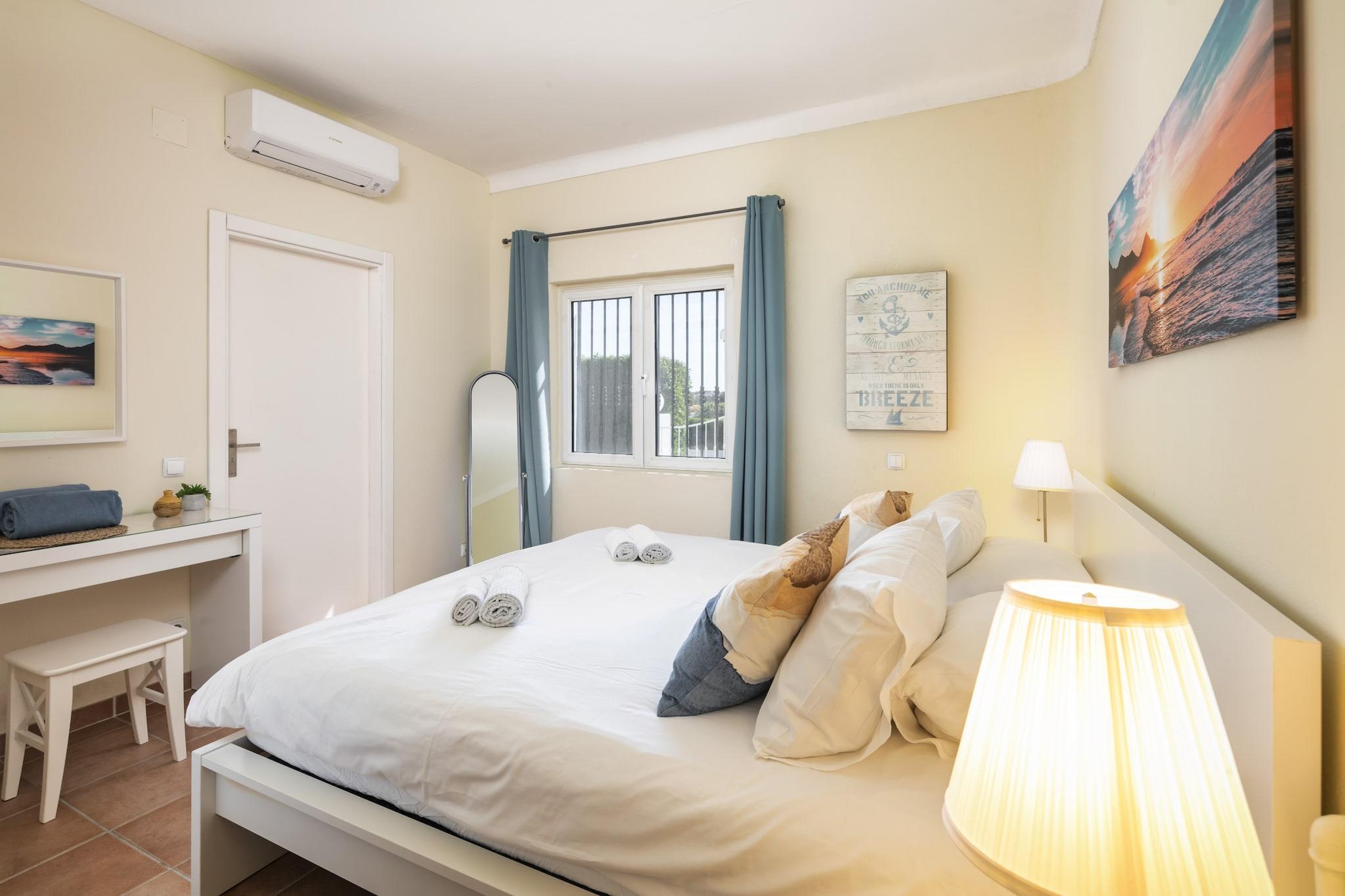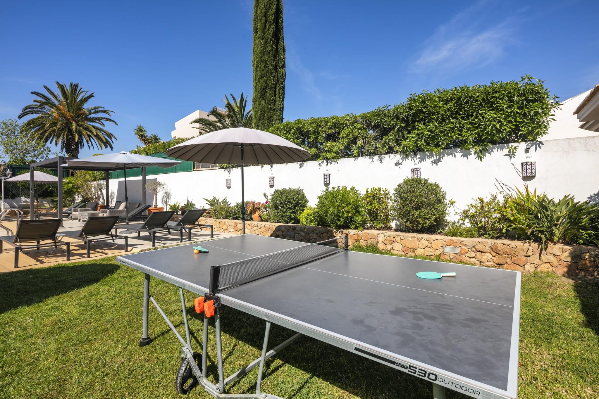 Oplev et ideelt familieferiested i denne fantastiske 5-værelses villa beliggende i den smukke kystby Carvoeiro, Algarve. Rummelig og gennemtænkt designet, denne bolig er perfekt til familier, par og venner, der søger en mindeværdig ferieoplevelse i Portugal. Med imponerende 240 kvadratmeter boligareal på en generøs 1.100 kvadratmeter grund, kan denne villa komfortabelt rumme op til 10 gæster. Træd udenfor for at nyde spektakulære udendørsrum, herunder en privat opvarmet saltvandspool (8m x 4m), en solterrasse og flere lounging-områder, ideelle til at slikke solen. Familier vil elske grillpladsen, havemøblerne og den indhegnede grund, der giver et trygt miljø for børn. Indendørs er komfort nøglen med centralvarme, aircondition og gulvvarme til nydelse året rundt. Underholdningsmulighederne omfatter et smart-tv med flere kanaler, et stereoanlæg og et bordtennisbord til familiehygge. Villaen ligger blot 1,3 km fra de fantastiske strande Praia do Carvoeiro og Praia do Paraíso og tilbyder nem adgang til kystattraktioner. Nærliggende faciliteter, herunder supermarkeder, restauranter og golfbaner, forbedrer din oplevelse. Yderligere funktioner omfatter gratis WiFi, strandudstyr, udendørs bruser og en pejs til hyggelige aftener. Med privat parkering til 3 køretøjer og en fremragende beliggenhed lover denne villa en uforglemmelig ferie i Algarve. Bemærk venligst: Husdyr er ikke tilladt, og ejendommen er ikke egnet til ungdomsgrupper. Rygning indenfor er forbudt.
