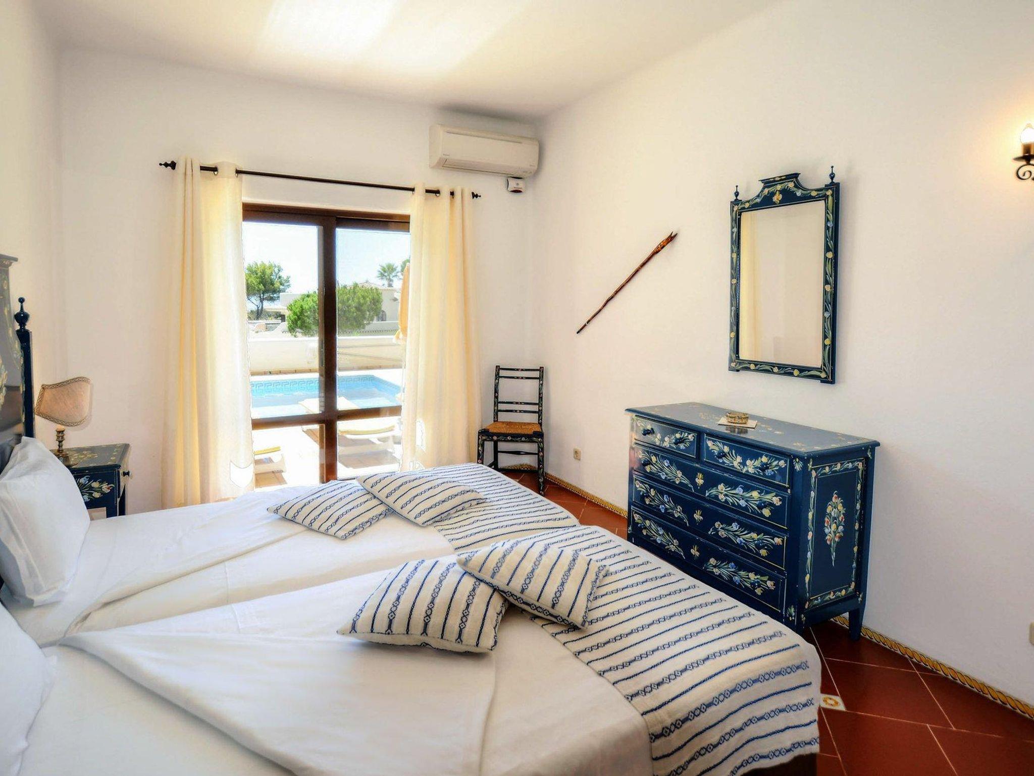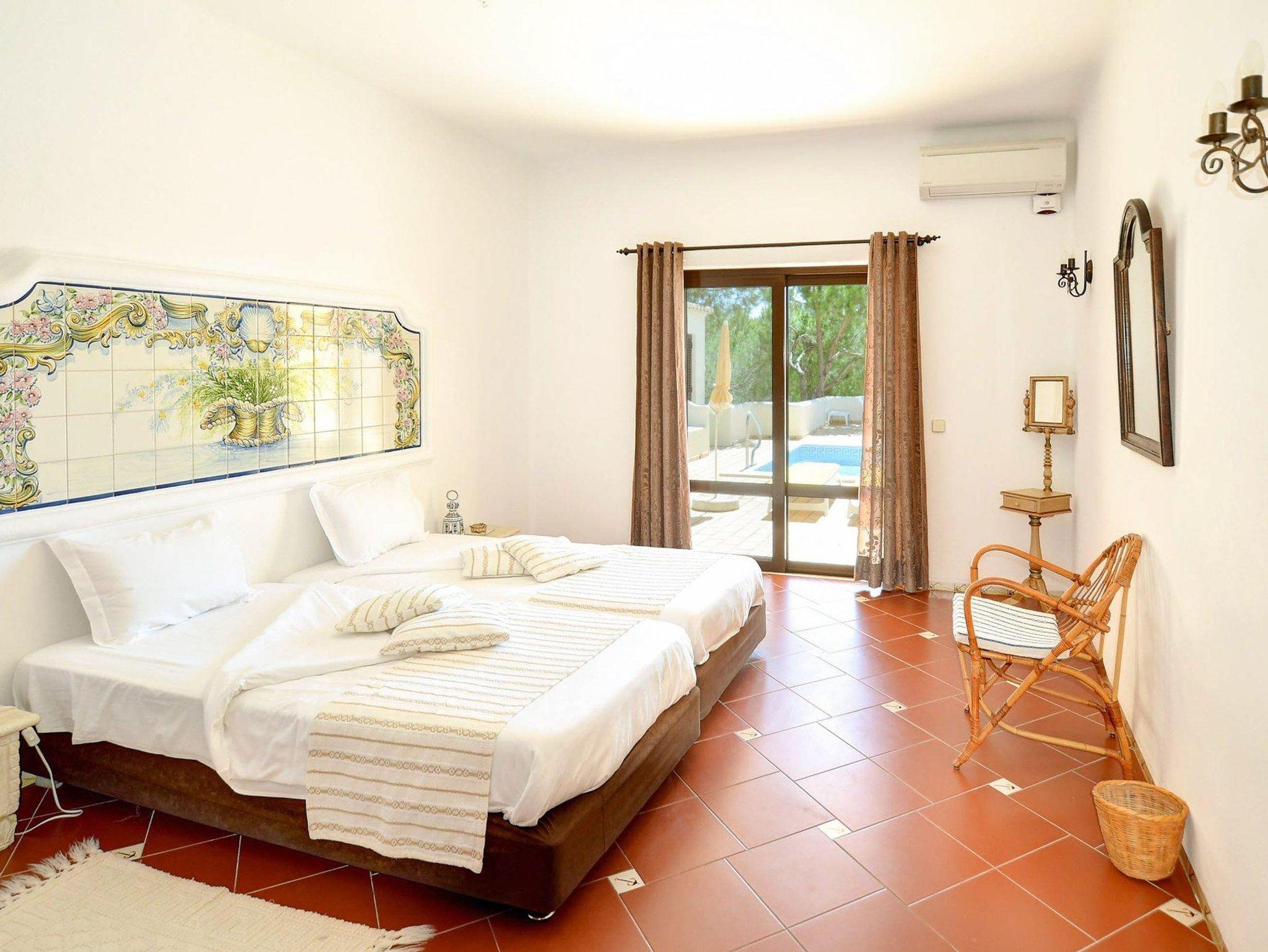 Vier Schlafzimmer mit drei Bädern liegen im Erdgeschoss und öffnen sich zur Schwimmbadterrasse und zum heizbaren Pool.