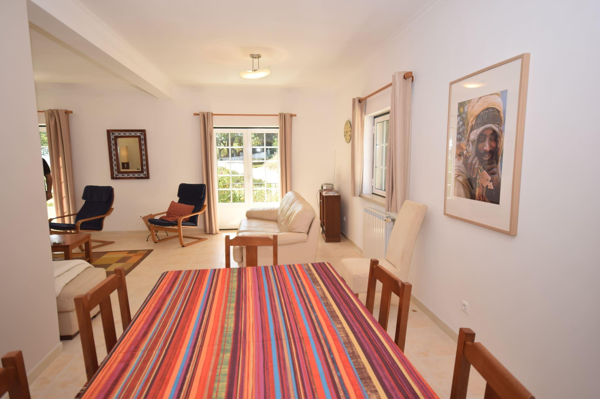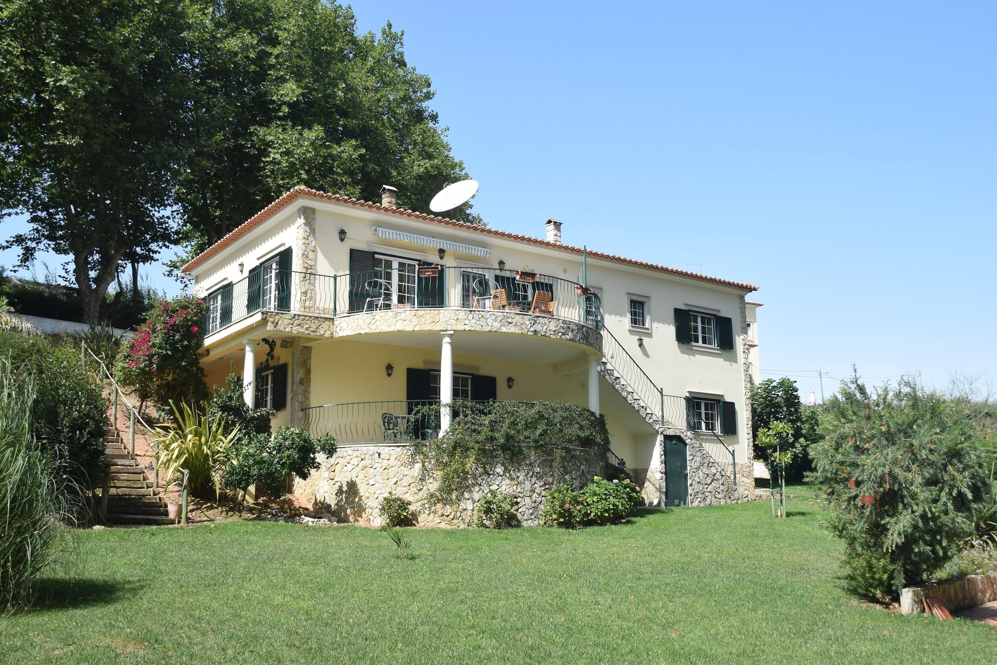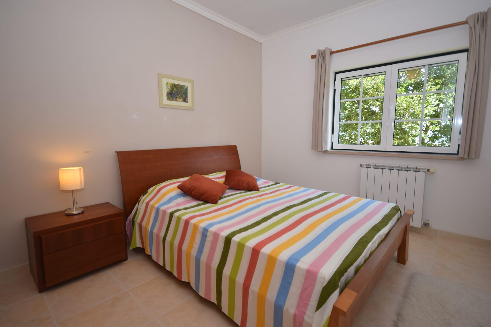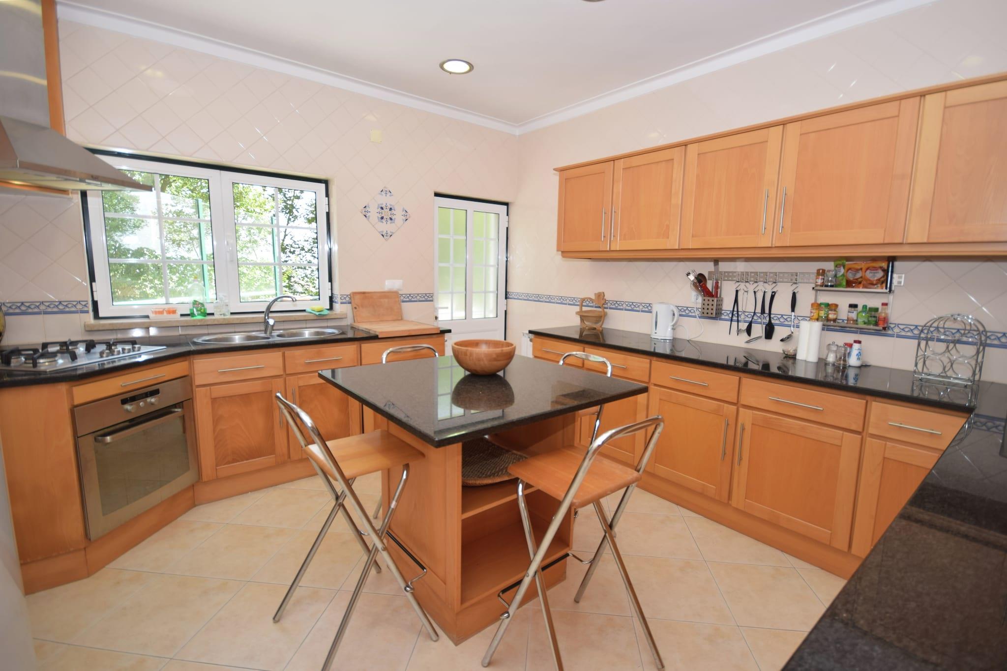 Oplev fredeligt landskab i denne rummelige villa beliggende i Casais de Santa Helena. Dette indbydende oase tilbyder en privat swimmingpool, der er åben året rundt, en jacuzzi, en stor solterrasse med liggestole og et grillområde - perfekt til udendørs spisning og afslapning. Haven er ideel til børn og byder på legeredskaber samt en børneseng og høj stol til rådighed for unge gæster. Indenfor inviterer den hyggelige stue med pejs dig til at slappe af, mens det fuldt udstyrede køkken lader dig tilberede lækre måltider med lethed. Nyd en fantastisk panoramaudsigt over vingården fra balkonen og terrassen. Kun 15 km væk ligger middelalderbyen Óbidos, der er berømt for sine brostensbelagte gader, antikke slot og charmerende lokale markeder. Kun 5 km længere væk finder du smukke sandstrande, der er ideelle til en dag ved havet. For surfelskere er Peniche (32 km) vært for berømte surfkonkurrencer årligt, der tiltrækker entusiaster verden over. Udforsk det omkringliggende landskab på fredelige gåture eller besøg den maleriske landsby Casais da Santa Helena i nærheden for at få et glimt af det autentiske liv på landet. Nyd det traditionelle portugisiske køkken i lokale restauranter i Óbidos og Casais da Santa Helena, herunder friskfangede fisk og skaldyr og regionale specialiteter som caldeirada (fiskegryderet). En en-dagstur til Peniche byder ikke kun på spektakulære bølger, men også besøg på Berlenga-øerne og historiske forter. Alternativt kan du udforske Lissabons kulturelle rigdom, omkring 75 km væk, for en hel dag med historie, museer og pulserende madmarkeder.