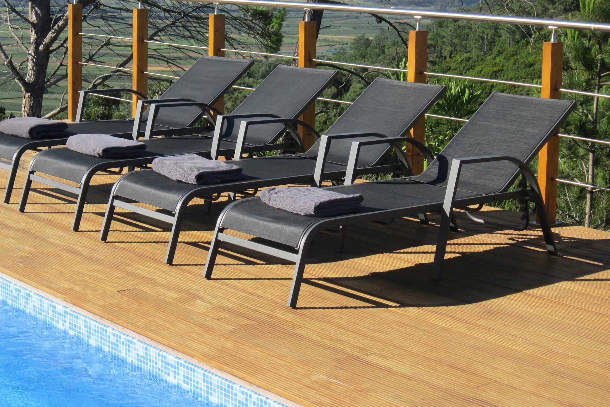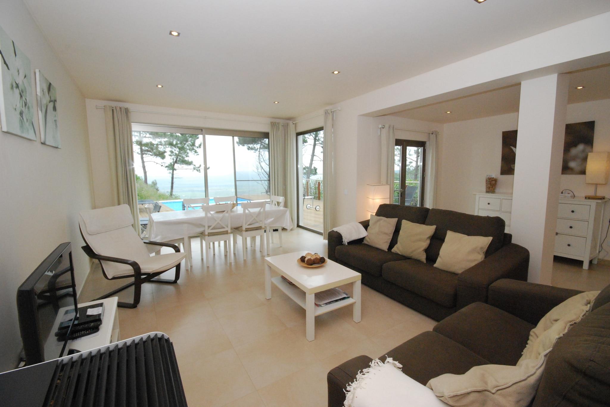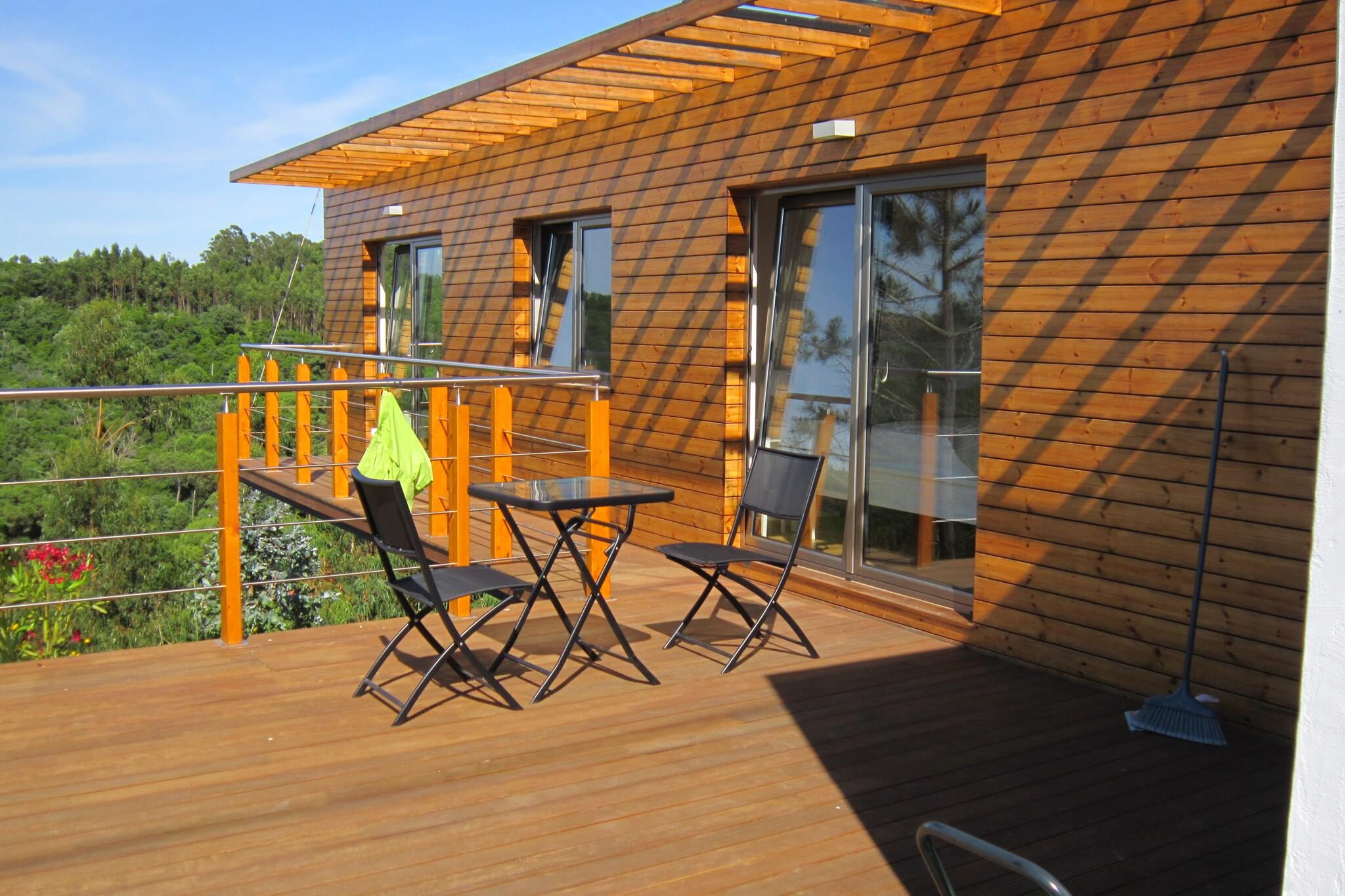 Kom og nyd dig selv i denne moderne villa med privat swimmingpool på Silver Coast i Cela! Dette smukt designede feriehus er bygget i en unik arkitektonisk stil, hvorved en del af huset ser ud til at flyde i luften. Møblerne er komfortable med jordfarver som accentfarver. De forskellige træelementer på ydersiden af huset giver huset en rustik stemning. Fra stuen / spisestuen går du lige gennem skydedørene til teakterrassen, hvor du kan slappe af i fred på salerne. Placeringen på en bakketop giver denne landlige bolig med en dejlig bred udsigt med havet i det fjerne. Du kan afkøle i swimmingpoolen, som kan opvarmes, når temperaturen falder. Du kan spise al fresco ved den indbyggede grill. På 5-10 minutter i bilen finder du de smukke strande Nazaré og São Martinho do Porto. São Martinho do Porto centrum har mange fiskerestauranter. Alcobaça med klosteret ligger 6 km væk. For dem der ønsker at tage en dagstur, Óbidos (30 min.) Og pilgrimsstedet Fatima (45 min. ) anbefales. Hovedstaden Lissabon er cirka en time væk. Bemærk venligst: Swimmingpoolen kan opvarmes mod betaling i marts til og med oktober. Dette skal anmodes om 3 dage i forvejen. Prisen er 8 EURO pr. dag.