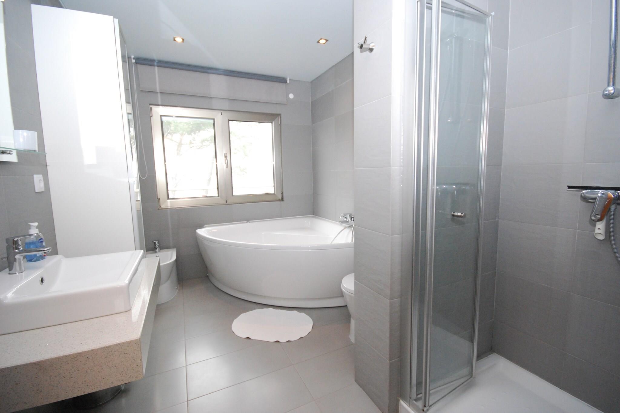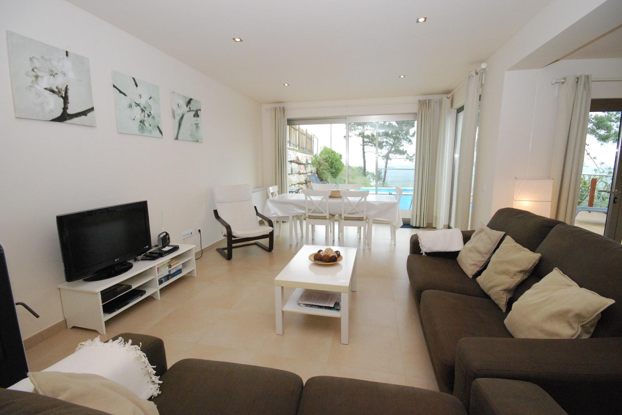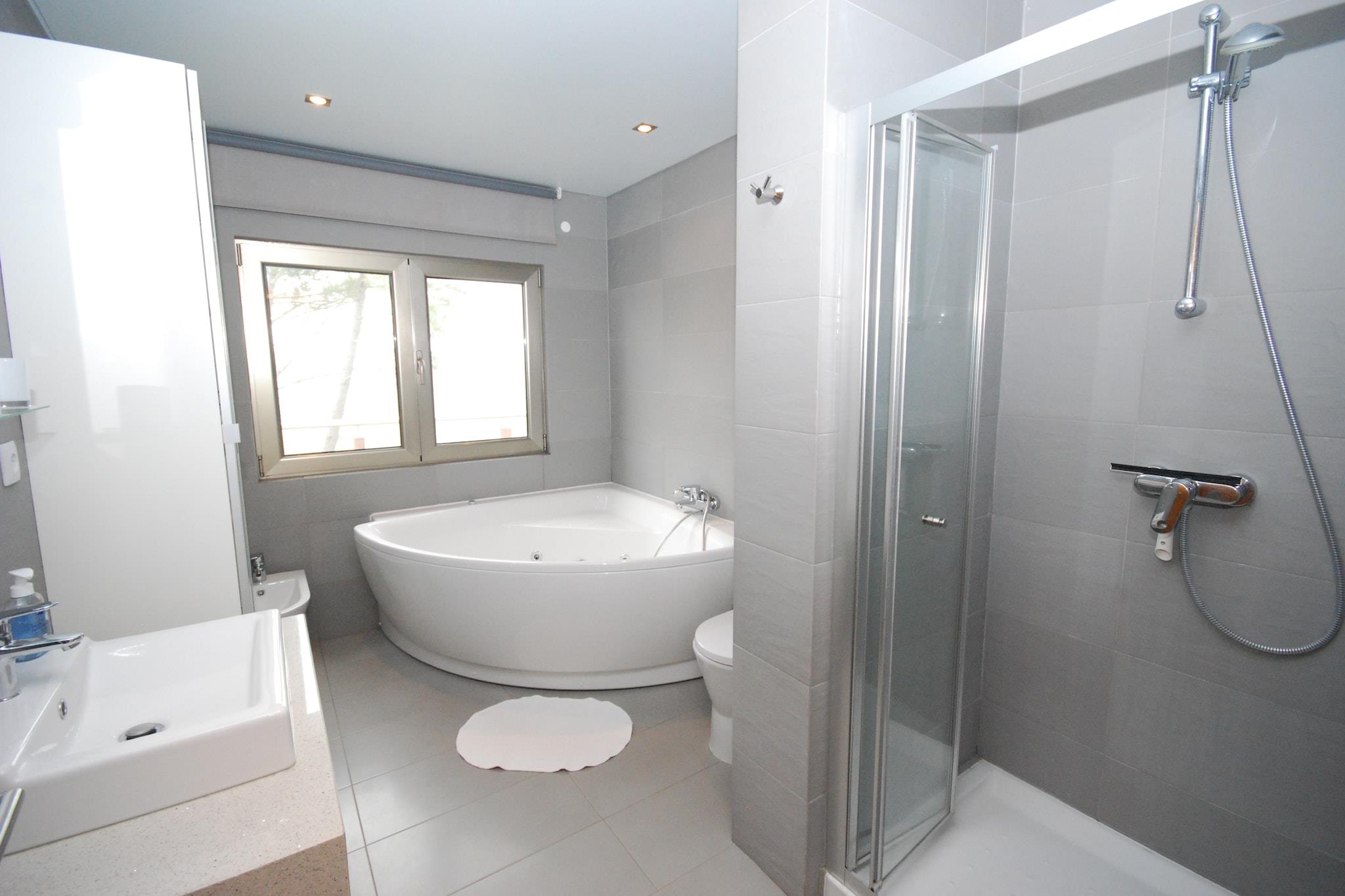 Kom og nyd dig selv i denne moderne villa med privat swimmingpool på Silver Coast i Cela! Dette smukt designede feriehus er bygget i en unik arkitektonisk stil, hvorved en del af huset ser ud til at flyde i luften. Møblerne er komfortable med jordfarver som accentfarver. De forskellige træelementer på ydersiden af huset giver huset en rustik stemning. Fra stuen / spisestuen går du lige gennem skydedørene til teakterrassen, hvor du kan slappe af i fred på salerne. Placeringen på en bakketop giver denne landlige bolig med en dejlig bred udsigt med havet i det fjerne. Du kan afkøle i swimmingpoolen, som kan opvarmes, når temperaturen falder. Du kan spise al fresco ved den indbyggede grill. På 5-10 minutter i bilen finder du de smukke strande Nazaré og São Martinho do Porto. São Martinho do Porto centrum har mange fiskerestauranter. Alcobaça med klosteret ligger 6 km væk. For dem der ønsker at tage en dagstur, Óbidos (30 min.) Og pilgrimsstedet Fatima (45 min. ) anbefales. Hovedstaden Lissabon er cirka en time væk. Bemærk venligst: Swimmingpoolen kan opvarmes mod betaling i marts til og med oktober. Dette skal anmodes om 3 dage i forvejen. Prisen er 8 EURO pr. dag.