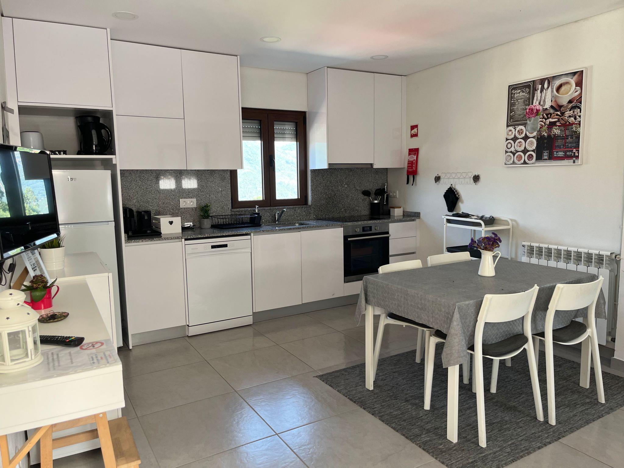 The outdoor area of this holiday flat offers direct access to the breathtaking natural landscape of northern Portugal. Just one kilometre away is the "Barragem de Caniçada" reservoir, where you can enjoy water sports and swimming. The Rio Caldo Nautical Centre, located just four kilometres away, adds to the range of outdoor leisure activities on offer. A village with all the necessary shops and unique excursion destinations such as the St. Benedict Church of S. Bento da Porta Aberta are also within easy reach.