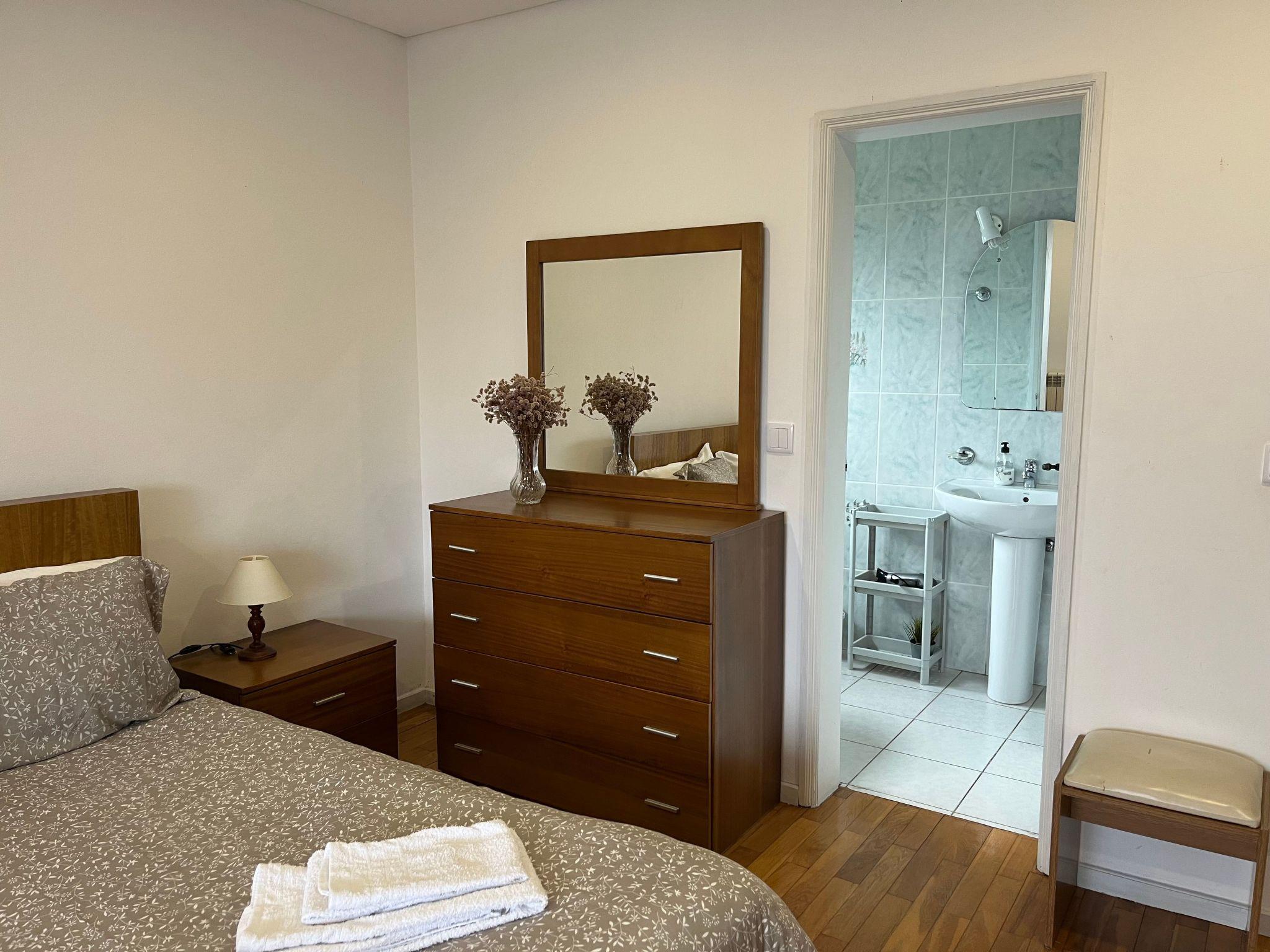 You will immediately feel at home in our spacious 4-room flat, which is equipped with every comfort. The flat offers a cosy living-dining room with a comfortable sofa bed, a fireplace, which also contributes to the central heating, and a TV for relaxing evenings. There are three inviting bedrooms with double beds, two of which have en-suite showers, and a total of three WC/showers. The fully equipped kitchen invites you to cook with a hob, oven, microwave, toaster and fridge. A washing machine, ironing board and iron are also available so that you will want for nothing.