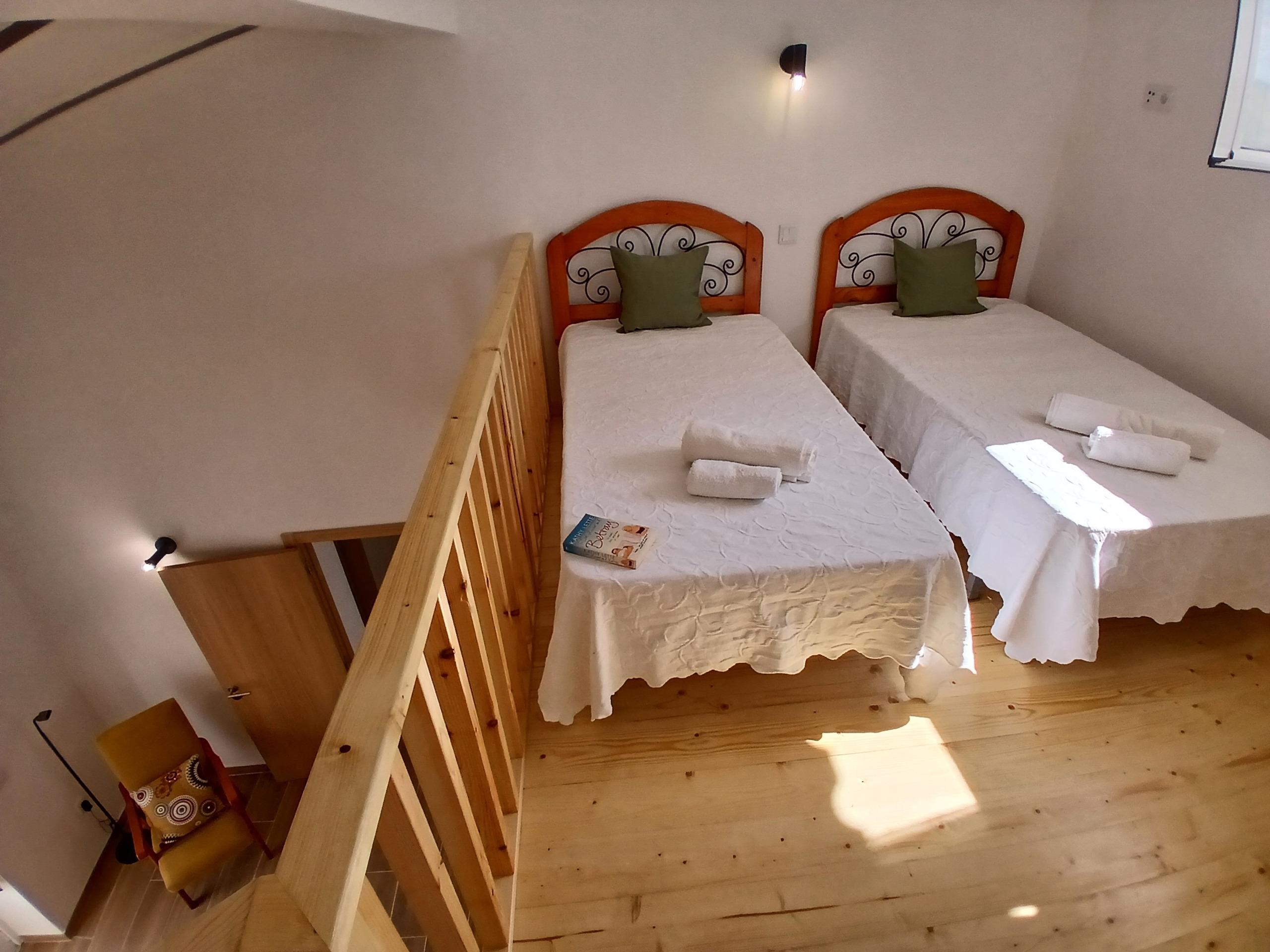 Aufteilung Haus 1 (Casihna dos Avos, 2. Etagen) Im Erdgeschoss ein Wohnraum. Küche (u.a. mit Geschirrspüler und Waschmaschine) mit Eßplatz. Schlafzimmer. Dusche/WC. 1. Etage: offene Mezzanine mit 2 Einzelbetten. Klimaanlage. Eigene Terrasse mit Mobiliar.