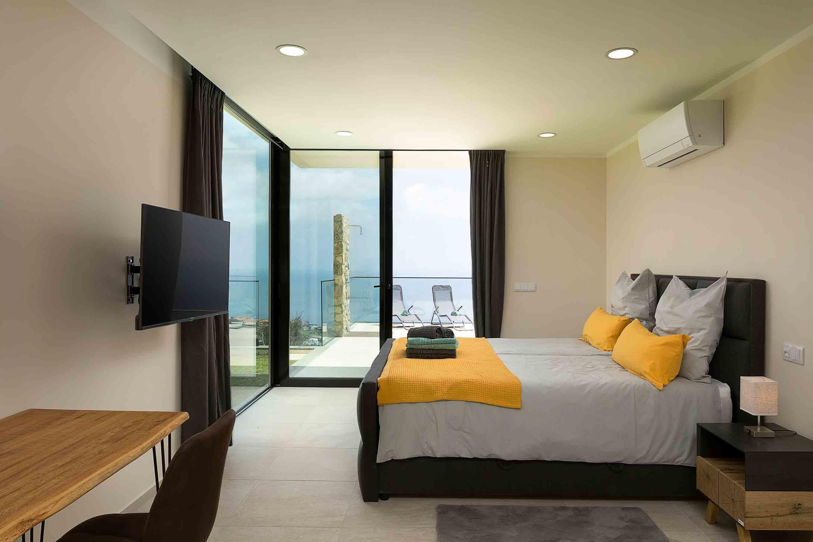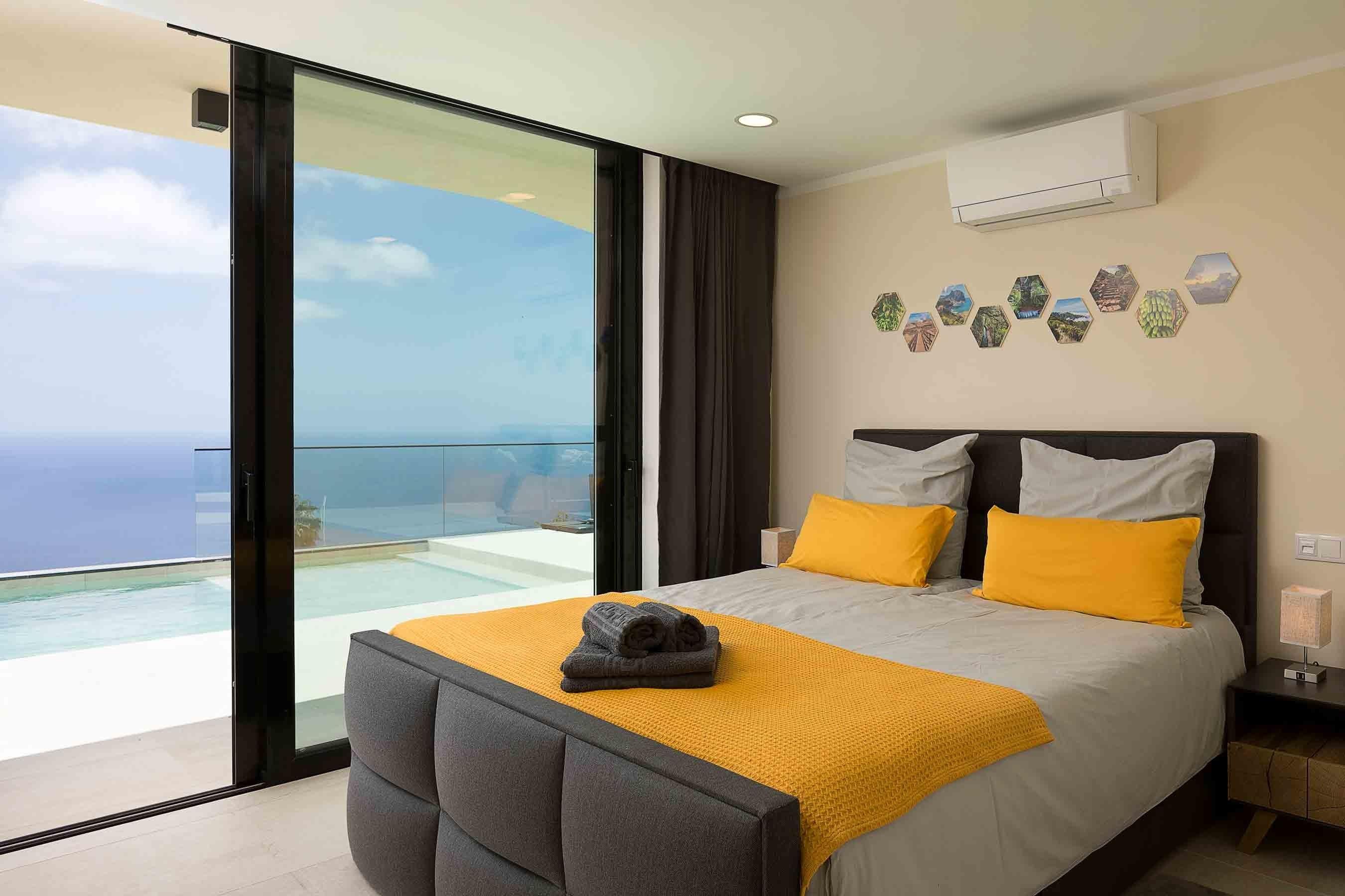 Die Villa Ohana bietet Schlafmöglichkeiten für bis zu 8 erwachsene Personen, für kleinere Kinder stehen 2 Reisebetten zur Verfügung. Im großen Schlafzimmer steht ein Boxspring-Doppelbett (1,80mx2,00m) und eine ausziehbare Schlafcouch (1,60mx2,00m). Die anderen zwei Schlafzimmer sind ebenfalls mit Boxspring-Doppelbetten ausgestattet. In einem der Zimmer kann das Doppelbett auch zu zwei Einzelbetten auseinandergezogen werden (wenn die Teenies sich etwas mehr Privatsphäre wünschen). Alle Schlafzimmer haben direkten Zugang zur Terrasse und zum Pool und genießen einen atemberaubenden Ausblick direkt vom Bett aus.