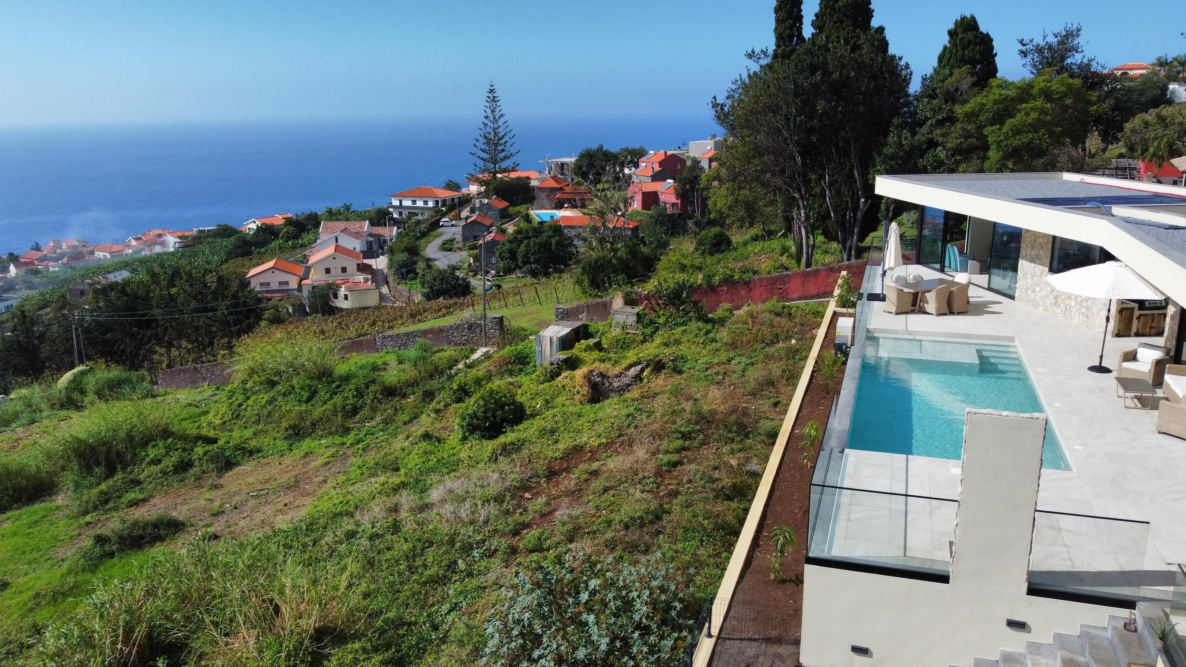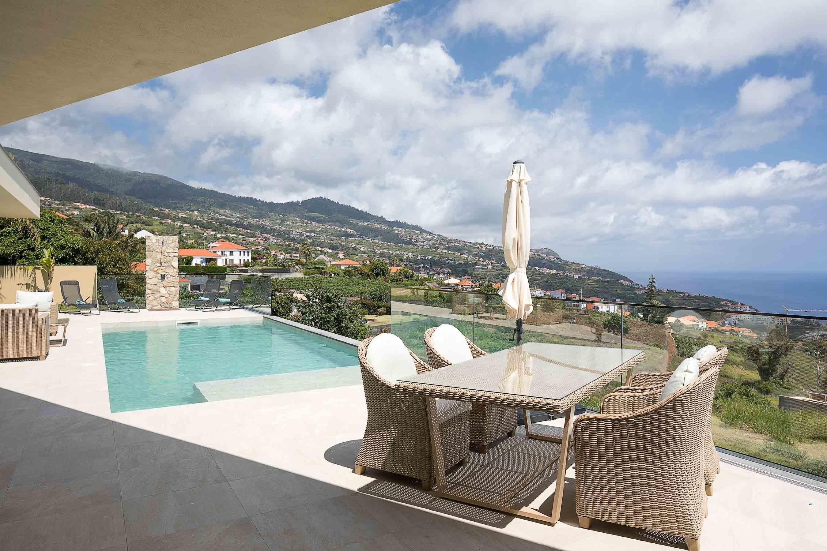 Die Villa Ohana liegt auf ca. 230 m Höhe im Zentrum des Tals von Estreito da Calheta. Dies ermöglicht Euch einen traumhaften Fernblick. Nach Südosten erstreckt sich der Bergkamm gen Calheta der vor allem in der Nacht ein traumhaftes Lichtermeer bietet. Nach Südwesten habt Ihr eine wunderbare Sicht auf den Atlantischen Ozean. Aufgrund der Ausrichtung des Grundstücks gen Süden habt Ihr den ganzen Tag Sonne auf der Terrasse. Aber es ist auch für genug Schatten gesorgt. Die Villa Ohana ist lediglich 3 Minuten von der Schnellstraße entfernt und bietet somit eine perfekte Anbindung. Hören könnt ihr auf der Terrasse jedoch lediglich das Rascheln der Eidechsen sowie die Kirchenglocke am Mittag: Es ist wirklich absolut still!