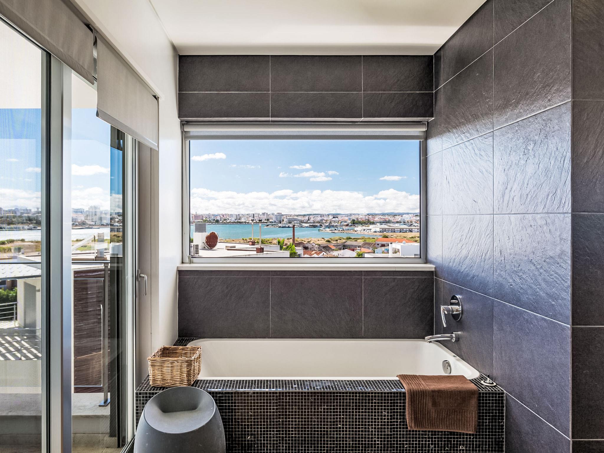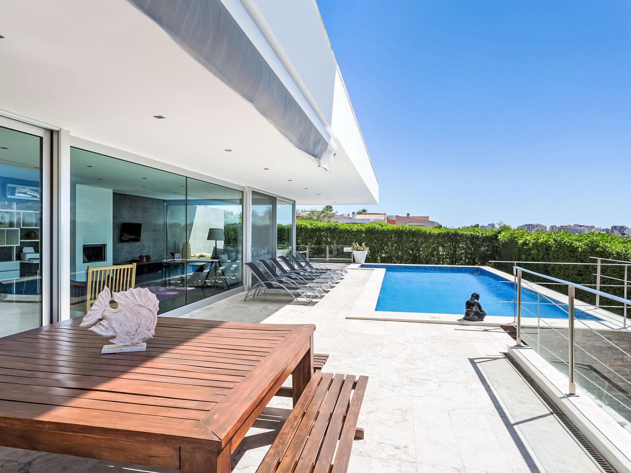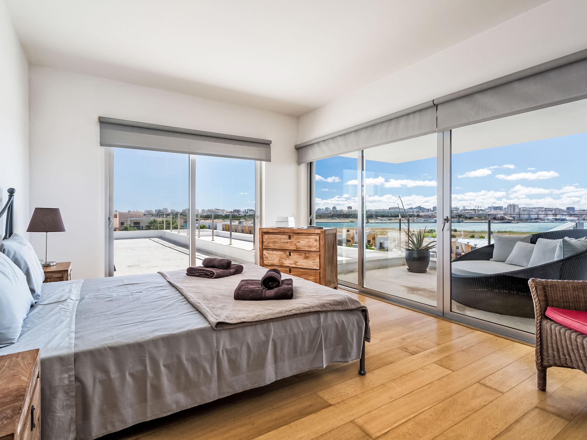 1 km from Ferragudo: Daily cleaning for 3 hours, on Wednesdays there is a pool cleaning service and on Friday afternoons there is gardening. The service from pool heating must be request two days before of the arrival. Very modern, luxurious villa "Vogue", 2 storeys. On top of a hill, residential area (villas), 3.9 km from the sea, 550 m from the lake. Private: garden, swimming pool angular, heated (4 x 12 m, depth 73 - 130 cm, seasonal availability: 01.Jan. - 31.Dec., extra). Arbour, garden furniture, barbecue. In the house: WiFi, burglar alarm system, tumble dryer, drying room. Room cleaning daily (included). Parking at the house. Supermarket 1.3 km, shopping centre 3.8 km, restaurant 350 m, bakery 1.3 km, bus stop 450 m, sandy beach "Praia dos Caneiros" 3.9 km. Sports harbour 5.8 km, golf course (18 hole) 5.5 km, surf school 5.8 km, tennis 3.8 km, minigolf 7 km, riding stable 6.9 km. Nearby attractions: Slide & Splash 7 km, Zoomarine Algarve 22.2 km, Museu de Portimão 4.2 km, Portimão 3.7 km, Lagos 23.3 km, Farol da Ponta do Altar, Ferragudo 4.2 km. Hiking paths: Monchique 27.1 km. Please note: car recommended. Suitable for families. Groups of teenagers on request only. On request: airport transfer to the holiday accommodation.