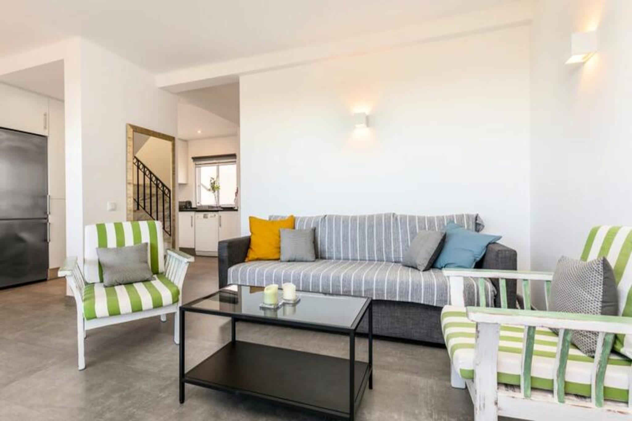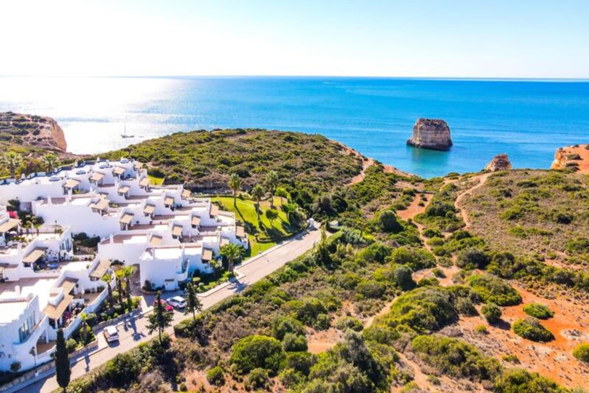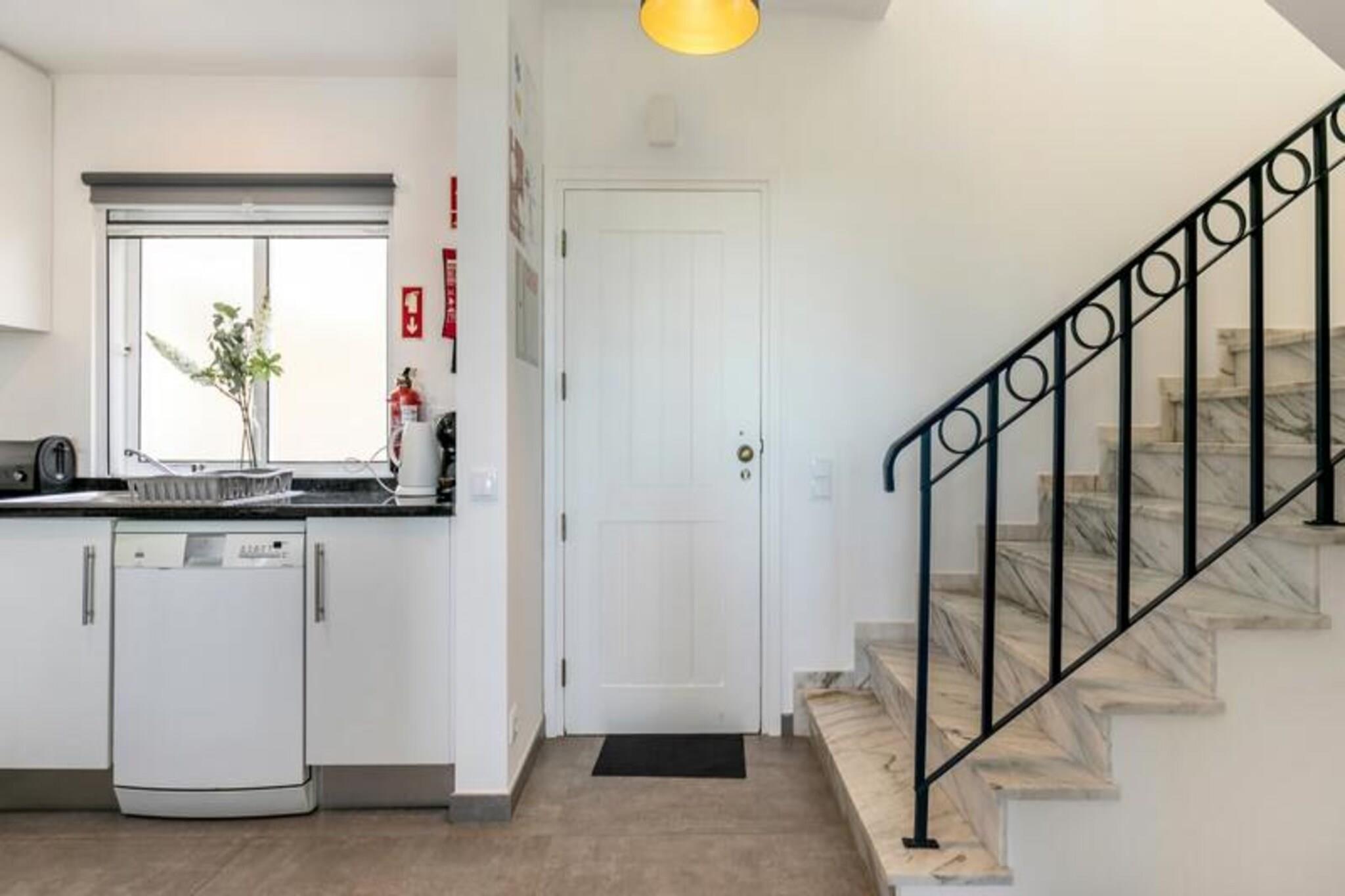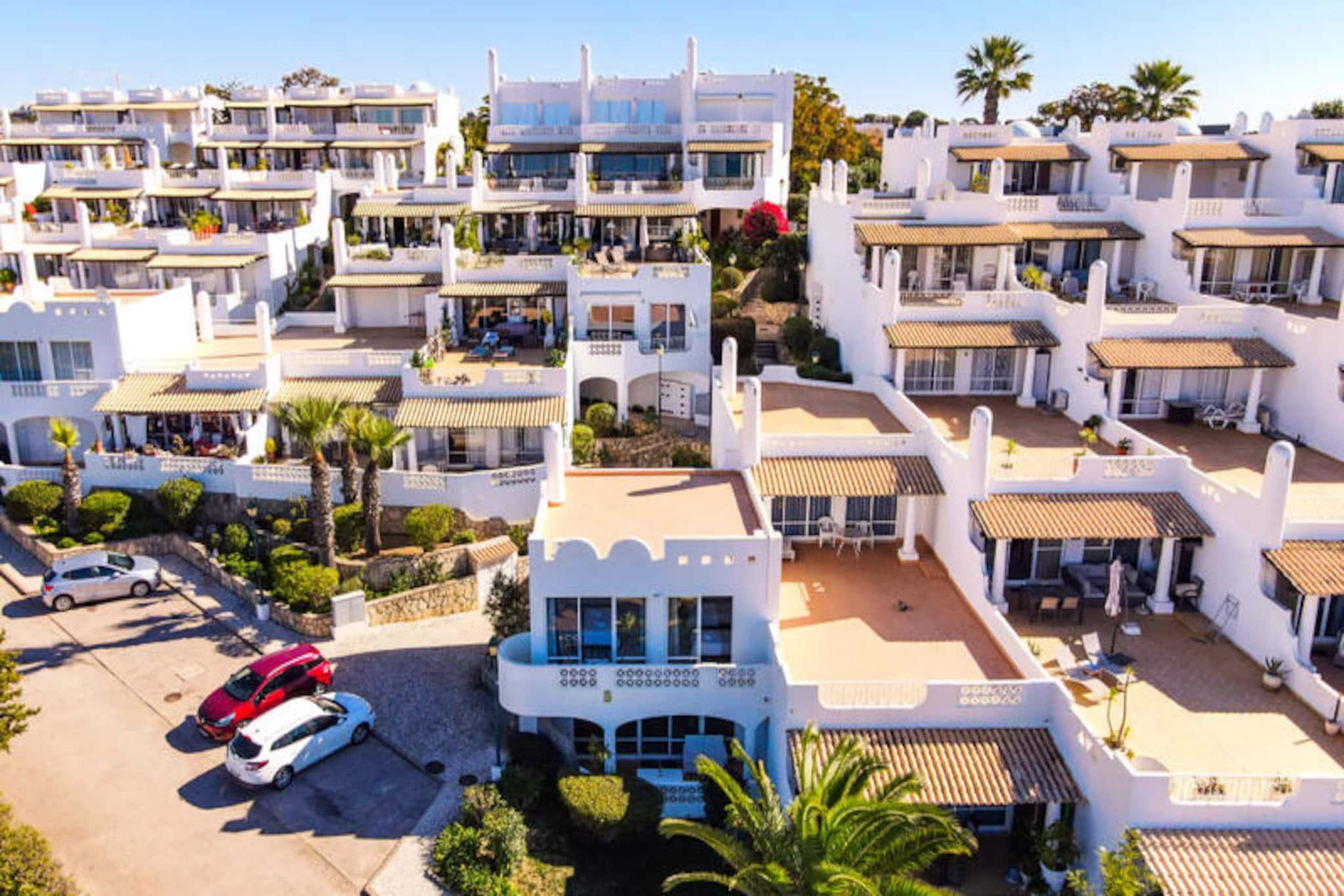 Forestil dig at vågne op til havets beroligende lyde og træde ud på din private terrasse for at nyde den friske kystbrise. Dette smukt designede rækkehus, beliggende i en rolig og sikker ejerlejlighed nær Ferragudo, tilbyder den perfekte blanding af moderne komfort og naturlig skønhed. Omgivet af frodige haver og kun en kort gåtur fra den gyldne sandstrand ved Praia dos Caneiros, er denne ejendom et sandt paradis for afslapning og udforskning. Træd indenfor og bliv mødt af et lyst og indbydende opholdsrum. Stueetagen har en rummelig stue, der åbner ud til en fantastisk terrasse med grill, perfekt til udendørs spisning, mens du nyder udsigten over haverne og det nærliggende naturreservat. Det fuldt udstyrede moderne køkken, komplet med helt nye apparater, sikrer en problemfri madlavningsoplevelse. Ovenpå har to elegante soveværelser med indbyggede skabe hver deres private terrasse, der tilbyder uhindret og rolig udsigt. Huset har også to stilfulde badeværelser, det ene med bruseniche, og et separat toilet for ekstra bekvemmelighed. Ud over ejendommen er beliggenheden uovertruffen. En kort fem minutters gåtur bringer dig til den fantastiske Praia dos Caneiros, hvor du kan sole dig eller udforske den dramatiske kystlinje. Den charmerende landsby Ferragudo med dens hyggelige gader og dejlige restauranter ligger kun to minutters kørsel væk. For dem, der søger mere eventyr, er den travle by Portimão inden for rækkevidde og tilbyder shopping, restauranter og kulturelle oplevelser. Uanset om du leder efter et fredeligt tilflugtssted eller en base for at udforske Algarves skatte, er dette hus det ideelle valg. Med sin smagfulde indretning, moderne faciliteter og førsteklasses beliggenhed lover det en uforglemmelig ferieoplevelse. Book dit ophold i dag og skab varige minder i dette kystparadis.