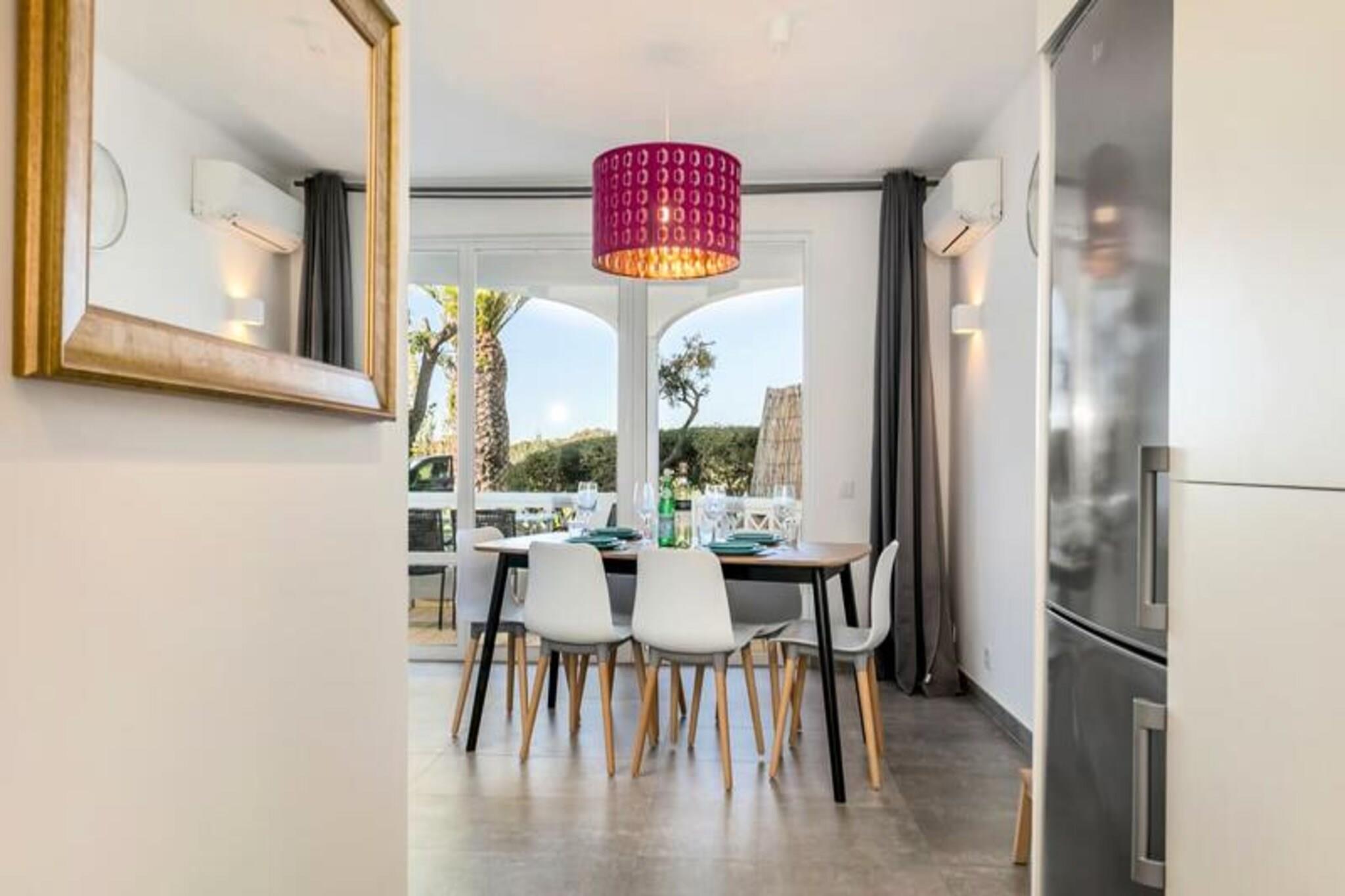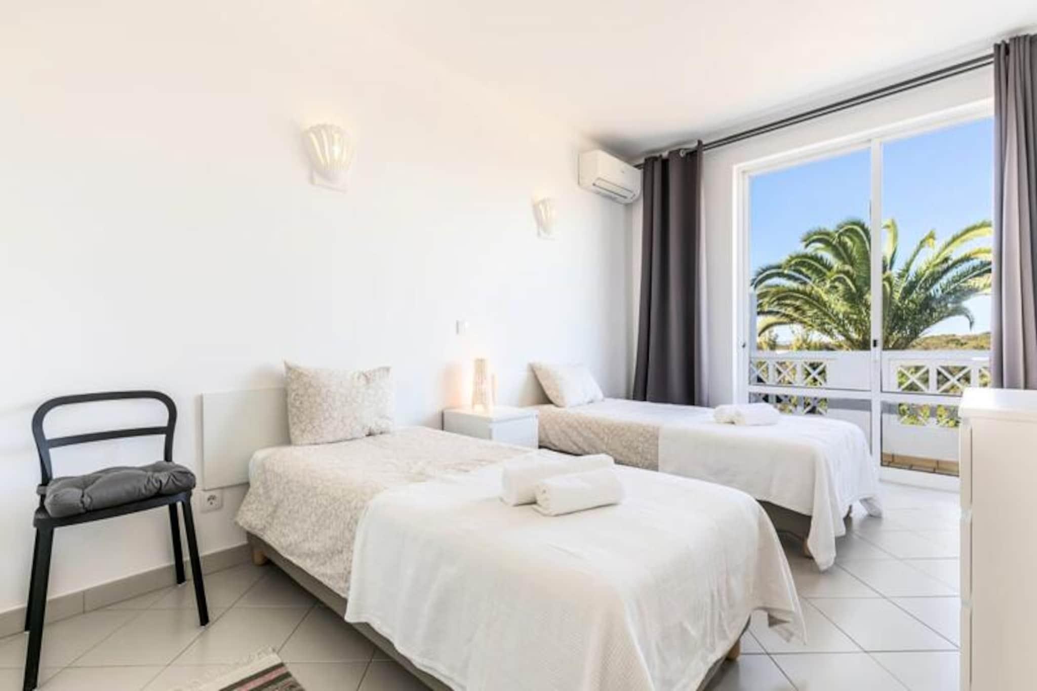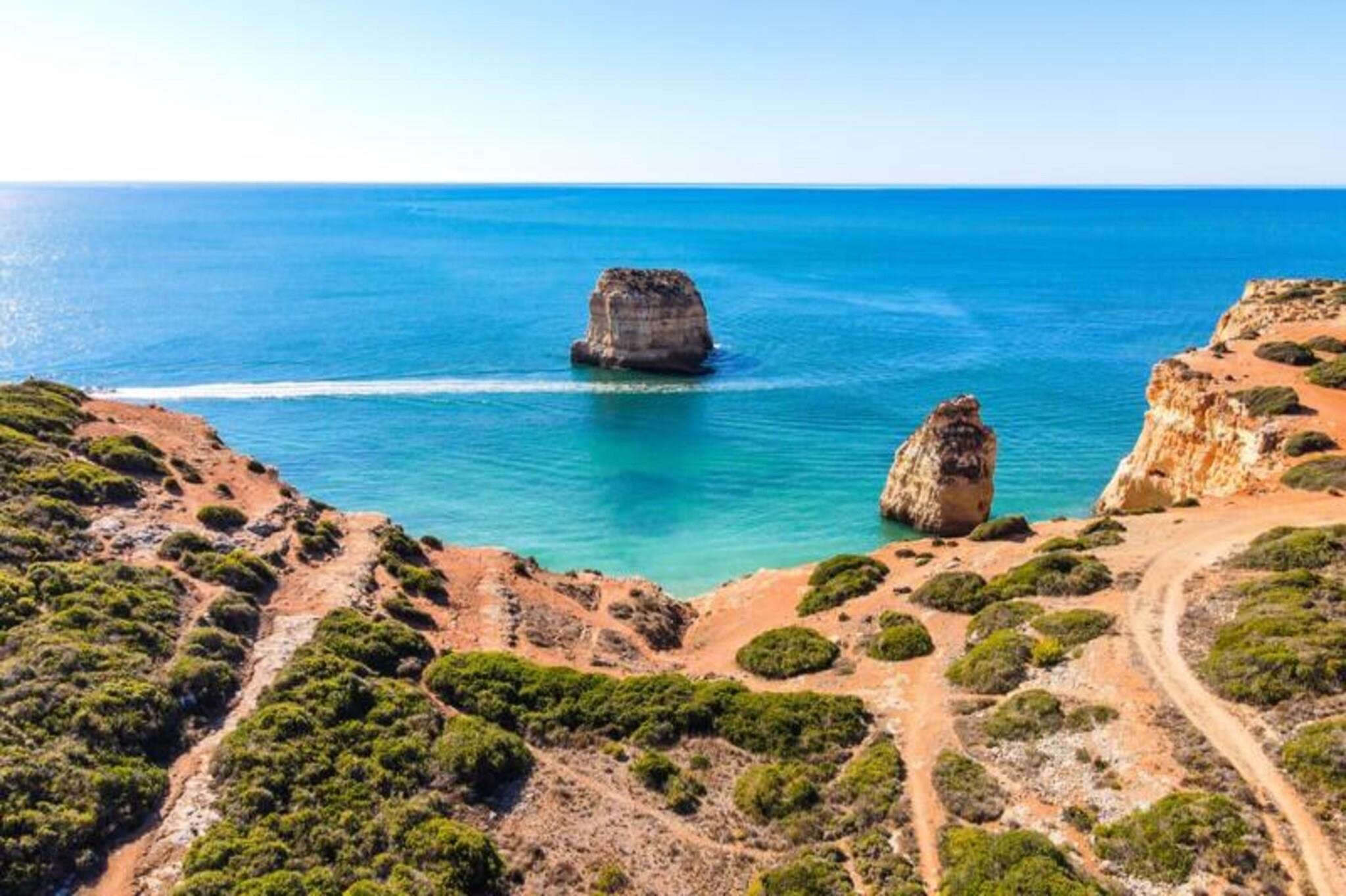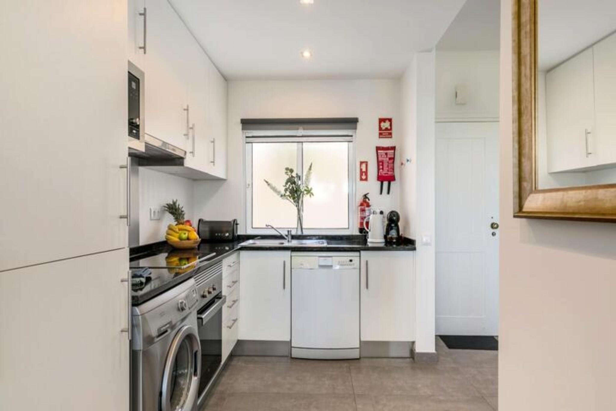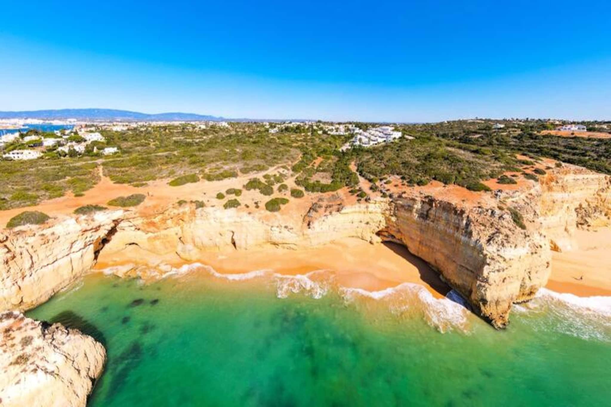 Forestil dig at vågne op til havets beroligende lyde og træde ud på din private terrasse for at nyde den friske kystbrise. Dette smukt designede rækkehus, beliggende i en rolig og sikker ejerlejlighed nær Ferragudo, tilbyder den perfekte blanding af moderne komfort og naturlig skønhed. Omgivet af frodige haver og kun en kort gåtur fra den gyldne sandstrand ved Praia dos Caneiros, er denne ejendom et sandt paradis for afslapning og udforskning. Træd indenfor og bliv mødt af et lyst og indbydende opholdsrum. Stueetagen har en rummelig stue, der åbner ud til en fantastisk terrasse med grill, perfekt til udendørs spisning, mens du nyder udsigten over haverne og det nærliggende naturreservat. Det fuldt udstyrede moderne køkken, komplet med helt nye apparater, sikrer en problemfri madlavningsoplevelse. Ovenpå har to elegante soveværelser med indbyggede skabe hver deres private terrasse, der tilbyder uhindret og rolig udsigt. Huset har også to stilfulde badeværelser, det ene med bruseniche, og et separat toilet for ekstra bekvemmelighed. Ud over ejendommen er beliggenheden uovertruffen. En kort fem minutters gåtur bringer dig til den fantastiske Praia dos Caneiros, hvor du kan sole dig eller udforske den dramatiske kystlinje. Den charmerende landsby Ferragudo med dens hyggelige gader og dejlige restauranter ligger kun to minutters kørsel væk. For dem, der søger mere eventyr, er den travle by Portimão inden for rækkevidde og tilbyder shopping, restauranter og kulturelle oplevelser. Uanset om du leder efter et fredeligt tilflugtssted eller en base for at udforske Algarves skatte, er dette hus det ideelle valg. Med sin smagfulde indretning, moderne faciliteter og førsteklasses beliggenhed lover det en uforglemmelig ferieoplevelse. Book dit ophold i dag og skab varige minder i dette kystparadis.
