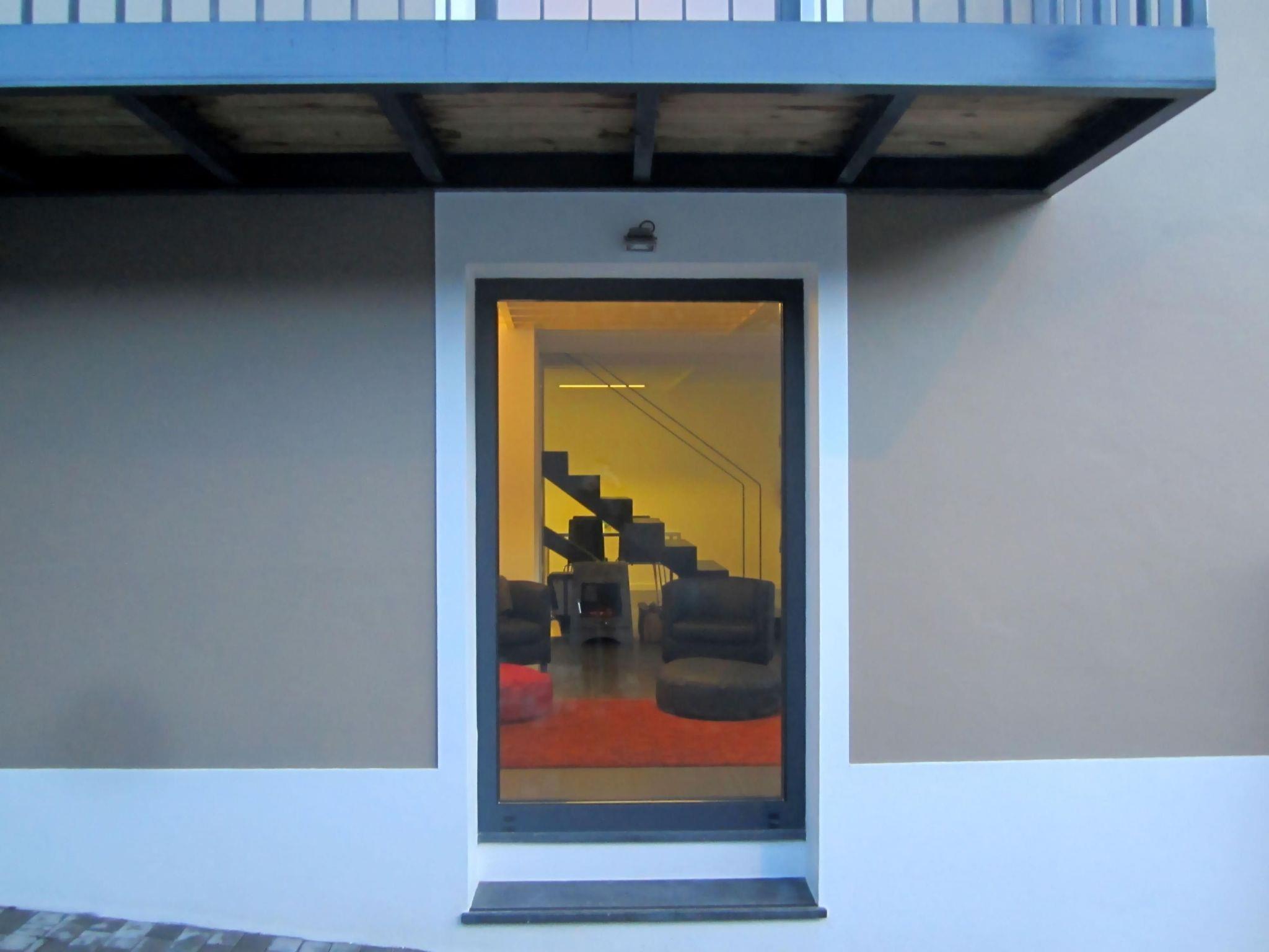 The large sliding glass doors in the living room open up to the private sun terrace, furnished with outdoor furniture, sun loungers, a sun shade and a barbecue. Secure car parking is available just in front of the house.