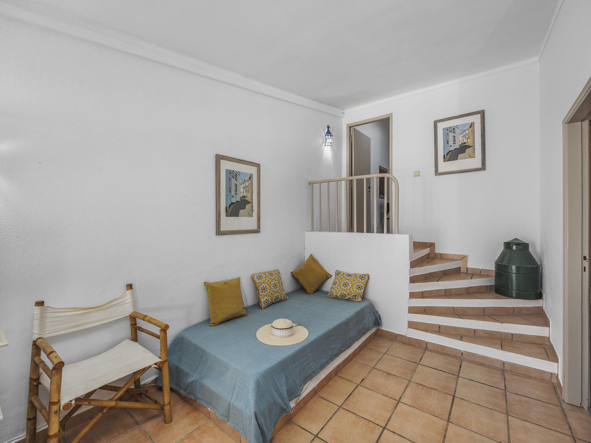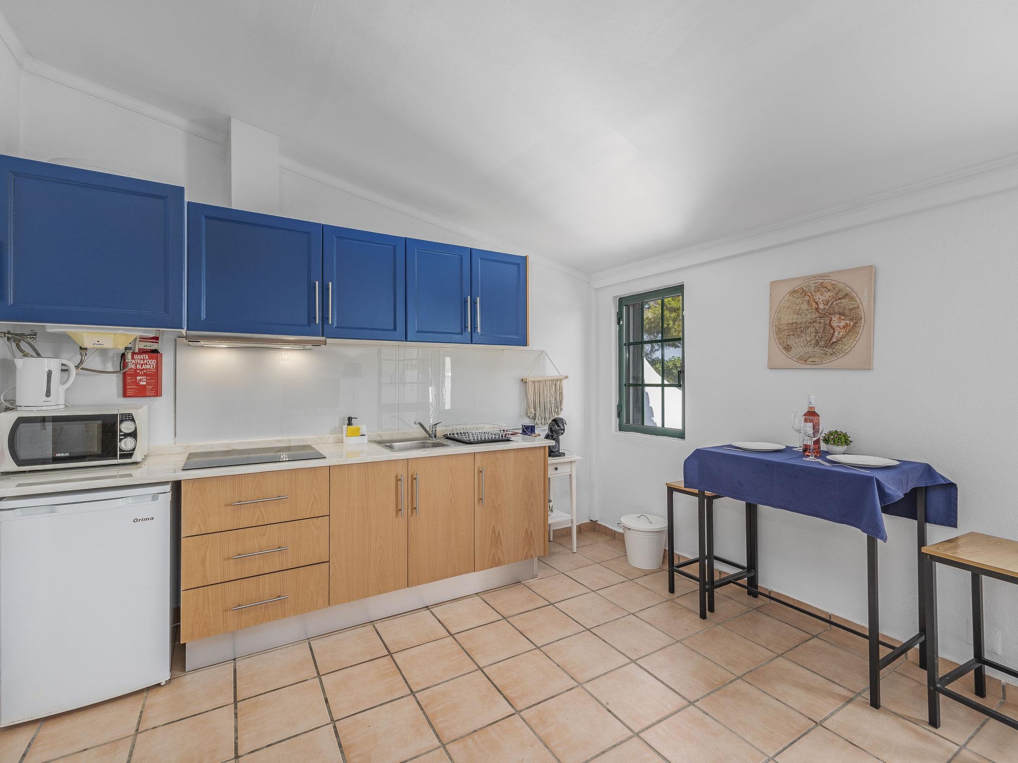 "Jardim do Sul", 2-room bungalow 35 m2. Partly renovated in 2025, tasteful furnishings: living/sleeping room with 1 sofabed (98 cm, length 185 cm), dining table and satellite TV. 1 room with 2 beds, electric heating and air conditioning. Open kitchen (4 ceramic glass hob hotplates, toaster, microwave, electric coffee machine). Hip bath/WC. Terrace. Terrace furniture, deck chairs (2). Facilities: safe, iron, mosquito net, children's high chair, baby cot for up to 2 year olds, hair dryer. Internet (WiFi, free). Please note: non-smoking house. Smoke alarm, fire extinguisher. 2049/AL