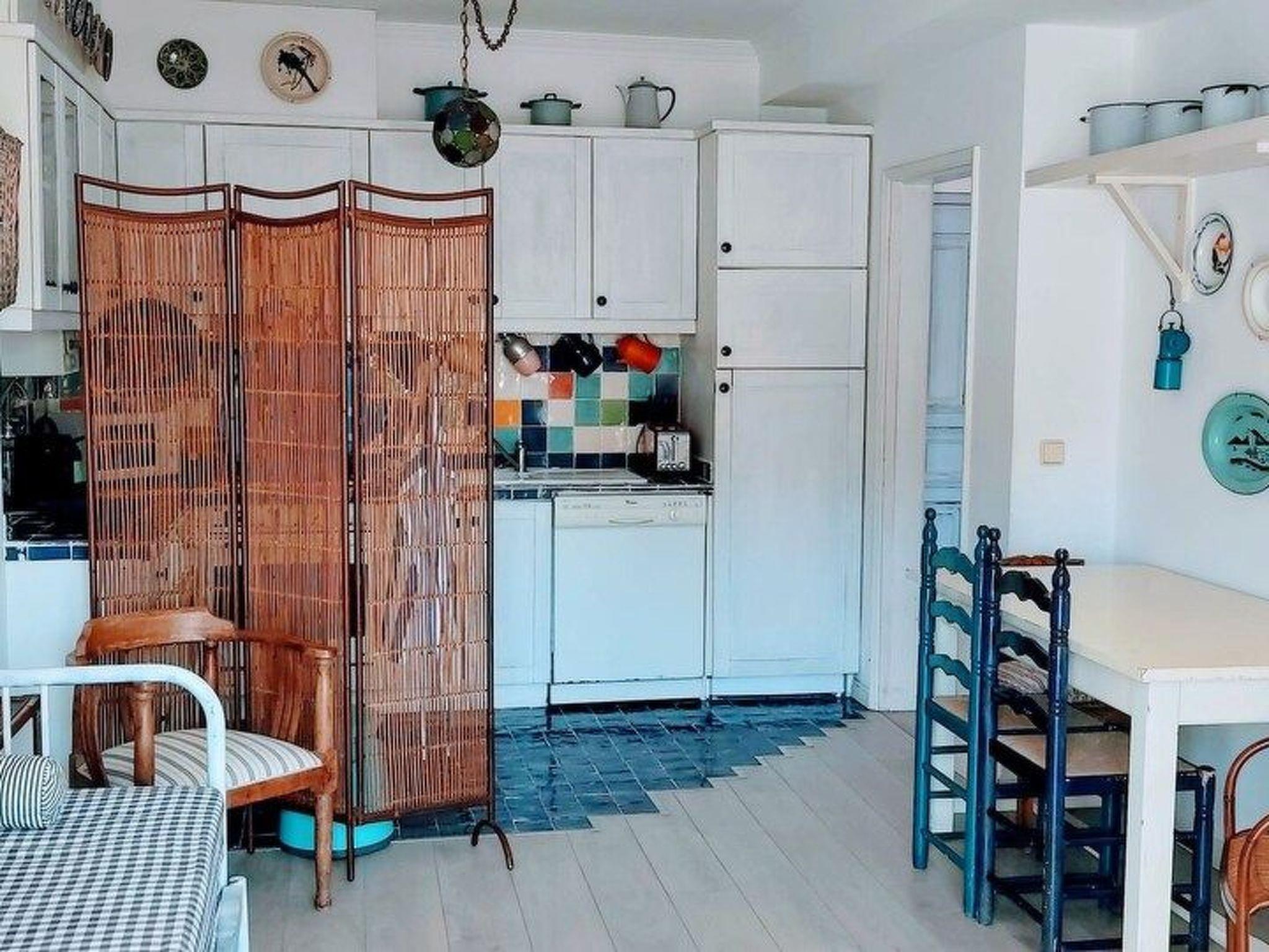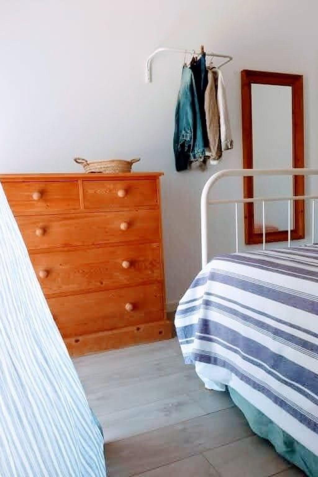 Inside, guests will discover a thoughtfully laid-out space where natural light floods through each corner, creating a warm and inviting atmosphere. The heart of the apartment is its kitchenette, equipped with a gas cooker, coffee machine, dishwasher, and electric kettle, making meal preparation a breeze. Meals can then be savored in the cozy living area, offering a seamless blend of functionality and relaxation. The essence of the decor pays homage to the spirit of old fishermen's huts, enhanced with the vibrant colors of Morocco and sprinkled with vintage details. Authentic Portuguese tiles capture this unique aesthetic, imbuing the space with character and charm.