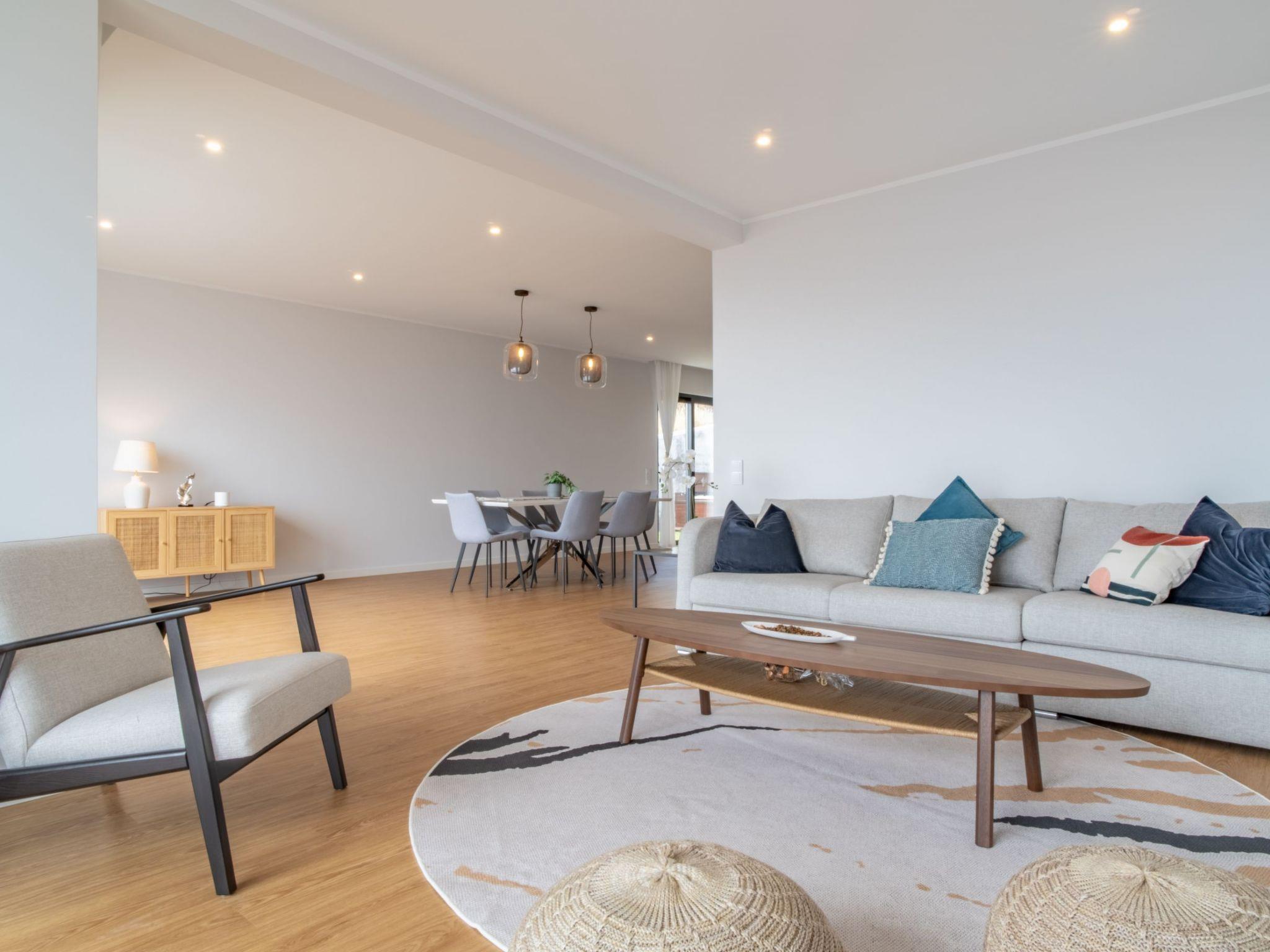 Inside, the villa boasts an inviting interior equipped with all the necessities to ensure a comfortable stay. The home features three well-appointed bedrooms, each designed to offer a restful night's sleep. With three bathrooms available, guests can choose from a refreshing shower or a relaxing soak in the bath tub with a shower, providing both convenience and luxury. Additionally, the villa comes equipped with a washing machine and clothes dryer for sole use, ensuring all your laundry needs are taken care of during your stay. The kitchen is fully equipped with a dishwasher, coffee machine, and electric kettle, making meal preparation a breeze.