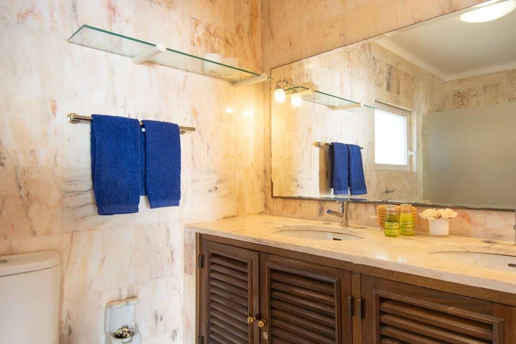 Velkommen til vores charmerende villa i maurisk stil i Carvoeiro. Denne fortryllende ejendom tilbyder et uforglemmeligt ophold i Algarve. Villaen har tre rummelige soveværelser, alle med eget badeværelse. Den komfortable opholdsstue er på 75 kvadratmeter, og det fuldt udstyrede køkken med ekstra opbevaringsplads lader intet tilbage at ønske. I alt tilbyder villaen over 300 kvadratmeter boligareal. Nyd den store, private swimmingpool (12 x 6 meter), som kan opvarmes mod et ekstra gebyr. Slap af i den tropiske have, der dækker cirka 2.300 kvadratmeter. En privat petanquebane og en carport er også tilgængelige. Villaen ligger i et roligt område for enden af en blind vej, hvilket sikrer fuldstændig privatliv.