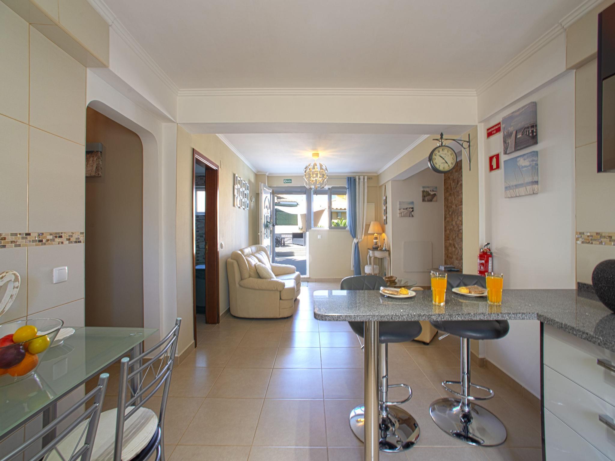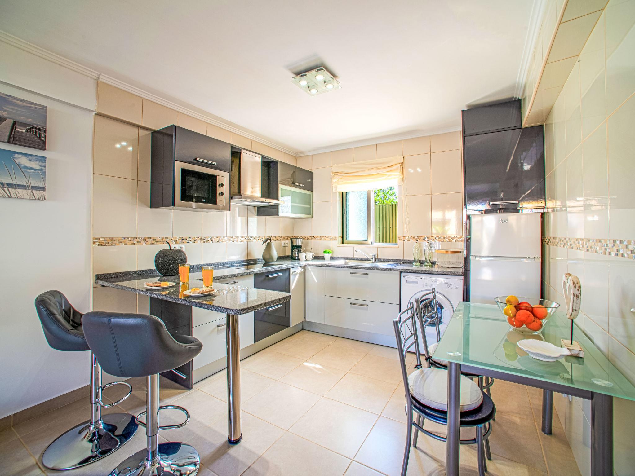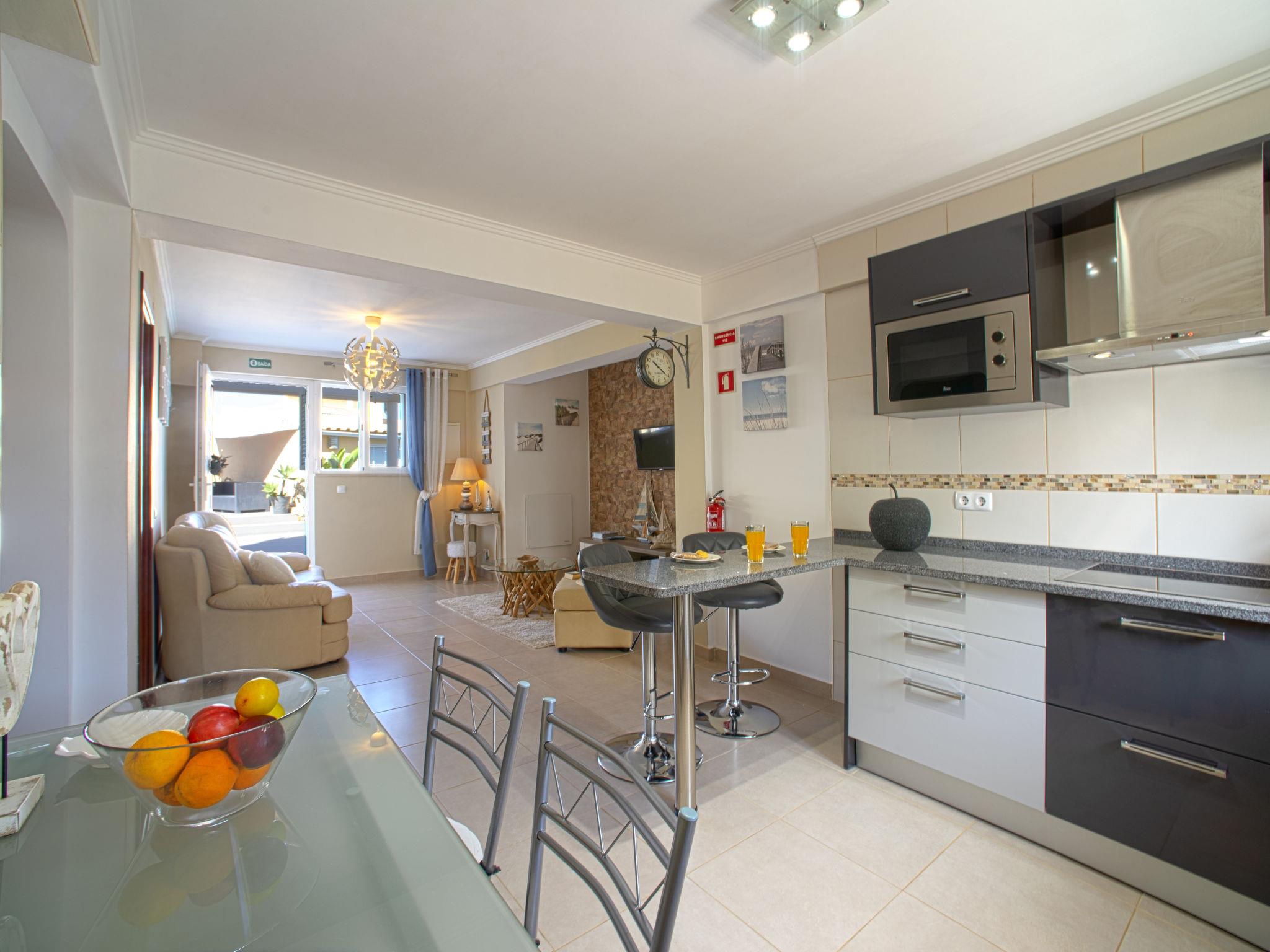 "Bela Vista", 2-room apartment 45 m2, on the ground floor. Bright, cosy furnishings: living room with satellite TV. Exit to the terrace. 1 room with 2 beds (90 cm, length 200 cm). Open kitchen (4 ceramic glass hob hotplates, toaster, kettle, microwave, freezer, electric coffee machine) with dining nook. Shower/WC, double hand-basin. Electric heating. Terrace. Terrace furniture, deck chairs (4). View of the mountains. Facilities: washing machine, iron, hair dryer. Internet (WiFi, free). Please note: non-smokers only. Private entrance, fire extinguisher. 87670/AL