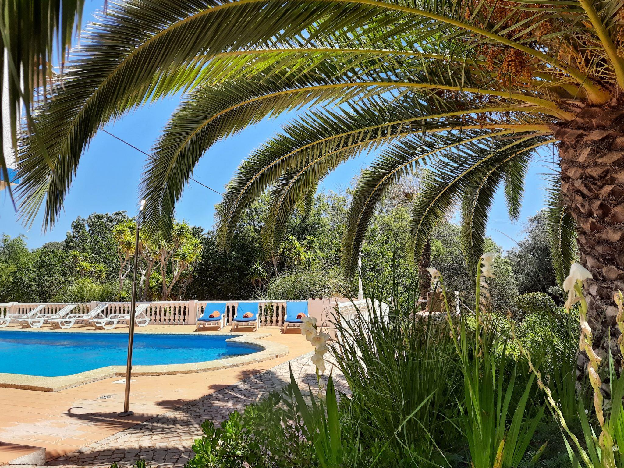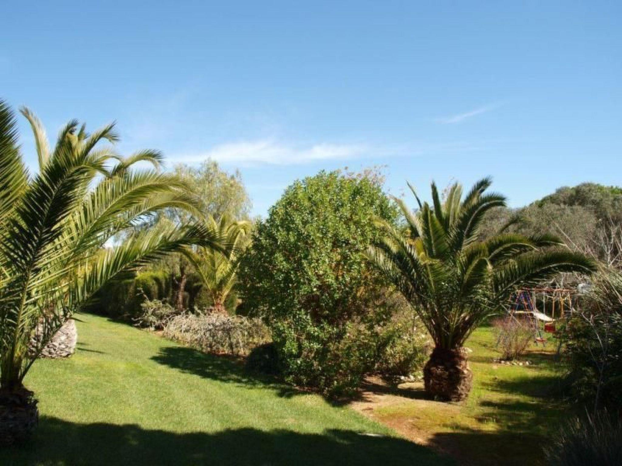 The outdoor area of the house offers numerous opportunities for relaxation and leisure activities. You can experience refreshing moments in the communal pool or take a stroll in the spacious Mediterranean garden, which extends over 5000m² and impresses with its variety of exotic plants. For younger guests, there is a playground with swings and a trampoline, and the pool area is equipped with a pool lift for people with reduced mobility, making the property particularly welcoming for all visitors.