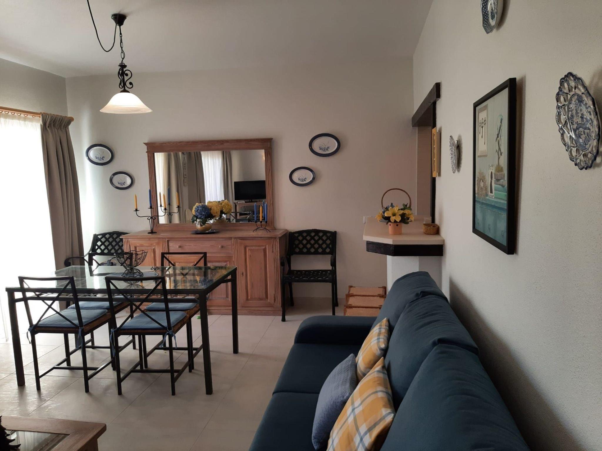 The apartment has a double bedroom and another with two beds and a living room with a nice balcony where you can eat as there is a dining table. It sleeps five people because in the living room can sleep one person. It is fully equipped with bed linen, towels and dishes. It has ceramic hob, microwave, refrigerator, coffee machine, shredder, hair dryer, dining chair and crib for baby, etc. It also has digital TV with several foreign channels as it is connected to ASTRA and has unlimited internet.