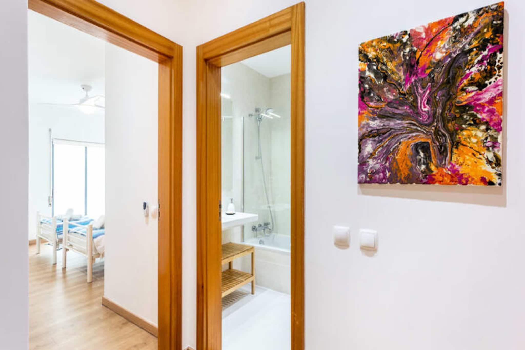 Væk dine sanser i denne lyse og indbydende lejlighed, der er perfekt beliggende lige bag Lagos Marina og inden for gåafstand af Meia Praias gyldne sandstrande. Uanset om du søger et roligt tilbagetog eller en eventyrlig ferie, tilbyder denne ejendom den ideelle blanding af komfort og bekvemmelighed i en af Portugals mest livlige kystbyer. Med sin rummelige indretning og smagfulde indretning vil du føle dig hjemme fra det øjeblik, du træder ind. Lejligheden har to velindrettede soveværelser og to moderne badeværelser, herunder et en suite for ekstra privatliv. Det fuldt udstyrede køkken indbyder til at tilberede lækre måltider, mens den luftige stue giver et hyggeligt rum til at slappe af og koble af. Træd ud på den store private terrasse for at nyde Algarves solskin eller en stille aften under stjernerne. Moderne loftsventilatorer holder rummet køligt på varme dage, og transportable varmeapparater sikrer komfort på køligere aftener. Med Wi-Fi, tv og alt sengelinned og håndklæder medfølgende er der tænkt på alle detaljer for at gøre dit ophold så nemt som muligt. Beliggende på en bakke lige bag den travle Lagos Marina finder du alt, hvad du har brug for, inden for rækkevidde. Marinaområdet byder på en række restauranter, barer med live musik og et stort supermarked. En kort 15 minutters gåtur bringer dig til det historiske centrum, hvor brostensbelagte gader fører til charmerende butikker, livlige markeder og enestående spisesteder. For naturelskere er Algarve-kystens betagende klipper og krystalklare vand bedst at udforske med båd, kajak eller paddleboard. Uanset om du er her for at slappe af på stranden, udforske Lagos' rige historie eller kaste dig ud i spændende vandsportsaktiviteter, er denne lejlighed din indgang til uforglemmelige minder. Med Faro Lufthavn kun en time væk og gode transportforbindelser venter din drømmeferie i dette fortryllende hjørne af Portugal.