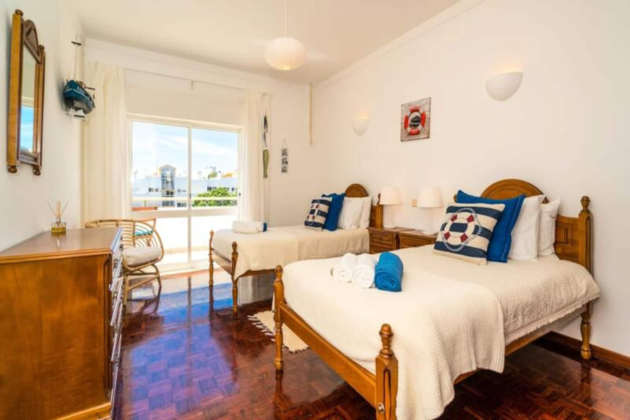 Vågn op til den beroligende lyd af bølger og den endeløse blå horisont fra denne indbydende lejlighed med to soveværelser i Lagos, Portugal. Denne ejendom er perfekt beliggende på tredje sal og tilbyder en betagende havudsigt fra sine private balkoner, hvilket gør den til et ideelt tilflugtssted for dem, der søger ro og naturlig skønhed. Kun en kort gåtur på 10 minutter fører dig til den historiske gamle bydel i Lagos, hvor brostensbelagte gader, charmerende caféer og århundreder gamle bymure venter på at blive udforsket. For strandelskere ligger to af Algarves mest fantastiske strande, Praia Dona Ana og Porto de Mos, inden for 20 minutters gang. Lejligheden er omhyggeligt designet til at kombinere komfort og funktionalitet. Soveværelset har en luksuriøs dobbeltseng og en privat balkon, hvor du kan slappe af med udsigt over Meia Praia-stranden. Det andet soveværelse med to enkeltsenge åbner ud til en større balkon, perfekt til at nyde den friske havbrise. Den moderne opholds- og spisestue, der for nylig er renoveret, er badet i naturligt lys og fører til endnu en balkon med en fantastisk havudsigt. Et fuldt udstyret køkken, Wi-Fi, tv og sengetøj og håndklæder sikrer et problemfrit ophold. Træd udenfor, og du finder lokale caféer, restauranter og et bageri lige i nærheden, der tilbyder en smagsprøve på traditionel portugisisk mad. Et lille supermarked ligger også inden for gåafstand for ekstra bekvemmelighed. For de eventyrlystne tilbyder Algarve et væld af aktiviteter, lige fra vandreture langs dramatiske klipper til at udforske vandlande, historiske vartegn og golfbaner i verdensklasse. Surfentusiaster vil sætte pris på den nærliggende vestkyst, der er kendt for sine fremragende bølger. Uanset om du er her for at slappe af ved havet, fordybe dig i lokal kultur eller begive dig ud på udendørs eventyr, er denne lejlighed din port til en uforglemmelig Algarve-oplevelse. Lad Lagos' charme og komforten i denne kystparadis skabe minder for livet.