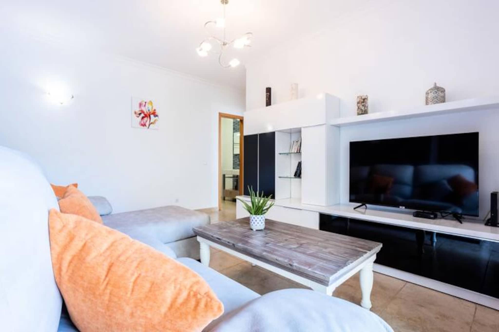I hjertet af Algarve, hvor gyldne strande møder historisk charme, tilbyder denne dejlige lejlighed med to soveværelser det perfekte tilflugtssted til din næste ferie i Lagos. Med sin førsteklasses beliggenhed lige uden for det travle bycentrum, vil du nyde roen i et boligområde, samtidig med at du er få skridt fra pulserende restauranter, livlige markeder og den fantastiske marina. Uanset om du søger afslapning eller eventyr, er denne lejlighed din port til det bedste af Lagos. Træd indenfor og oplev et rummeligt og gennemtænkt interiør, alt sammen på ét plan. Lejligheden har to komfortable soveværelser, et med en dobbeltseng og det andet med to enkeltsenge, hvilket gør den ideel til familier eller små grupper. Et fuldt udstyret køkken inviterer dig til at tilberede lækre måltider, mens den store stue, komplet med en sovesofa, tilbyder et hyggeligt sted at slappe af. Balkonen tilbyder en smuk udsigt, perfekt til at nyde din morgenkaffe eller et aftenglas vin. Med to badeværelser - et med badekar og det andet med bruser - har du al den bekvemmelighed, du har brug for. Gæsterne har også adgang til fælles indendørs og udendørs pools, et fitnesscenter og moderne faciliteter som Wi-Fi og tv. Denne lejlighed ligger i gåafstand fra tre store supermarkeder, stranden og busstationen og er perfekt placeret til at udforske Lagos. Tag en slentretur gennem det historiske centrum, hvor brostensbelagte gader fører til charmerende butikker, barer og restauranter. Gå ikke glip af de betagende klipper og skjulte grotter – de opleves bedst på en båd-, kajak- eller paddleboardtur. For dem, der ønsker at udforske området længere, ligger Faro Lufthavn kun en times kørsel væk, og Lagos' tog- og busstationer forbinder dig med andre portugisiske perler. Uanset om du er her for at nyde solen, udforske den rige historie eller nyde det lokale køkken, tilbyder denne lejlighed den perfekte blanding af komfort, bekvemmelighed og Algarve-charme. Book dit ophold i dag og skab uforglemmelige minder i Lagos!