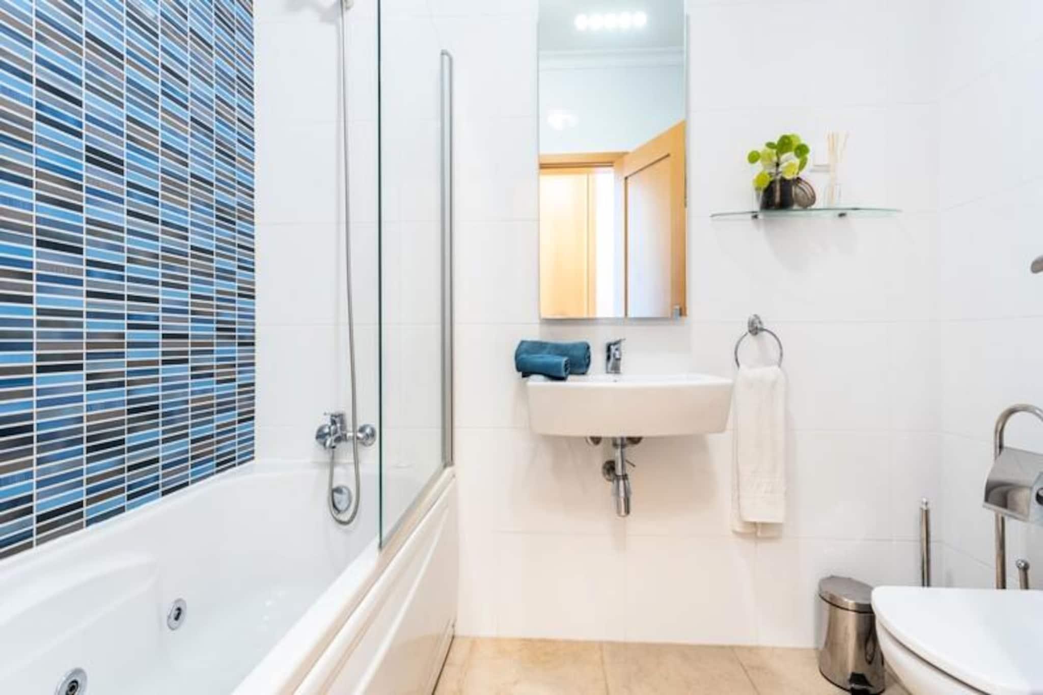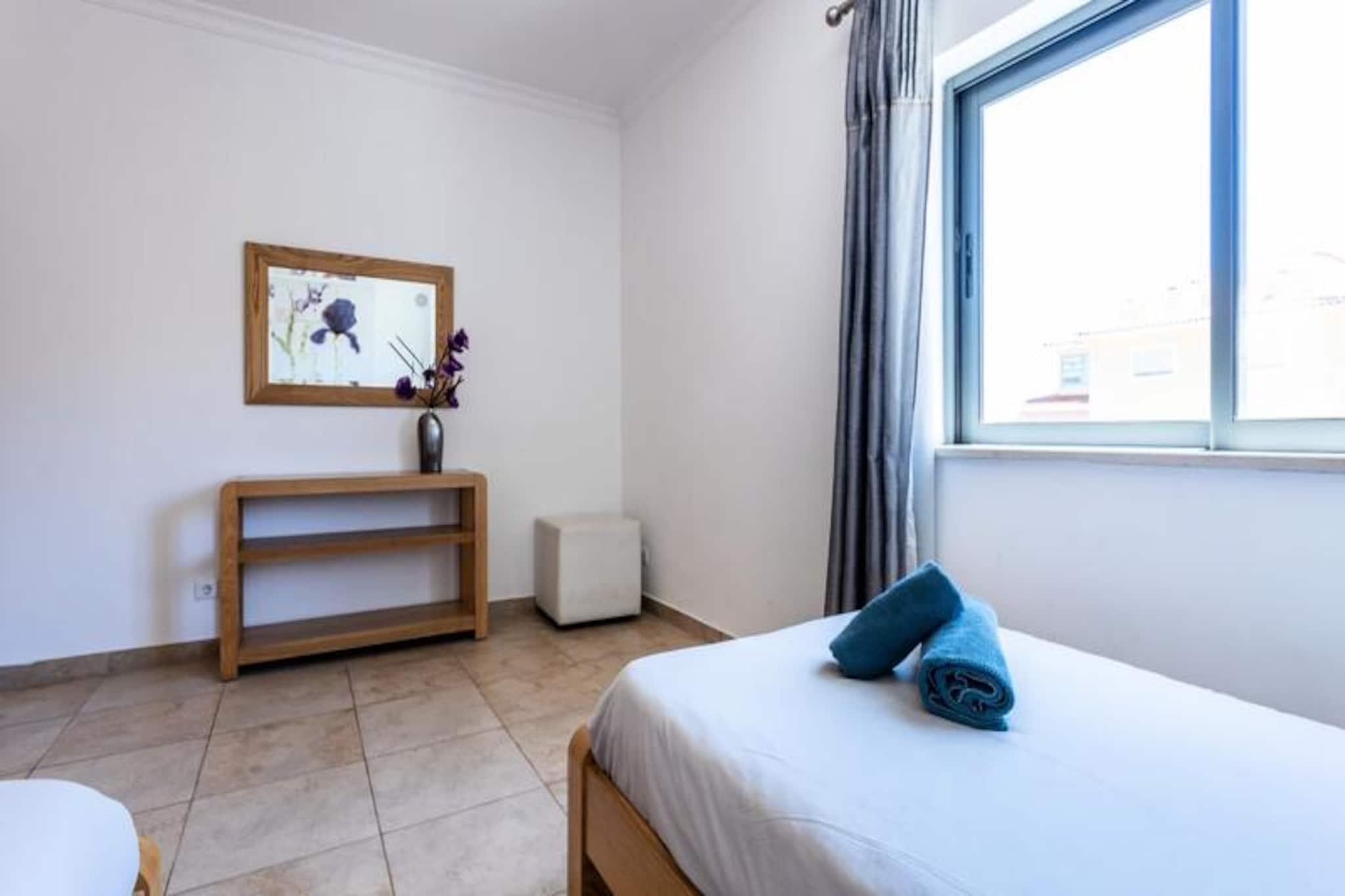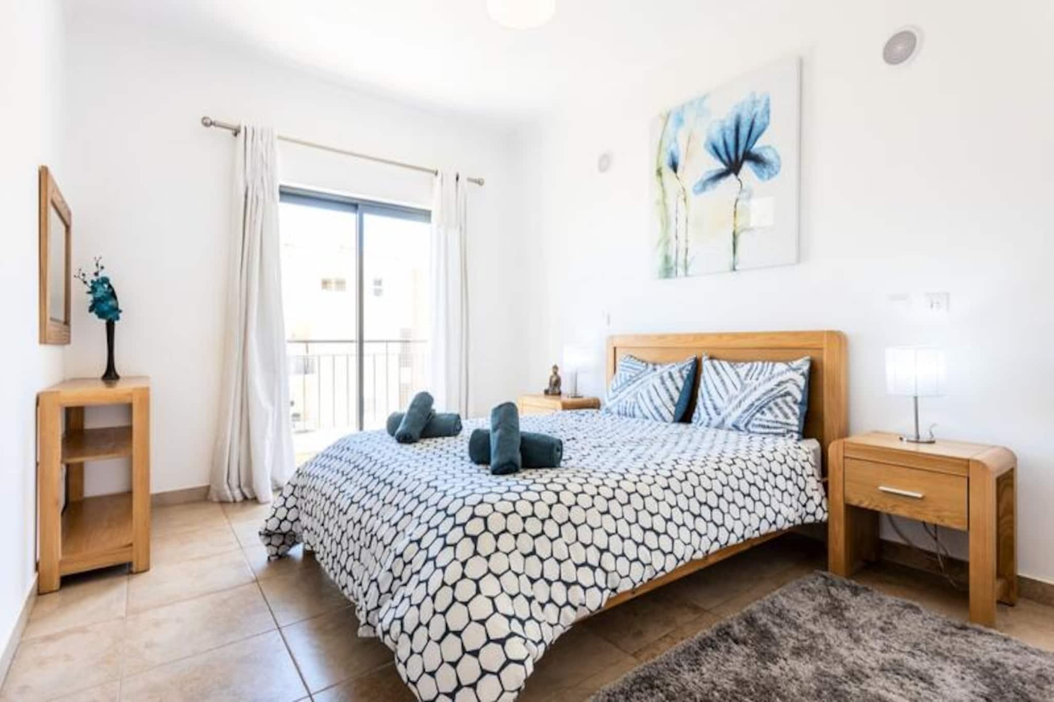 Denne stilfulde lejlighed med to soveværelser har udsigt over Lagos' maleriske marina og tilbyder den perfekte blanding af moderne komfort og Algarve-charme. Beliggende i udkanten af ??Lagos centrum tilbyder den et roligt tilflugtssted, samtidig med at du holder dig tæt på det pulserende liv i denne historiske kystby. Forestil dig at vågne op til udsigt over havnen, nyde din morgenkaffe på balkonen og planlægge en dag fyldt med sol, hav og udforskning. Uanset om du er her for en romantisk ferie eller en familieferie, sætter denne lejlighed scenen for uforglemmelige minder. Indenfor finder du et gennemtænkt designet rum med et fuldt udstyret køkken, en rummelig stue, der åbner ud til balkonen, og to hyggelige soveværelser - et med en dobbeltseng og det andet med to enkeltsenge. Lejligheden har også to moderne badeværelser, et med badekar og det andet med bruser, hvilket sikrer bekvemmelighed for alle gæster. Yderligere faciliteter inkluderer Wi-Fi, en vaskemaskine og adgang til bygningens fælles indendørs og udendørs pools samt et fitnesscenter. Med sengelinned og håndklæder er alt, hvad du behøver at gøre, at slappe af og nyde. Træd udenfor, og du vil befinder dig kun en kort gåtur fra Lagos' livlige historiske centrum, hvor brostensbelagte gader fører til charmerende butikker, travle markeder og et udvalg af barer og restauranter. Den gyldne sandstrand og lystbådehavnen ligger kun fem minutter væk, hvilket gør det nemt at nyde Algarves berømte kystlinje. For dem, der søger eventyr, anbefaler vi varmt en båd- eller kajaktur for at udforske de dramatiske klipper og skjulte huler, der definerer denne fantastiske region. Uanset om du nyder solen ved poolen, udforsker de pulserende gader i Lagos eller begiver dig ud for at opdage Algarves naturlige skønhed, tilbyder denne lejlighed den ideelle base for din ferie. Med Faro Lufthavn kun en time væk og fremragende transportforbindelser er din drømmeferie tættere på, end du tror.