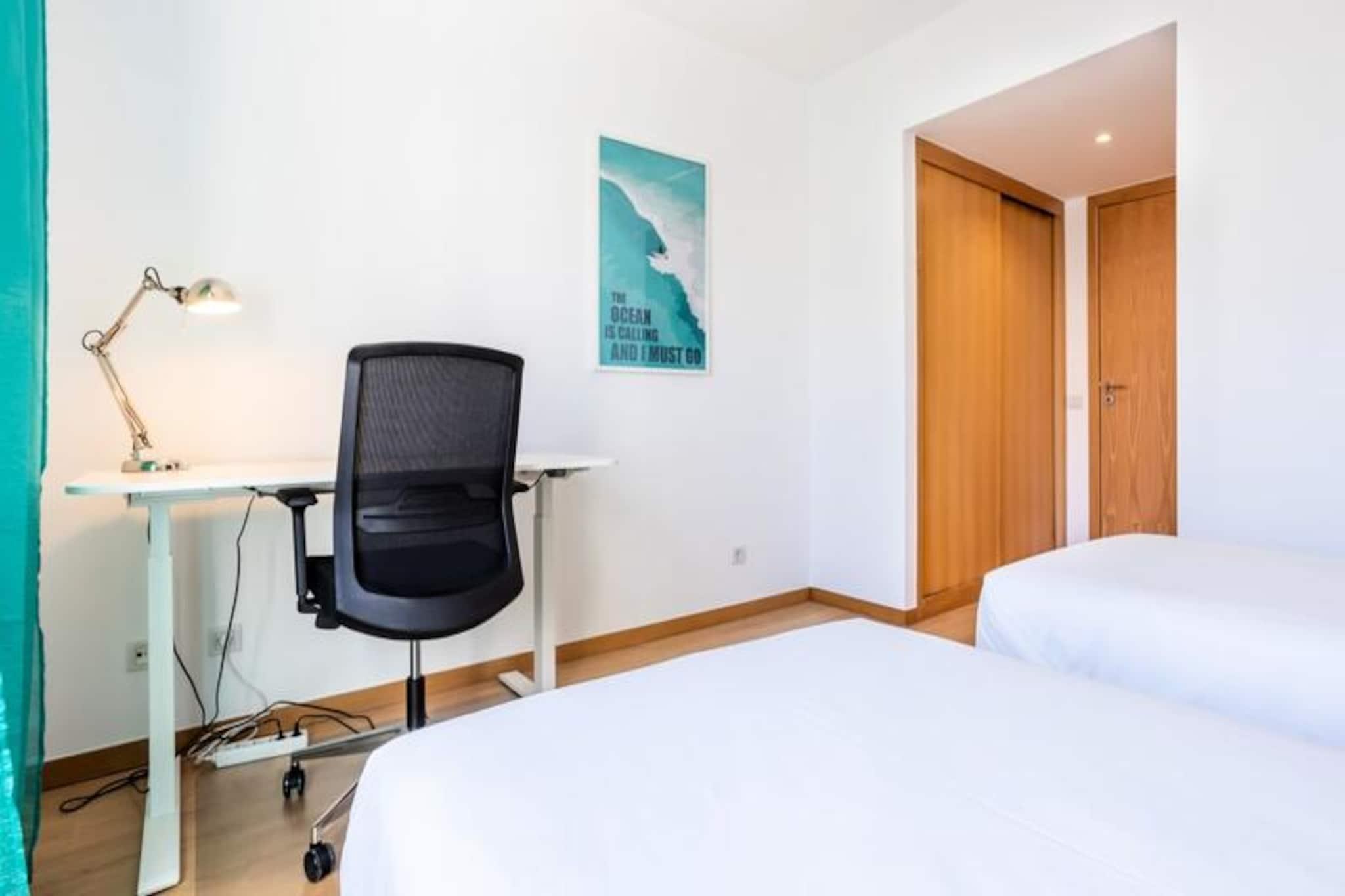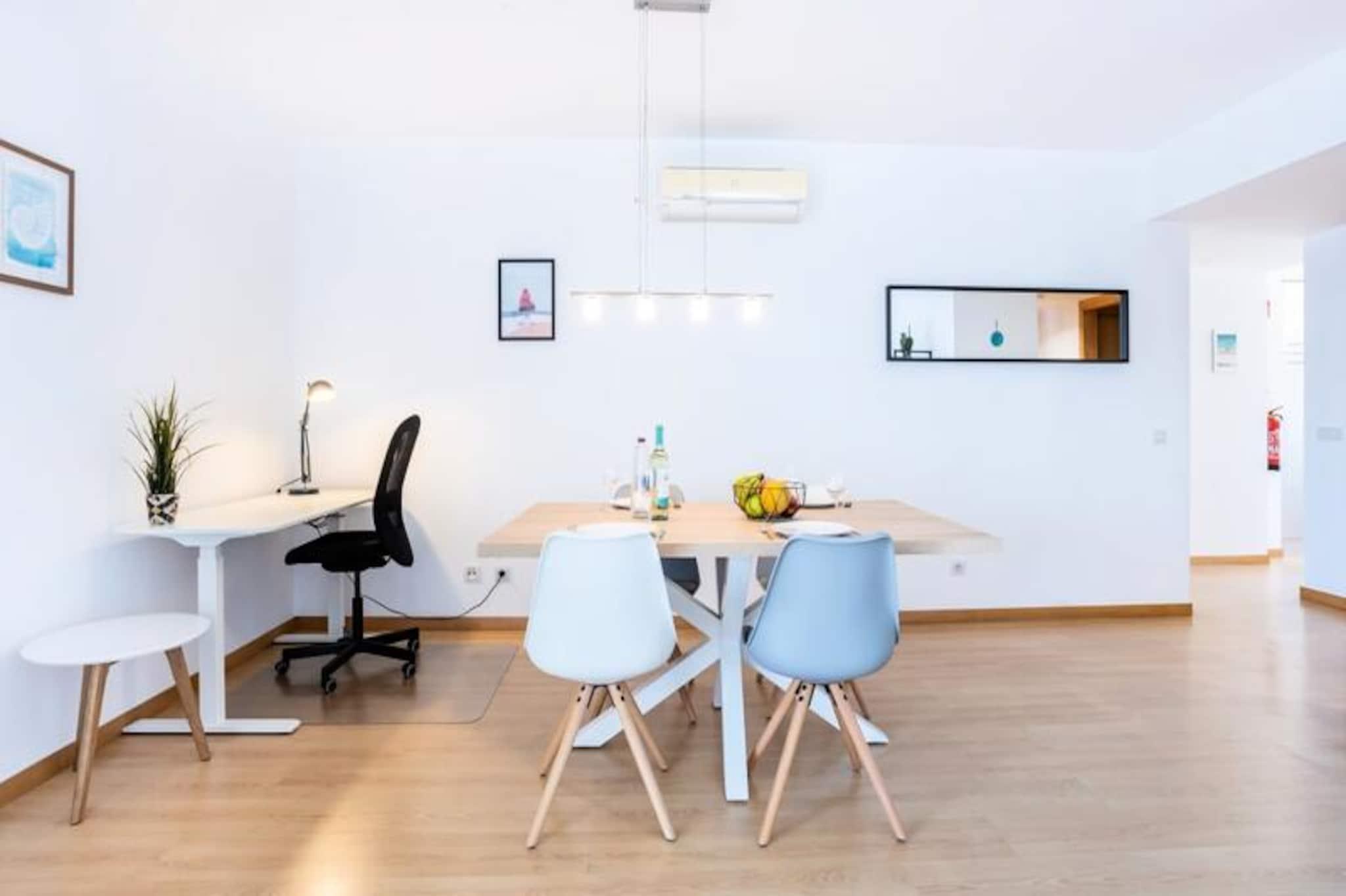I hjertet af Algarve, hvor gyldne strande møder azurblåt vand, tilbyder denne moderne lejlighed med to soveværelser en rolig oase lige uden for Lagos centrum. Med sin førsteklasses beliggenhed nær marinaen er dette stilfulde tilflugtssted perfekt til familier eller par, der søger en blanding af komfort og bekvemmelighed. Forestil dig at nippe til din morgenkaffe på den rummelige balkon med udsigt over den rolige naturlige sø bag bygningen, mens solen står op over horisonten. Disse fredelige omgivelser er den perfekte kulisse for en uforglemmelig ferie. Lejligheden er for nylig blevet renoveret for at tilbyde et luksuriøst og moderne rum. Den har et fuldt udstyret køkken med opvaskemaskine, der åbner ind i en lys og luftig stue med spiseplads og lounge. De to soveværelser er omhyggeligt designet, det ene med en dobbeltseng og det andet med to enkeltsenge, hvilket sikrer en afslappende nat for alle gæster. To moderne badeværelser, det ene med badekar og det andet med bruser, bidrager til bekvemmeligheden. For dem, der kombinerer arbejde og fritid, inkluderer lejligheden to professionelle, højdejusterbare skriveborde, hvilket gør den til et ideelt valg til fjernarbejde. Beliggende på anden sal i en rolig ejerlejlighed med elevator, sikrer denne ejendom privatliv og afslapning. Marinaområdet, kun 10 minutters gang væk, byder på et pulserende udvalg af restauranter, barer med livemusik og et stort supermarked. Lagos er i sig selv en skattekiste af aktiviteter, lige fra at udforske det historiske centrum og de lokale markeder til at tage på båd- eller kajakture for at beundre de fantastiske klipper og huler langs kystlinjen. Regionen er også et paradis for vandsportsentusiaster med muligheder for surfing, sejlads og paddleboarding. Uanset om du søger eventyr eller ro, er denne lejlighed den perfekte base for at opleve det bedste af Lagos og Algarve. Med sine moderne faciliteter, førsteklasses beliggenhed og varme atmosfære lover den en uforglemmelig ferie.