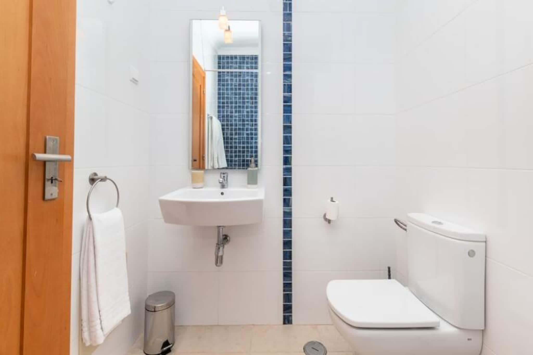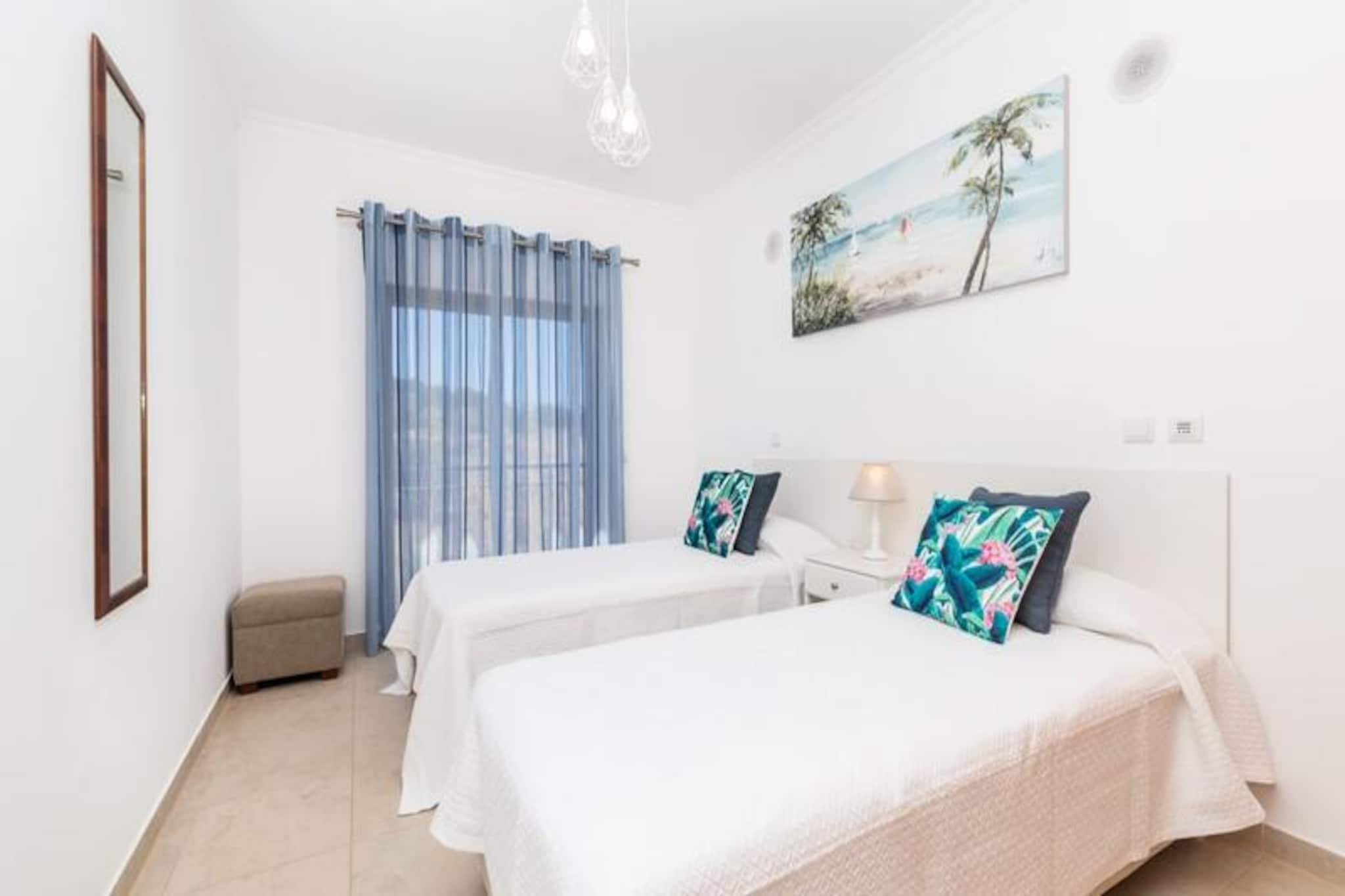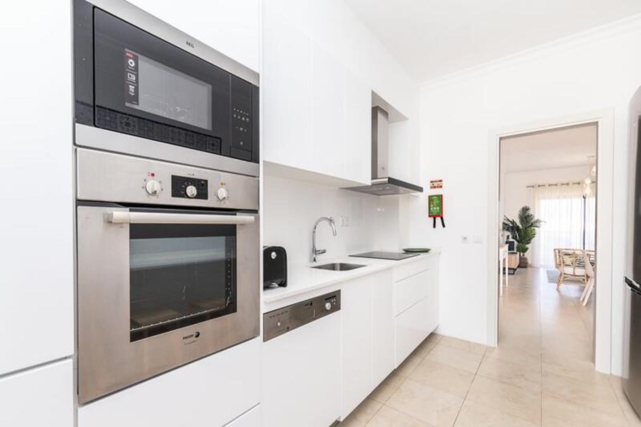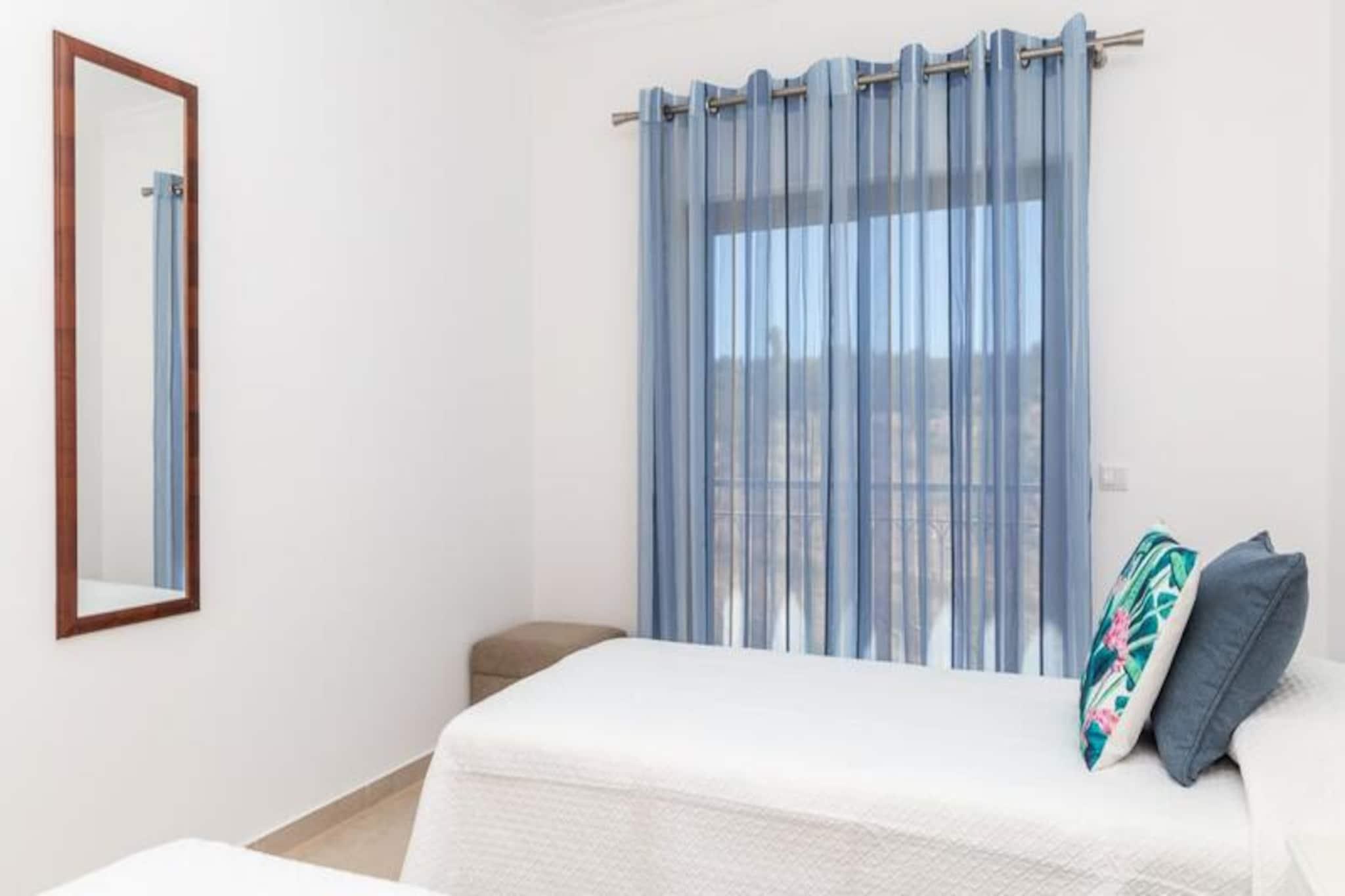Denne moderne lejlighed med to soveværelser ligger højt over de gyldne klipper i Porto de Mos og tilbyder et fredfyldt kysttilflugtssted kun få minutter fra det pulserende centrum af Lagos. Forestil dig at vågne op til lyden af bølger og nyde din morgenkaffe på den rummelige altan med Atlanterhavet som baggrund. Uanset om du er her på familieferie eller en romantisk getaway, kombinerer denne ejendom ro med nem adgang til regionens mest ikoniske attraktioner. Træd indenfor og oplev et lyst og luftigt rum designet med komfort og afslapning for øje. Det store soveværelse har en luksuriøs kingsize-seng og eget badeværelse, mens det andet soveværelse har to hyggelige enkeltsenge. En lille dobbelt sovesofa i stuen giver ekstra soveplads, hvilket gør den ideel til op til seks gæster. Det fuldt udstyrede køkken indbyder til at tilberede lækre måltider, mens den fælles swimmingpool tilbyder et forfriskende alternativ til den nærliggende strand. Moderne faciliteter som Wi-Fi, tv og frisk sengelinned sikrer et problemfrit ophold. Kun fem minutters gang derfra ligger Porto de Mos-stranden med sit gyldne sand og krystalklare vand. De dramatiske klipper ved Ponta da Piedade, der er perfekte til vandreture eller fotografering, ligger også inden for rækkevidde. Når det kommer til spisesteder, finder du fremragende restauranter ved stranden og charmerende lokale spisesteder i det nærliggende boligområde. En kort køretur eller gåtur bringer dig til Lagos' historiske centrum, hvor brostensbelagte gader, livlige markeder og en travl marina venter. Uanset om du udforsker Algarves fantastiske kystlinje, nyder friske fisk og skaldyr eller bare nyder solen, er denne lejlighed det perfekte udgangspunkt for en uforglemmelig ferie. Book dit ophold i dag og oplev Lagos' magi!