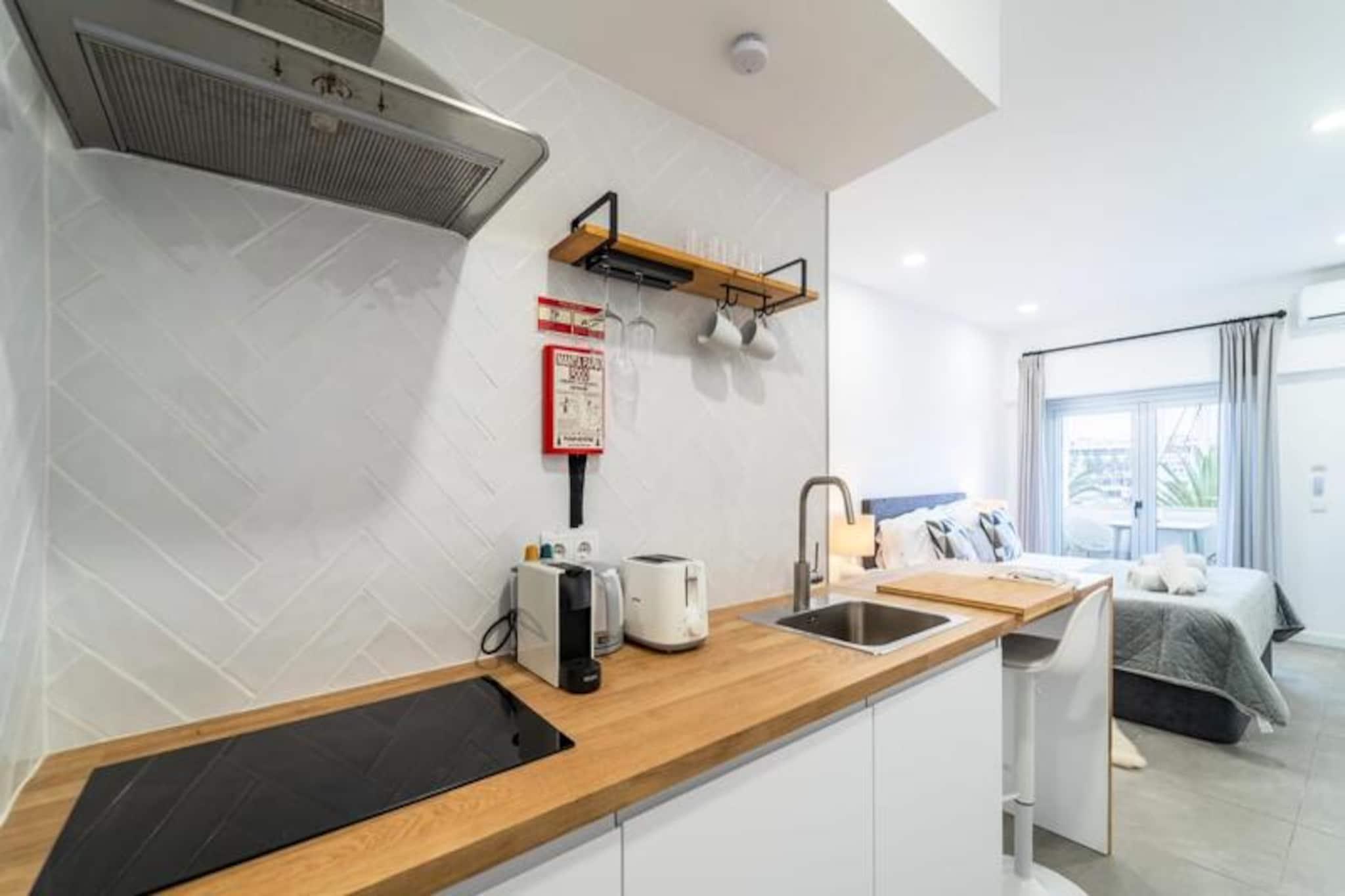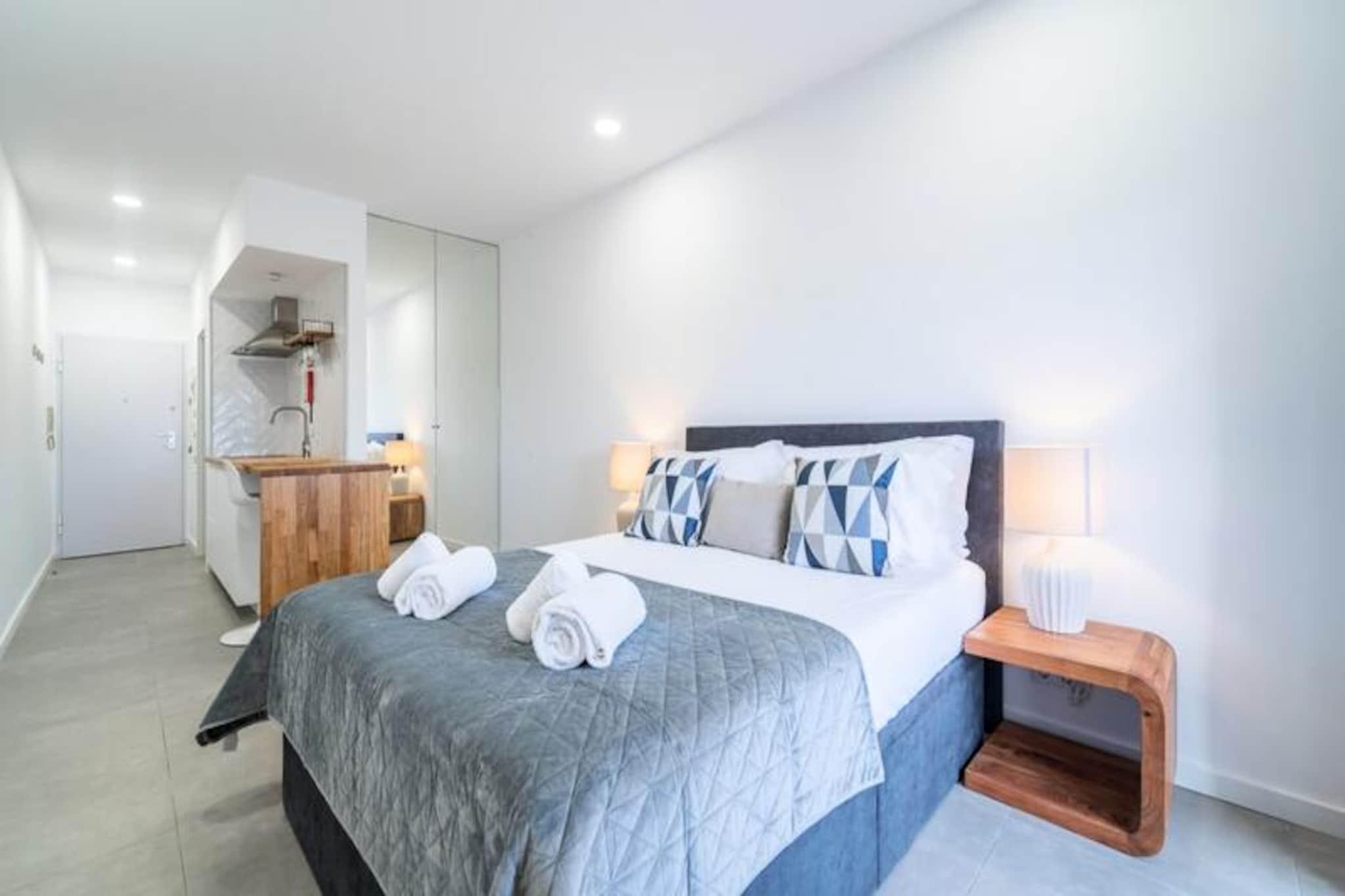 Væk dine sanser i hjertet af Lagos, hvor dette smukt renoverede studio tilbyder en rolig oase med betagende udsigt over marinaen. Forestil dig at nippe til et glas vin på balkonen, mens solen går ned over vandet og maler himlen med nuancer af guld og karmosinrød. Dette moderne tilflugtssted er perfekt til par, der søger en romantisk ferie, eller solorejsende, der ønsker at fordybe sig i den pulserende charme ved Portugals Algarve-kyst. Med sin uovertrufne beliggenhed fungerer studioet som en port til det historiske centrum, fantastiske strande og den livlige havn - alt sammen kun en kort gåtur væk. \n\nTræd indenfor og oplev et gennemtænkt designet rum, der blander komfort og stil. Queensize-sengen indbyder til afslappende nætter, mens det private badeværelse med en luksuriøs regnbruser sikrer afslapning efter en dag med udforskning. Det veludstyrede køkken giver dig mulighed for nemt at tilberede måltider, og de høje lofter og åbne vinduer skaber en luftig atmosfære, der føles både indbydende og sofistikeret. Moderne bekvemmeligheder som Wi-Fi og tv tilføjer bekvemmelighed og gør dette studio til et sandt hjem væk fra hjemmet. \n\nUden for din dør udfolder Lagos sig med uendelige muligheder. Gå en tur gennem brostensbelagte gader med traditionelle huse, kig i lokale butikker, eller nyd frisk fisk og skaldyr på restauranter ved vandet. Eventyr venter på Algarves klipper og vand – uanset om du ror kajak gennem skjulte huler, sejler langs kysten eller blot nyder solen på det gyldne sand. Marinaområdet byder på livemusik, travle barer og et stort supermarked til alle dine behov. \n\nUanset om du er her for afslapning eller udforskning, er dette studie din perfekte base for at opleve Lagos' magi. Lad charmen i denne kystby og komforten i din bolig skabe uforglemmelige minder.