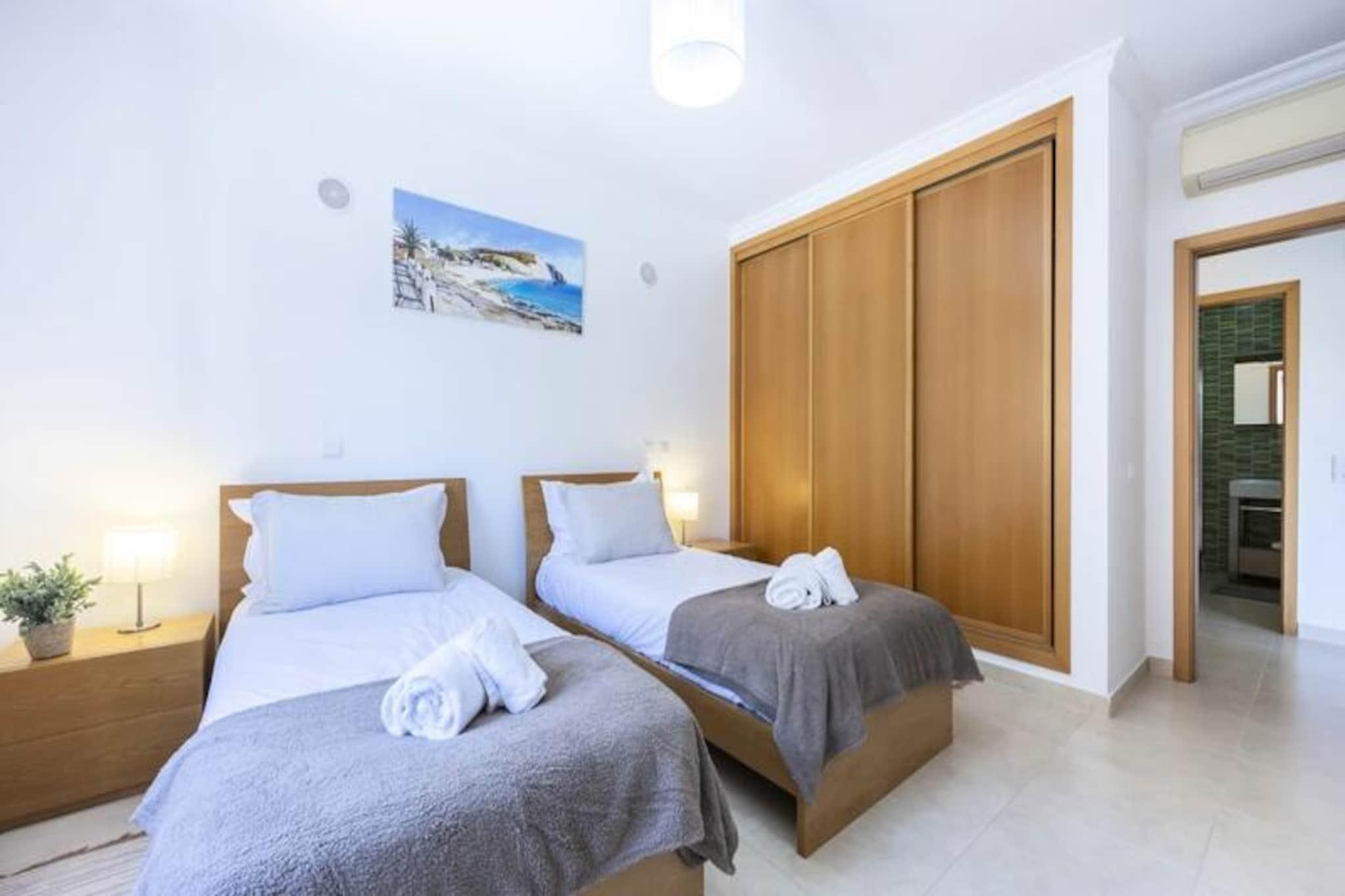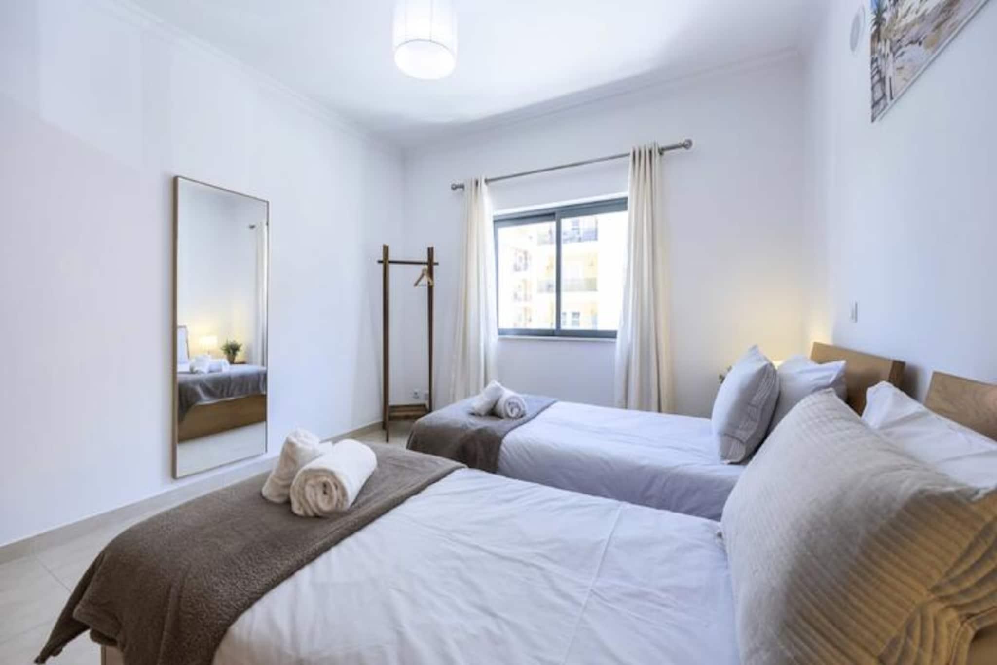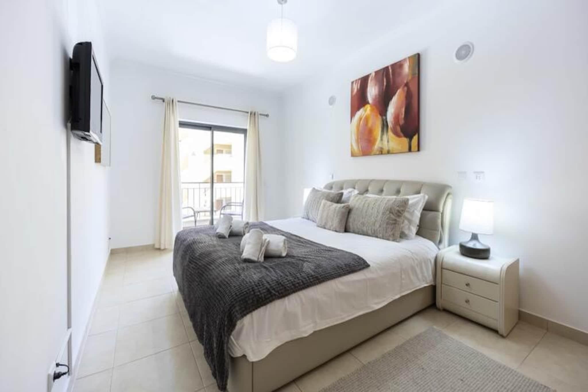 Nyd den gyldne Algarve-sol i denne lyse og moderne lejlighed med 2 soveværelser, perfekt beliggende i et af Lagos' mest eftertragtede boligkomplekser. Uanset om du søger et roligt tilflugtssted eller en pulserende base at udforske, tilbyder denne ejendom den perfekte blanding af komfort, bekvemmelighed og stil. Fra dens private sydvendte altaner kan du nyde rolige morgener med en kop kaffe eller slappe af efter en dag med eventyr under den varme portugisiske sol. Træd indenfor og oplev et gennemtænkt designet rum, der opfylder alle dine feriebehov. Lejligheden har et fuldt udstyret køkken, der åbner ud til en rummelig balkon, ideel til spisning under åben himmel. Den åbne stue og spisestue er badet i naturligt lys, hvilket skaber en indbydende atmosfære til afslapning. Soveværelset har en kingsize-seng, eget badeværelse og en privat balkon, mens det andet soveværelse har to enkeltsenge og indbyggede skabe. Med aircondition på alle værelser, Wi-Fi og moderne bekvemmeligheder vil dit ophold være lige så behageligt, som det er mindeværdigt. Gæsterne kan nyde eksklusiv adgang til kompleksets indendørs og udendørs swimmingpools, et fuldt udstyret fitnesscenter og en solterrasse. For ekstra bekvemmelighed inkluderer ejendommen underjordisk parkering og er omgivet af supermarkeder, restauranter og butikker. Marinaen ligger kun en kort gåtur væk, mens Lagos' fantastiske strande og historiske gamle bydel er inden for rækkevidde. Uanset om du foretrækker at udforske de dramatiske klipper i kajak, nyde lokal mad eller blot slappe af ved poolen, har denne beliggenhed det hele. Gør dette til dit hjem væk fra hjemmet i Lagos, hvor uforglemmelige minder venter. Med sin førsteklasses beliggenhed og exceptionelle faciliteter er denne lejlighed det perfekte valg til din Algarve-ferie.