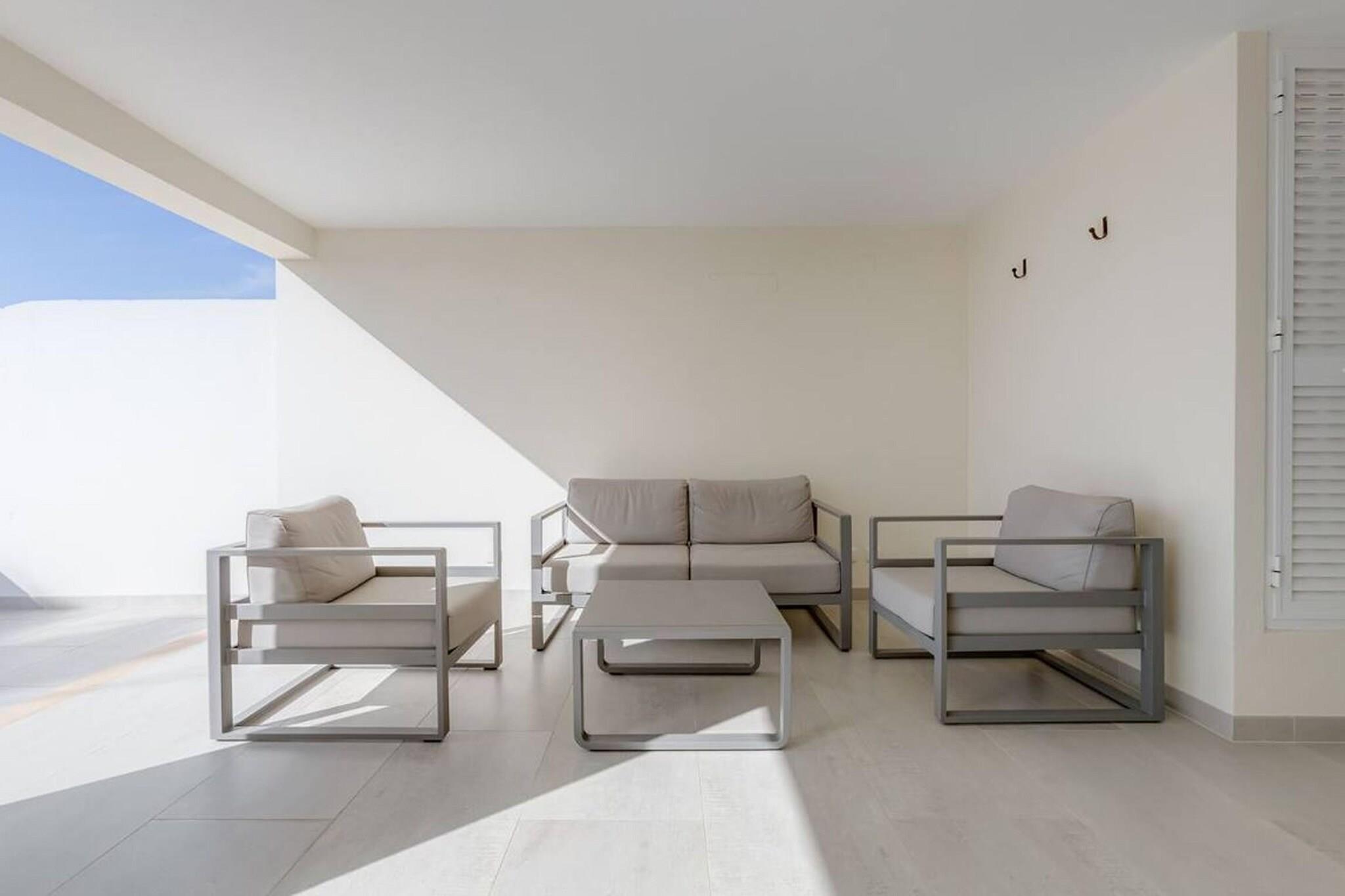 Stueetage: (soveværelse(enkeltseng, enkeltseng), Soveværelse med badeværelse(dobbeltseng, badekar med bruser, håndvask, toilet, føntørrer), badeværelse(håndvask, toilet), klimaanlæg, terrasse(privat), luft til luft-varmepumpe) På 1. etage: (Indgang (adgang udefra), åbent køkken(kogeplade, elkedel, kaffemaskine, ovn, opvaskemaskine , køleskab), stue / spisestue(Fjernsyn(fladskærm), spisebord, sofahjørne), toilet(håndvask, toilet), klimaanlæg, tagterrasse, luft til luft-varmepumpe) På 2. etage: (åbent køkken(opvaskemaskine , køleskab), spisebord, sofahjørne(4 personer)) havedøre, have(privat, indhegnet), havemøbler, parkering, swimmingpool(deles med andre gæster, udendørs, opened from Sep upto and including Jun), strygebræt, strygejern