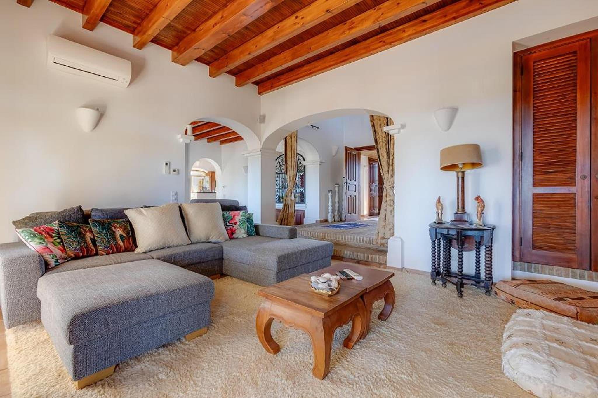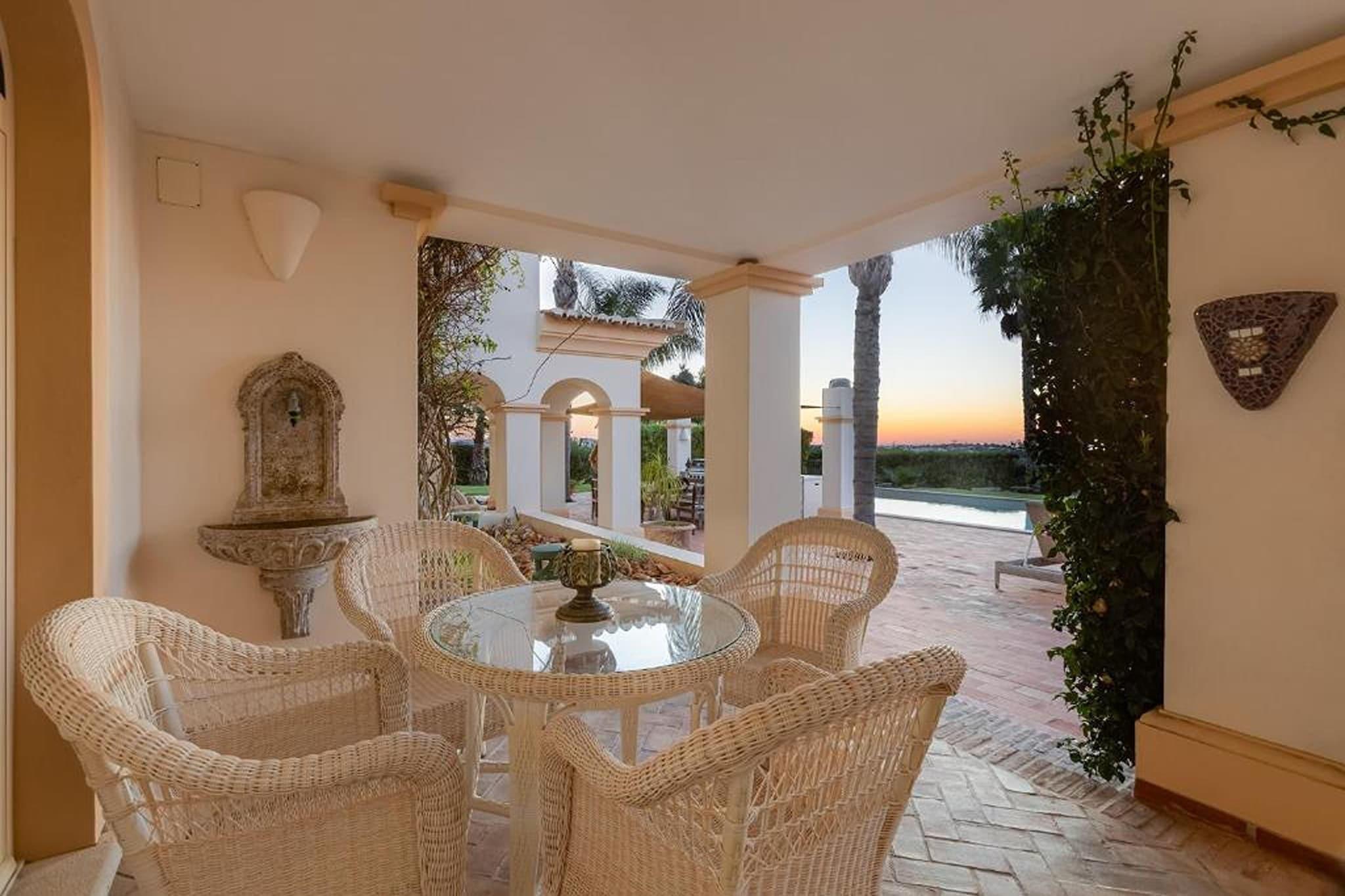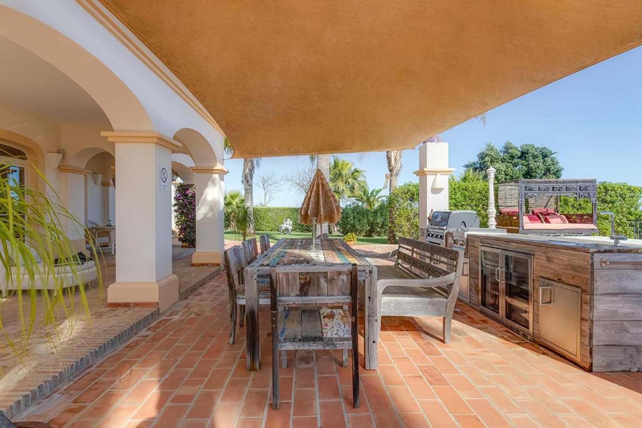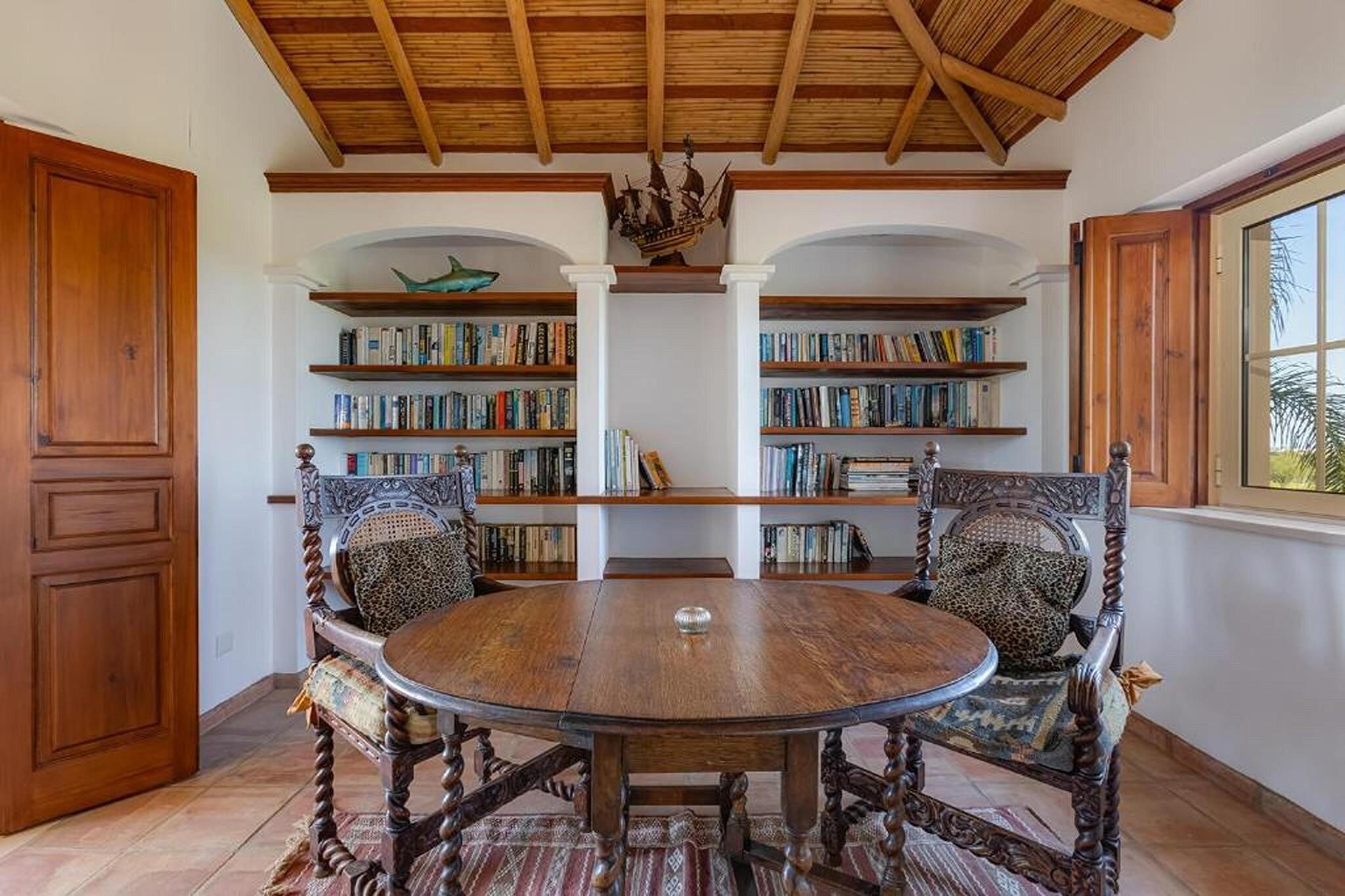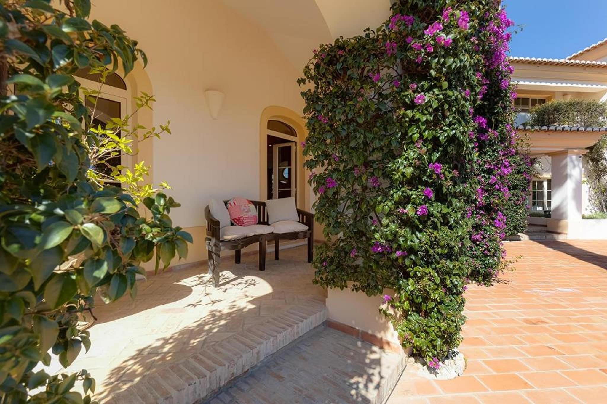 Velkommen til din drømmeferie! Beliggende i den fredfyldte og eksklusive boligenklave i Lagos tilbyder denne charmerende luksusvilla en uovertruffen blanding af sofistikering og komfort, der lover en uforglemmelig ferieoplevelse. For den ultimative afslapning kan du fordybe dig i det boblende vand i spabadet eller tage en forfriskende dukkert i den funklende swimmingpool, alt imens du nyder en betagende udsigt over bugten og det omkringliggende landskab. Der er masser af muligheder for aktiviteter og udflugter i og fra Lagos. For eksempel: bådudflugter til de smukke grotter, Lagos Zoo, ridning, vandreture i naturen, vandlande med masser af store vandrutsjebaner, ture til omkringliggende byer, historiske monumenter og steder af interesse, shopping, cykling osv. Denne rummelige villa strækker sig over flere niveauer og kan prale af fire smagfuldt indrettede soveværelser og fire luksuriøse badeværelser, hvilket sikrer rigelig plads og privatliv for op til otte gæster. Der er masser af underholdning og afslapning i villaens tre indbydende stuer, perfekt til at slappe af med sine kære eller hengive sig til stille fordybelse. For kulinariske entusiaster venter to fuldt udstyrede køkkener, hvor du kan slippe din kulinariske kreativitet løs og nyde lækre måltider. Forkæl din sanser i villaens frodige indre have, der tilbyder en fredfyldt oase af grønt og ro. Fortab dig i en god bog i det hyggelige bibliotek, eller foryng din krop og dit sind i det velindrettede fitnesscenter og sauna.