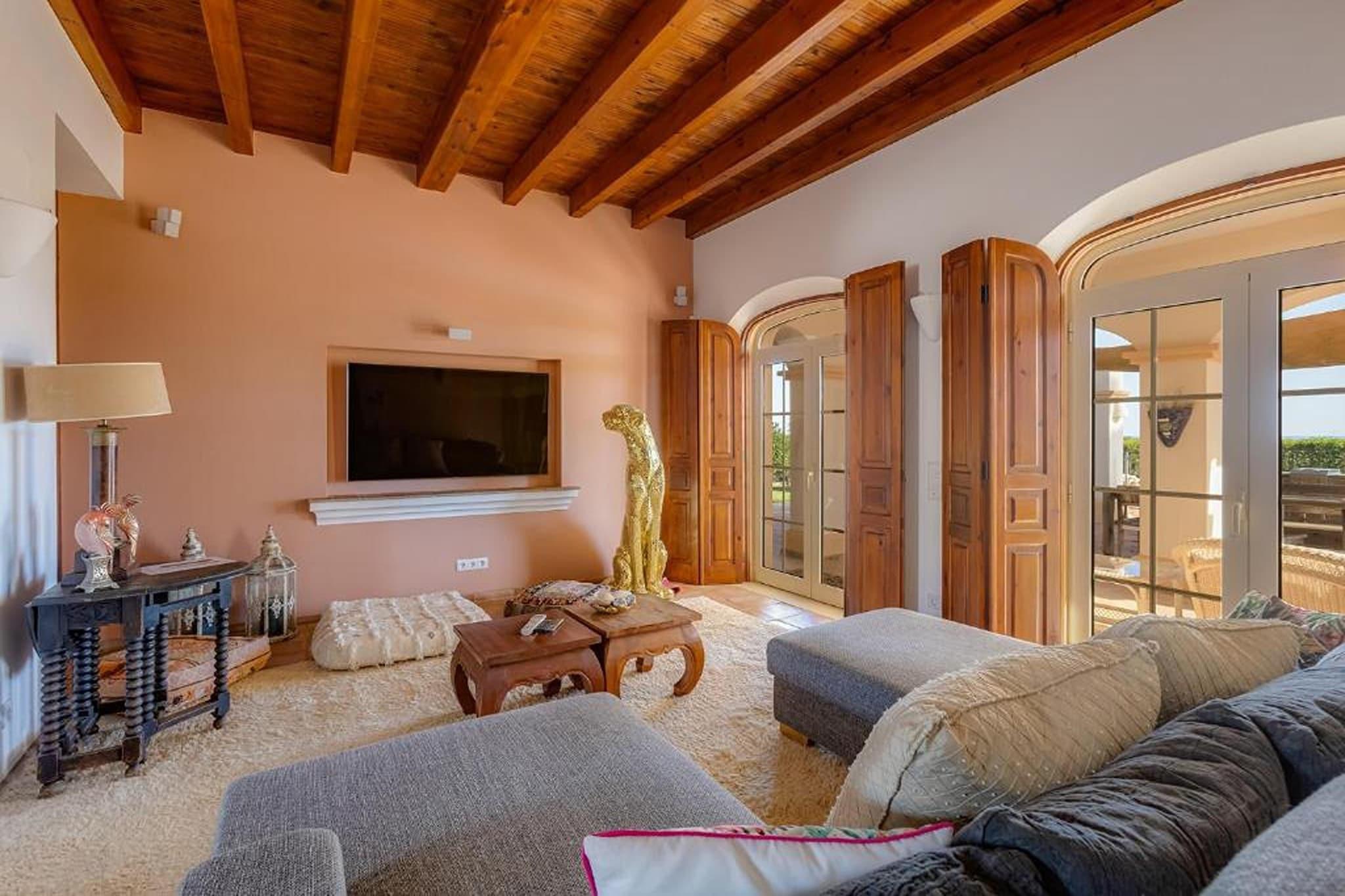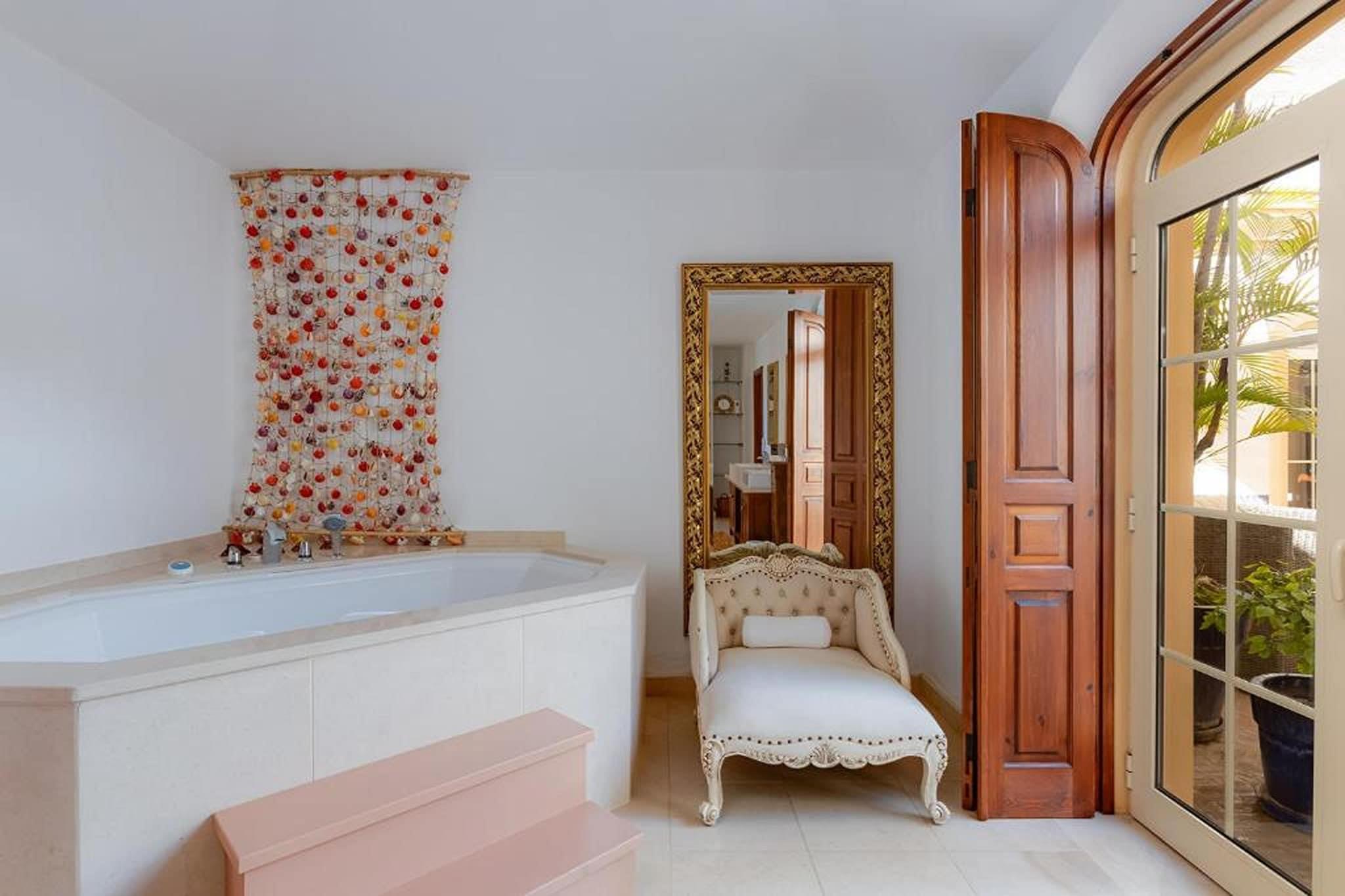 Stueetage: (Indgang (adgang udefra), Stue(Fjernsyn(fladskærm, parabol, Internationale TV-kanaler), sofahjørne), åbent køkken(Fjernsyn(fladskærm, parabol, Internationale TV-kanaler), kogeplade, elkedel, brødrister, emhætte, kaffemaskine, ovn, mikrobølgeovn, opvaskemaskine , køle-fryseskab), åbent køkken(kogeplade, elkedel, emhætte, kaffemaskine, ovn, opvaskemaskine , køleskab), stue / spisestue(Fjernsyn(fladskærm, parabol, Internationale TV-kanaler), spisebord, pejs, sofahjørne), Soveværelse med badeværelse(king size-seng, badekar med bruser, håndvask, toilet), Soveværelse med badeværelse(king size-seng, bruser, håndvask, toilet, føntørrer), Soveværelse med badeværelse(king size-seng, badekar med bruser, håndvask, toilet, føntørrer), badeværelse(håndvask, toilet), klimaanlæg, terrasse(privat), have(privat), ) På 1. etage: (Stue(sofahjørne), Soveværelse med badeværelse(king size-seng, bruser, håndvask, toilet), klimaanlæg, terrasse(privat), ) vaskerum (tørretumbler, vaskemaskine, strygebræt, strygejern), fitnessrum(fitnessapparater), loungerum(sofahjørne), spisebord, hottub, sauna, havedøre, have(privat, 6000 m2), havemøbler, grill(trækul), parkering, liggestole, liggestole, liggestole, liggestole, liggestole, liggestole, liggestole, liggestole, Parasol, swimmingpool(privat, udendørs, opened from Jan upto and including Dec)