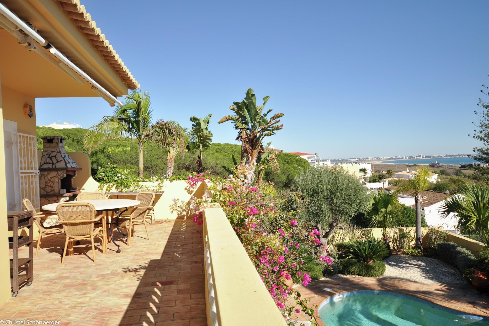 2 værelses villa med 148sqm i en grund på 625sqm placeret på den anmodede Meia Praia. Består af to etager, have, terrasser og pool. Indbyggede garderobeskabe, vinduesrammer af termoruder af aluminium og håndklædestativ. Bestående af entré, 2 soveværelser (en en-suite), badeværelse, stue med dekorative pejs, fuldt udstyret køkken, kontor og generøs balkon. Carpot. God adgang. Stille boligområde med villaer med udsigt over poolen, havet og Meia Praia.