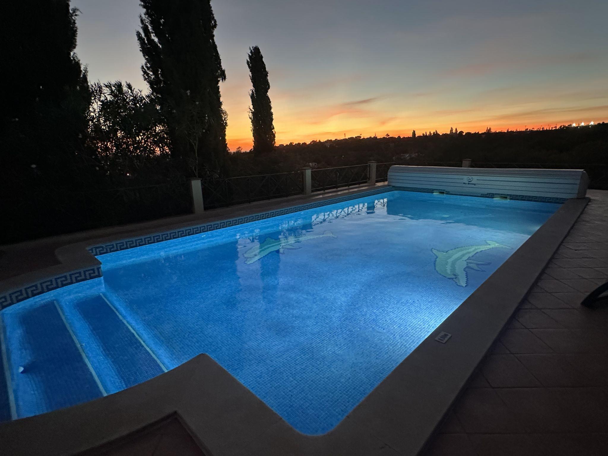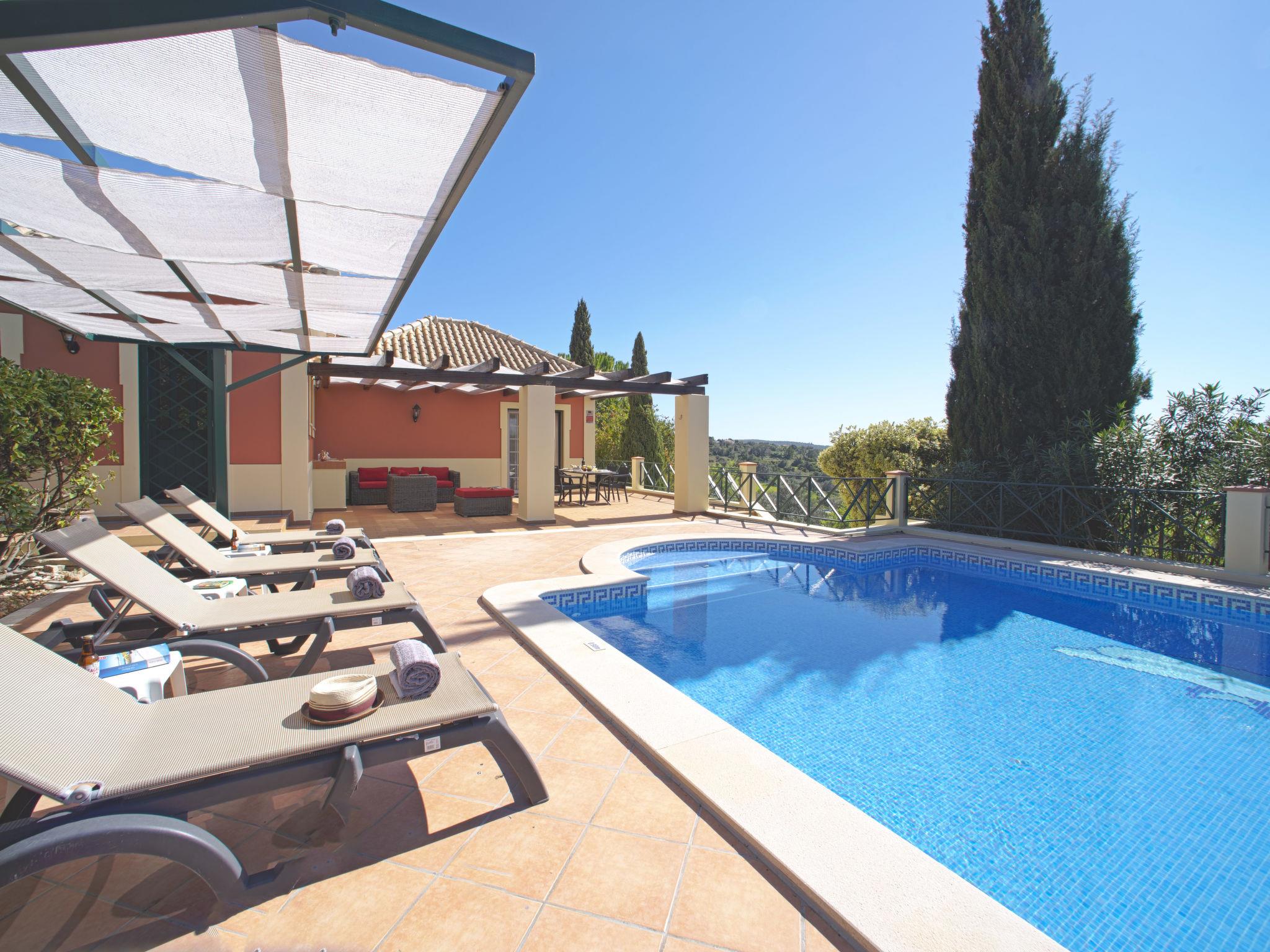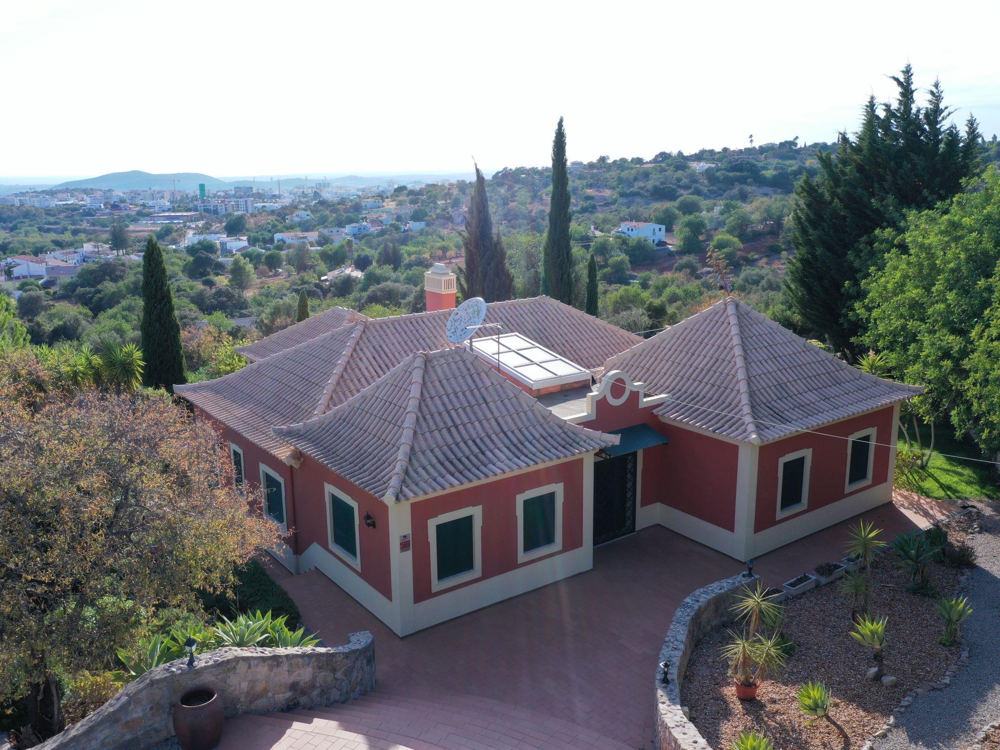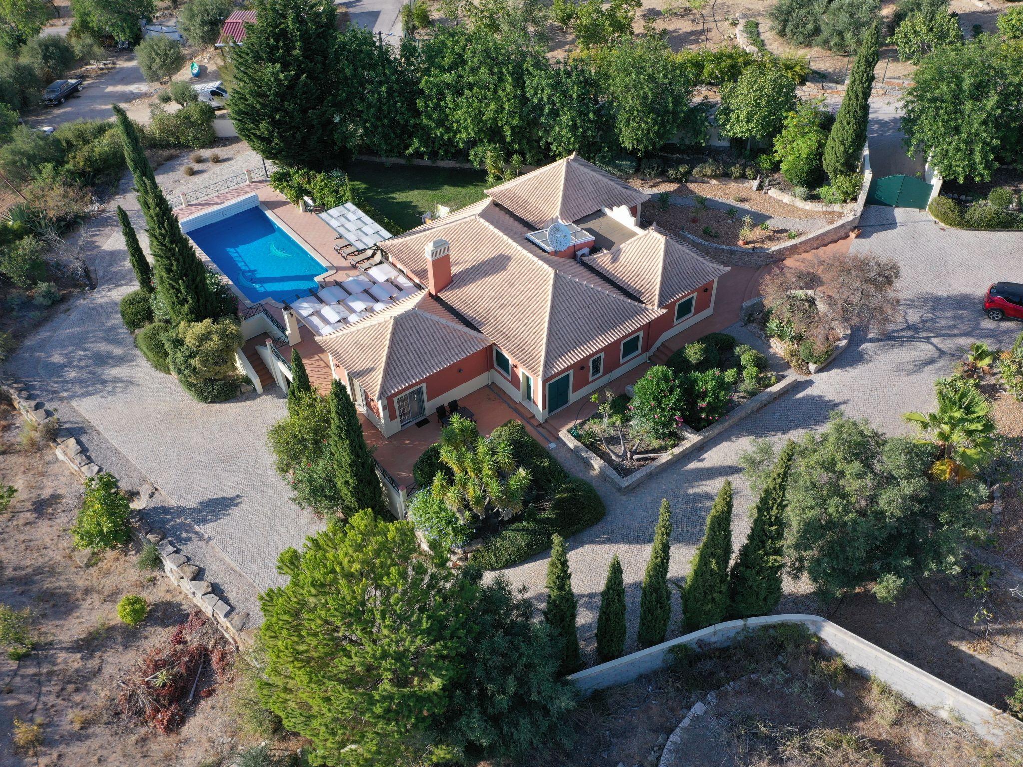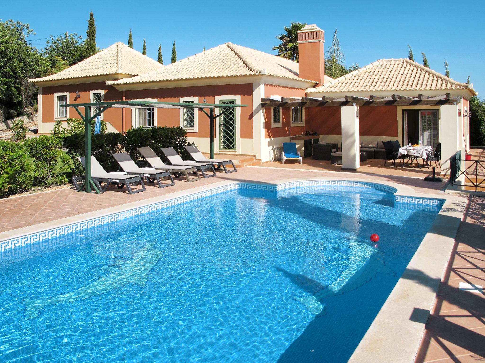 House "Montinho", built in 2007, surrounded by meadows and fields. 2.5 km from the centre of Loulé, on a slope, residential area (villas), 12 km from the sea, in the countryside. Private: property 2'500 m2 (fenced) with lawn and trees, swimming pool (10 x 5 m, seasonal availability: 01.Jan. - 31.Dec.) with salt-electrolysis pool-cleaning system. Outdoor shower, table tennis, pergola. In the house: burglar alarm system. Parking on the premises, single garage. Shop 2.2 km, restaurant 650 m, bus stop "Betunes" 650 m, railway station "Loulé" 8.9 km, sandy beach 12 km, indoor swimming pool 3.4 km. Marina 17.5 km, golf course (27 hole) 14 km, tennis 2.5 km. Nearby attractions: Aquapark 11 km, Zoomarine 29 km.