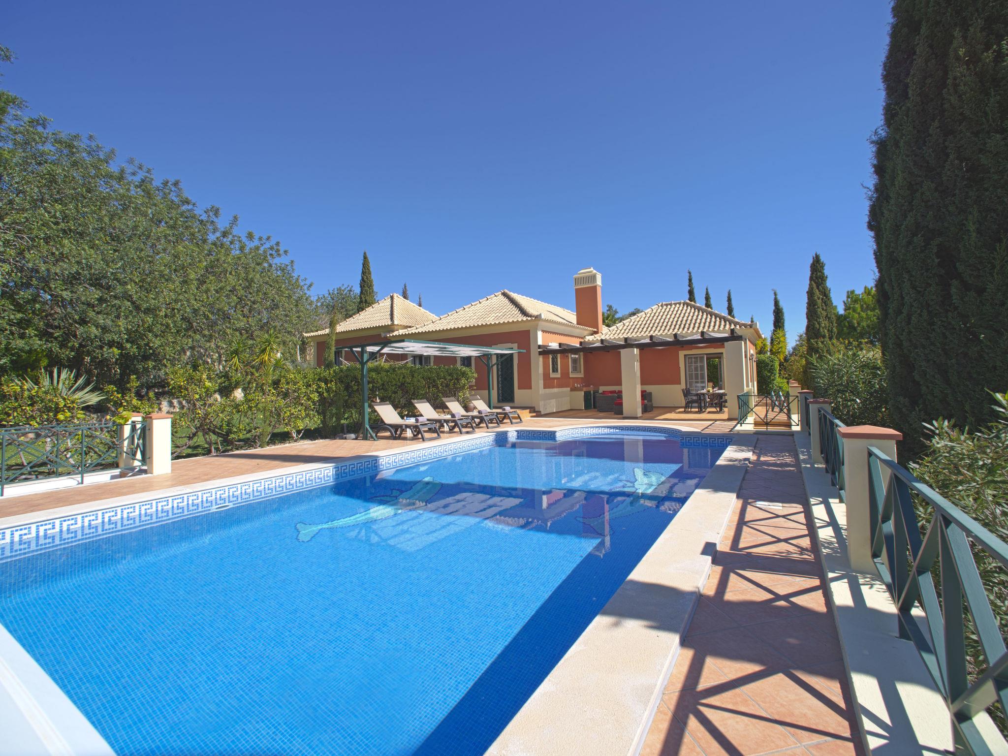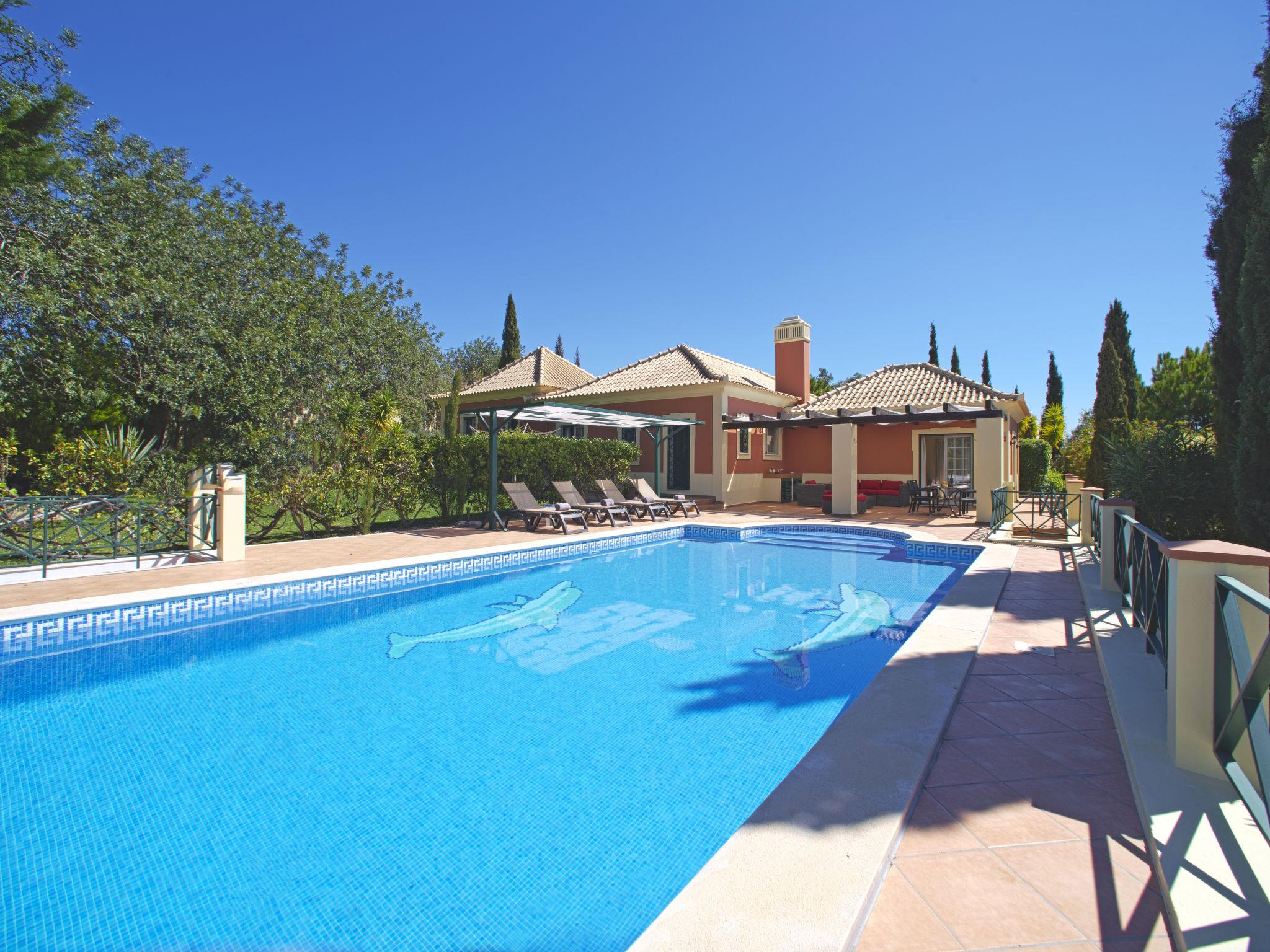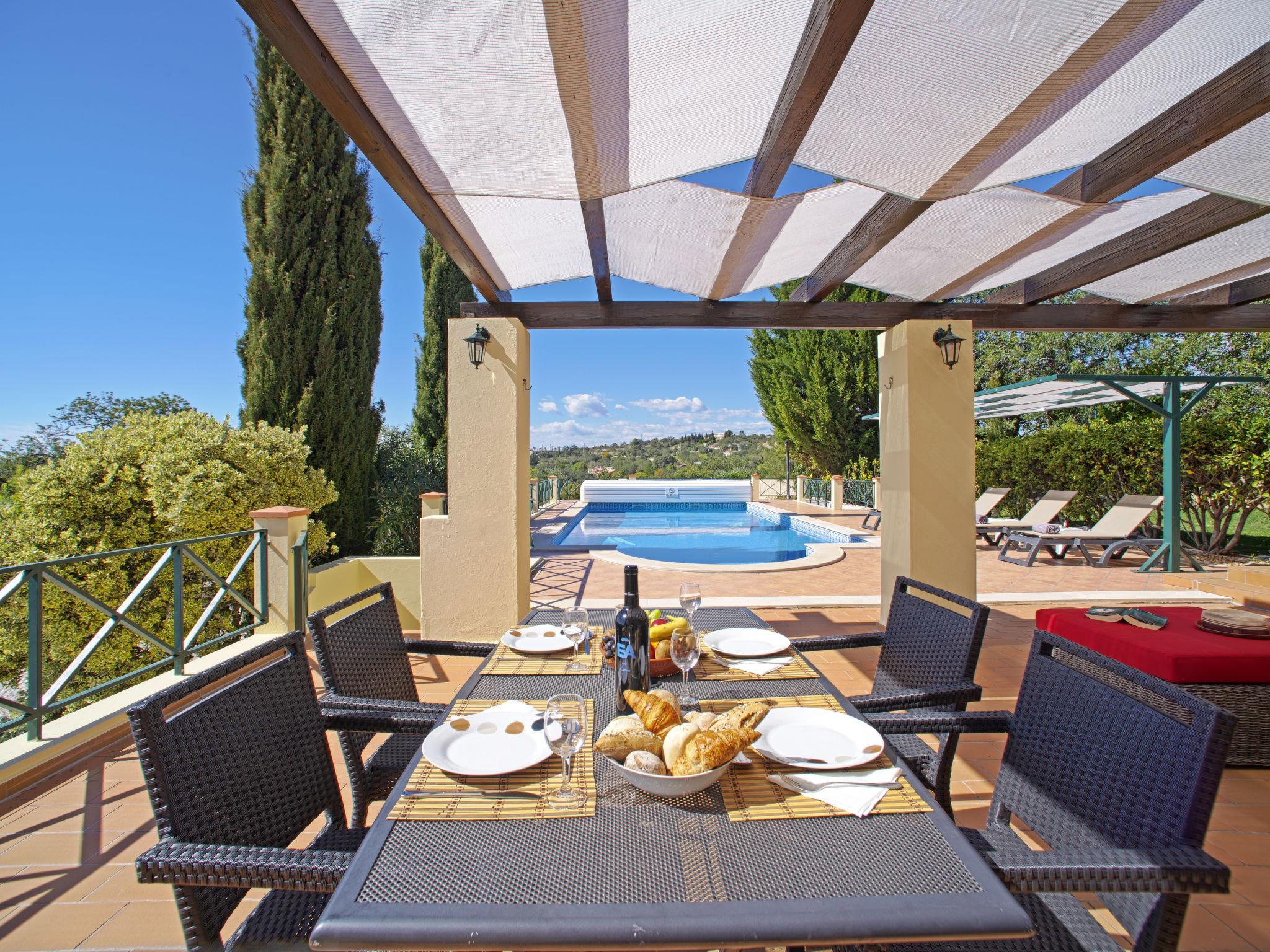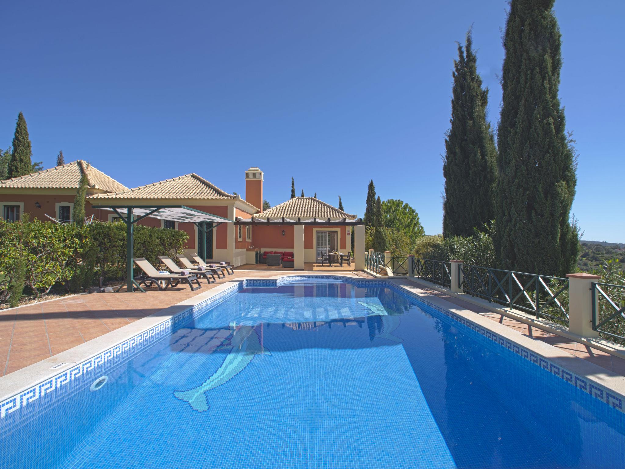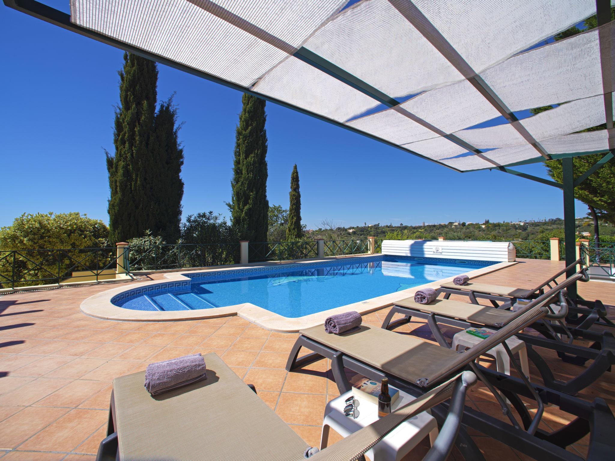 House "Montinho", built in 2007, surrounded by meadows and fields. 2.5 km from the centre of Loulé, on a slope, residential area (villas), 12 km from the sea, in the countryside. Private: property 2'500 m2 (fenced) with lawn and trees, swimming pool (10 x 5 m, seasonal availability: 01.Jan. - 31.Dec.) with salt-electrolysis pool-cleaning system. Outdoor shower, table tennis, pergola. In the house: burglar alarm system. Parking on the premises, single garage. Shop 2.2 km, restaurant 650 m, bus stop "Betunes" 650 m, railway station "Loulé" 8.9 km, sandy beach 12 km, indoor swimming pool 3.4 km. Marina 17.5 km, golf course (27 hole) 14 km, tennis 2.5 km. Nearby attractions: Aquapark 11 km, Zoomarine 29 km.