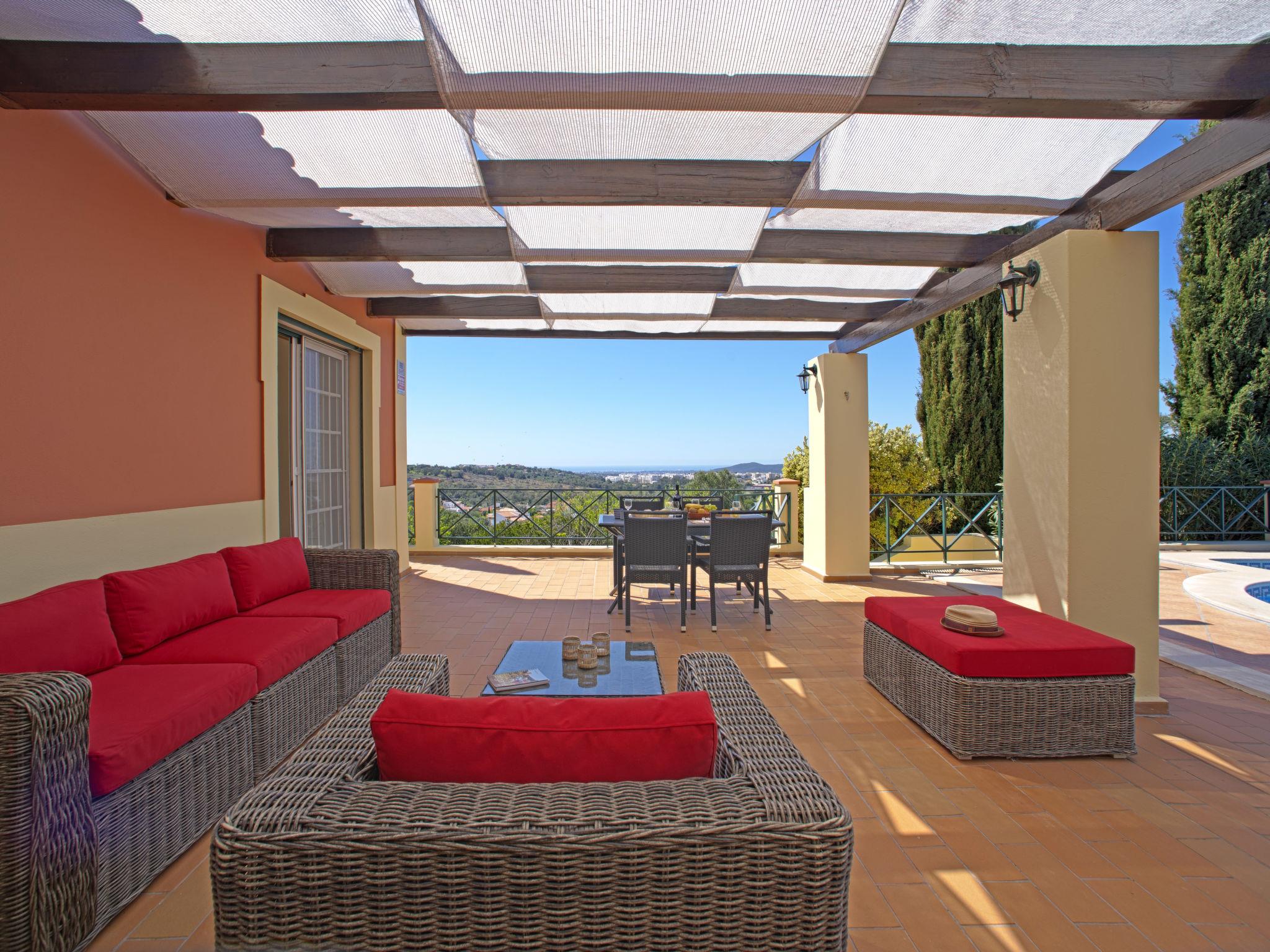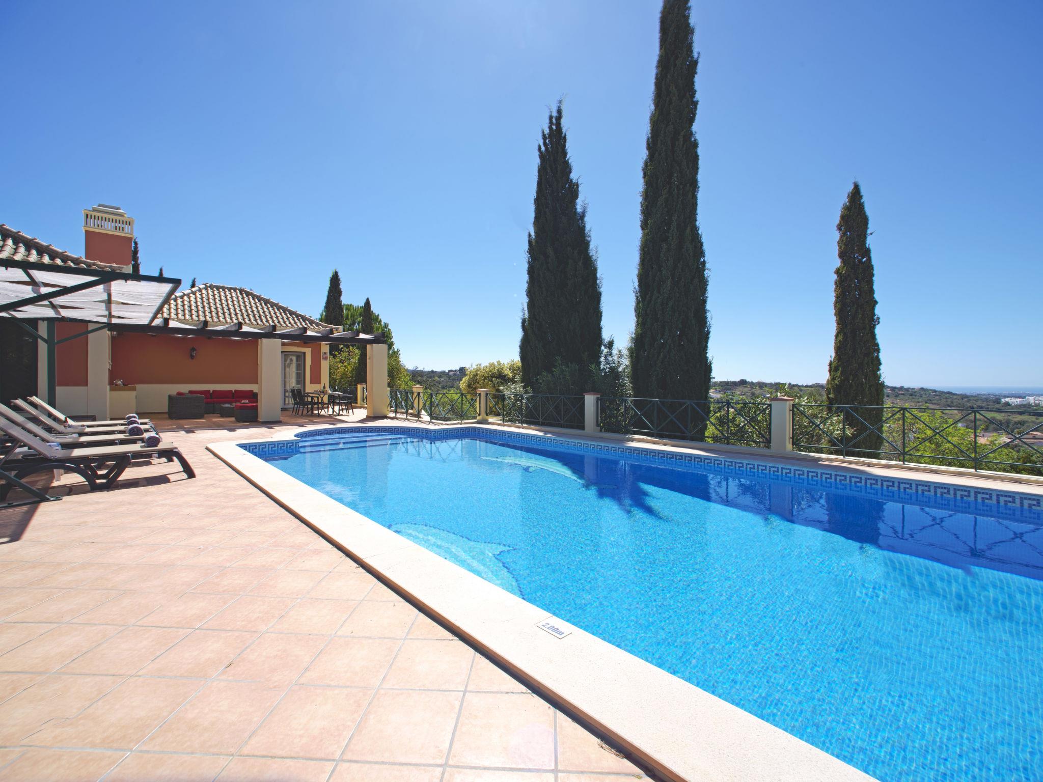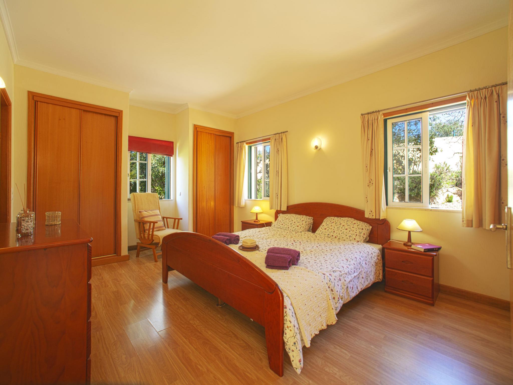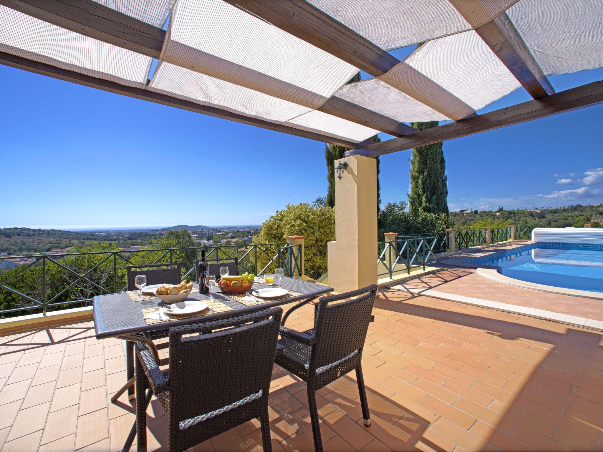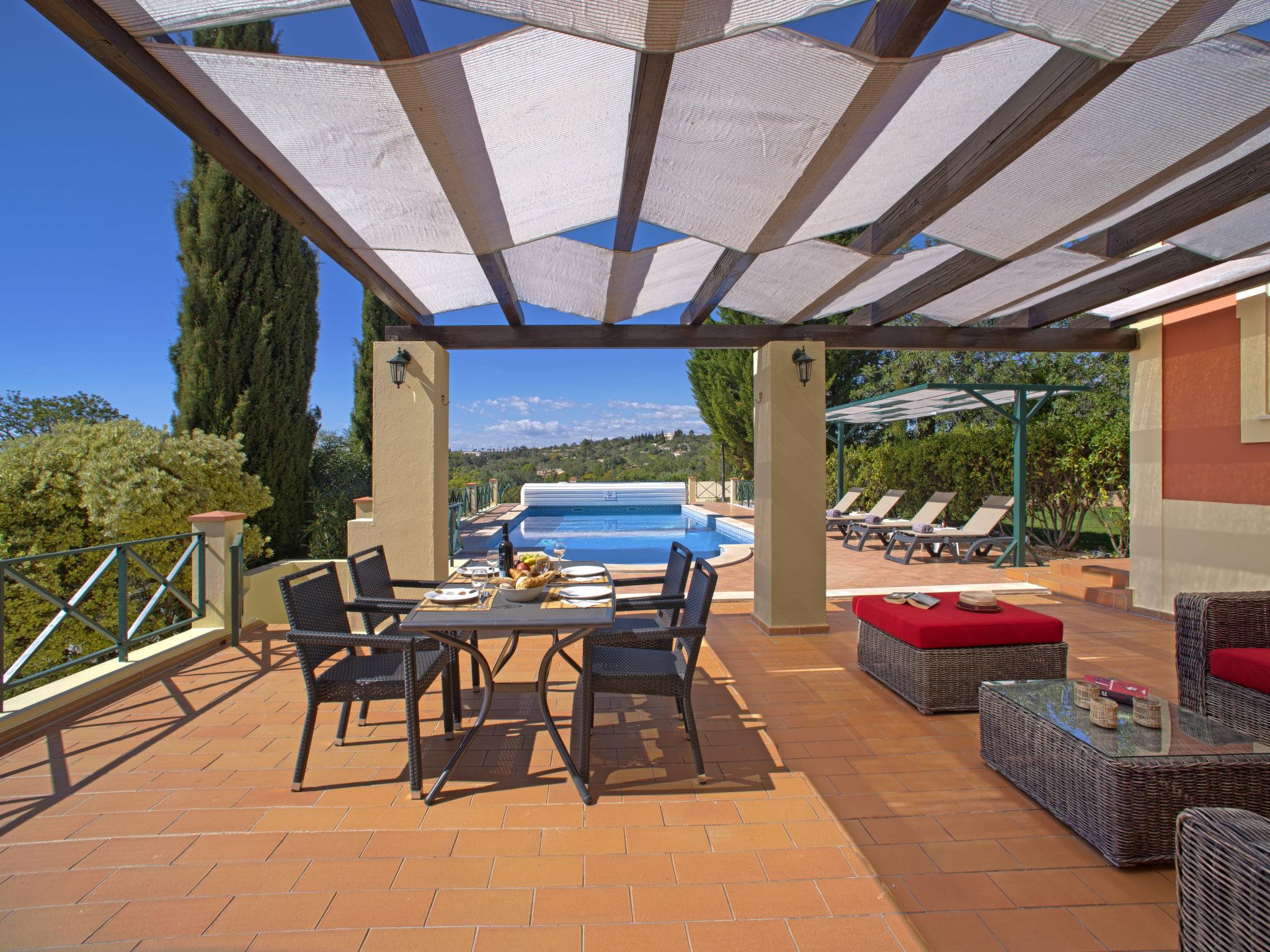 House "Montinho", built in 2007, surrounded by meadows and fields. 2.5 km from the centre of Loulé, on a slope, residential area (villas), 12 km from the sea, in the countryside. Private: property 2'500 m2 (fenced) with lawn and trees, swimming pool (10 x 5 m, seasonal availability: 01.Jan. - 31.Dec.) with salt-electrolysis pool-cleaning system. Outdoor shower, table tennis, pergola. In the house: burglar alarm system. Parking on the premises, single garage. Shop 2.2 km, restaurant 650 m, bus stop "Betunes" 650 m, railway station "Loulé" 8.9 km, sandy beach 12 km, indoor swimming pool 3.4 km. Marina 17.5 km, golf course (27 hole) 14 km, tennis 2.5 km. Nearby attractions: Aquapark 11 km, Zoomarine 29 km.